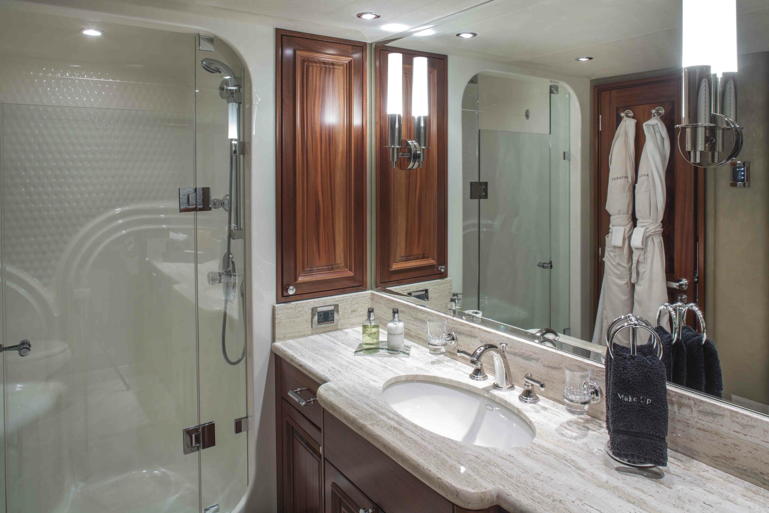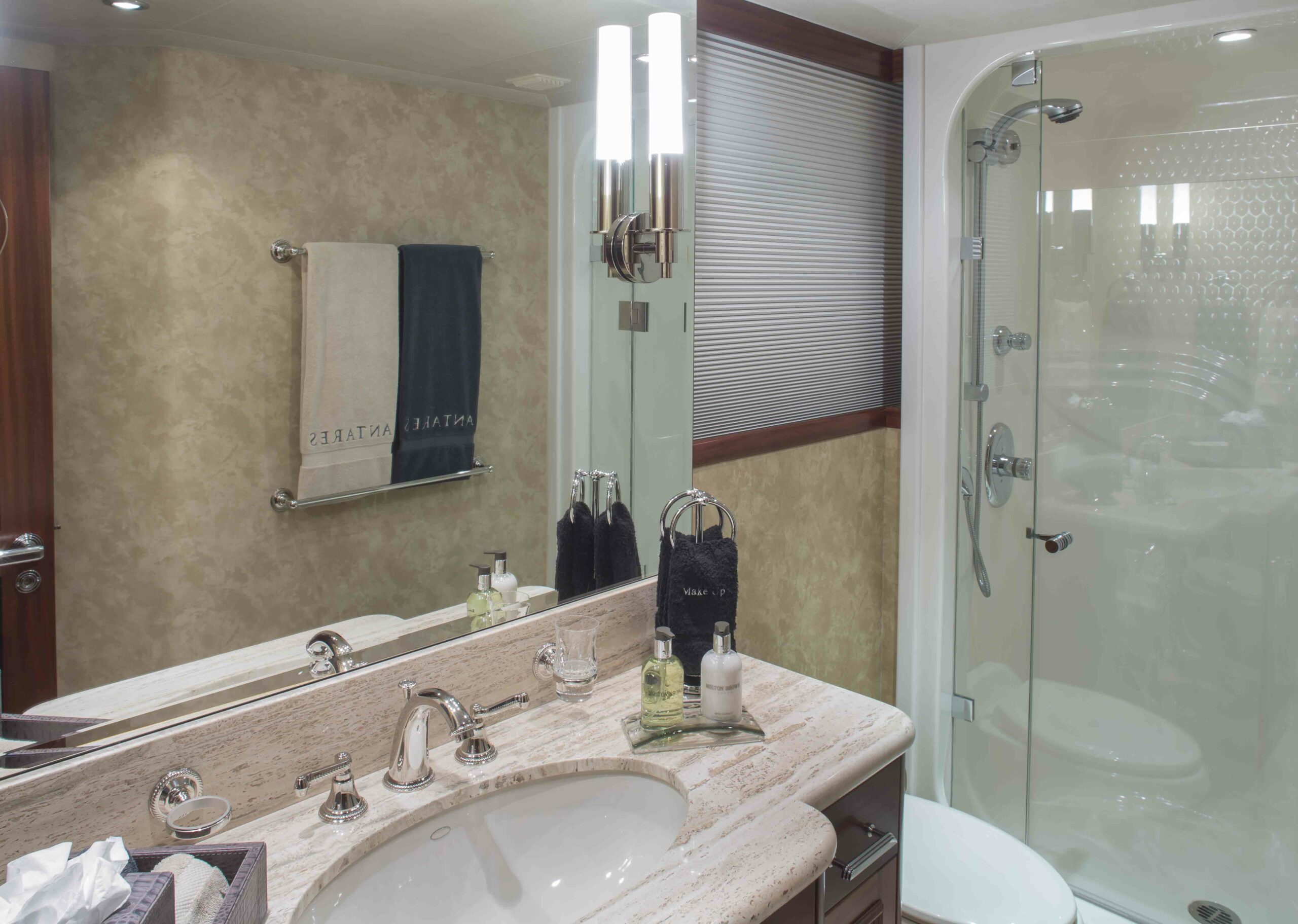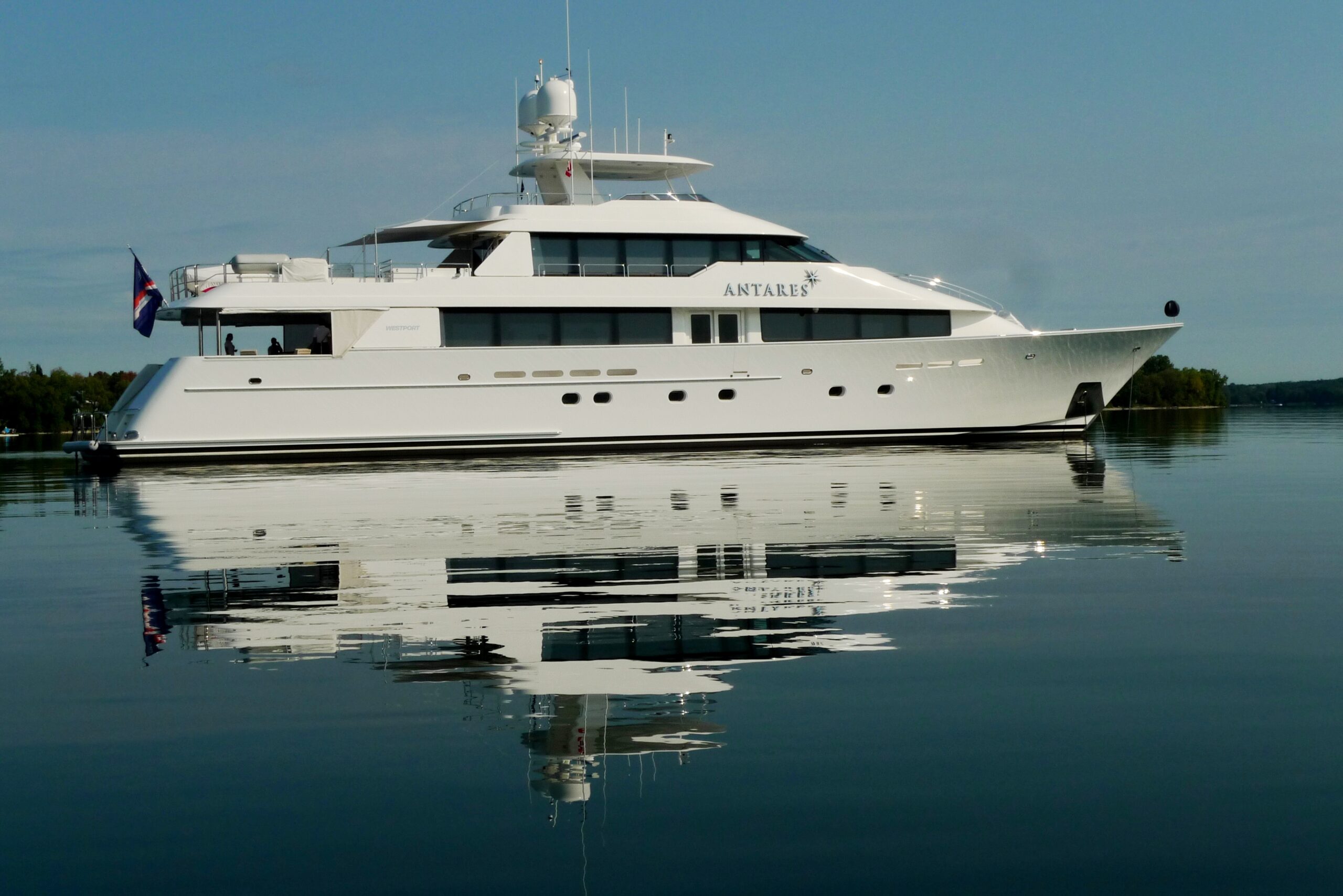 Worth Avenue Yachts is proud to offer the 2008 130’ Westport, ANTARES to the sales market. She is available for an asking price of $12,450,000. An extremely knowledgeable yachtsman and exceptional project team built ANTARES, hull number 25 for the 130’ Westport line. The warm and light décor is complimented by a beautiful interior raised panel Mahogany wood package throughout. She features numerous upgrades including zero-speed stabilizers, larger fins for better stability and state-of-the-art touch screen control panels. This tri-deck features the much sought after hardtop and custom storage throughout the vessel. Another special feature is the custom made wine cellar under the master berth. The Crestron entertainment system has iPad minis for a modern and streamlined operating system. It also has been synced with the lights, electric blinds throughout the vessel and the CCTV system. ANATARES has never been chartered and is meticulously maintained by seven full time crew, some of which have tenured the lifetime of the yacht ANTARES has had the same owner since the build that has preserved her to the highest standard.
