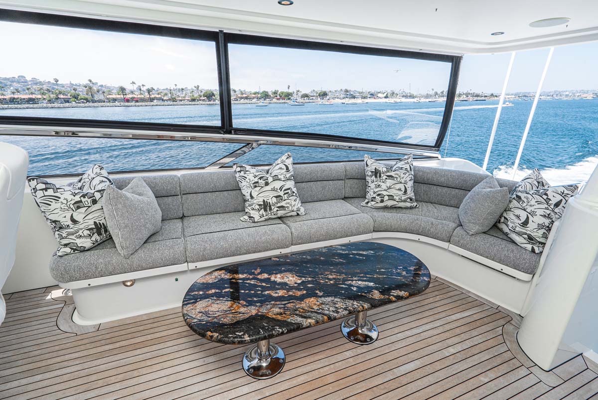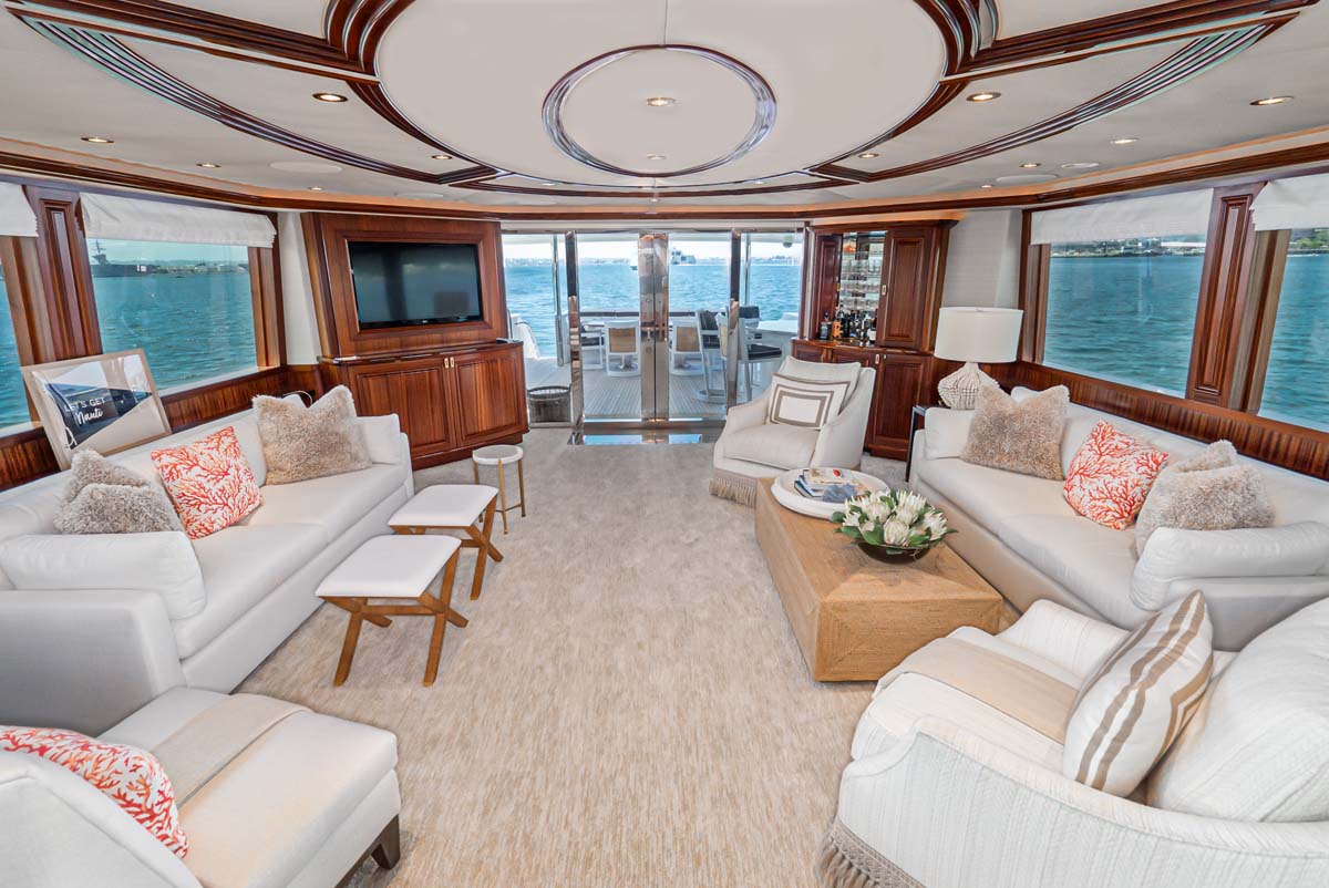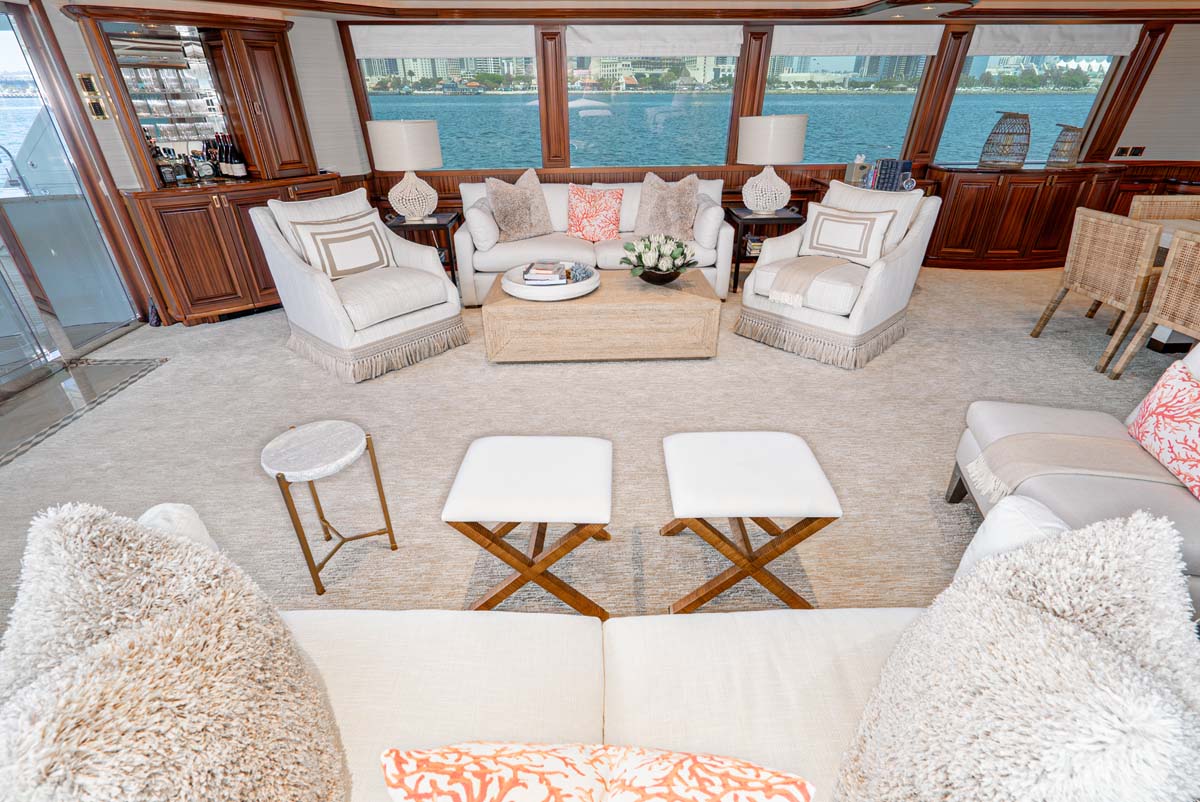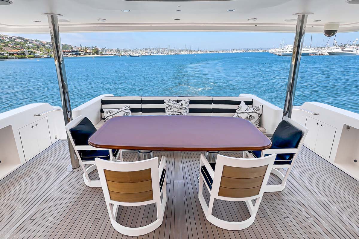 Outdoors, BETH ANN truly shines. The spacious flybridge is a guest favorite, featuring a custom hardtop, Jacuzzi, wet bar, and large dining area for al fresco meals. The aft deck is perfect for casual lounging or sunset cocktails.