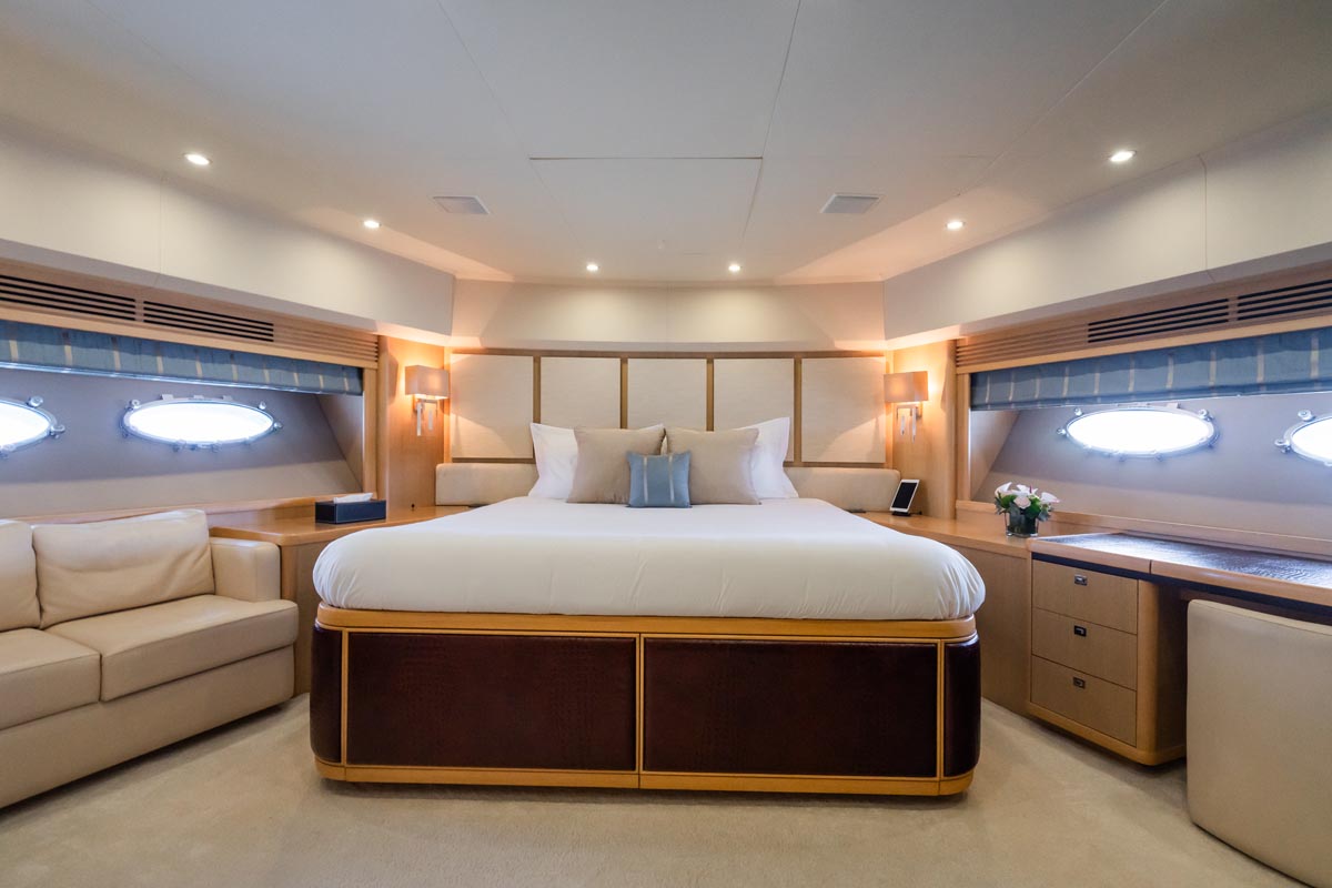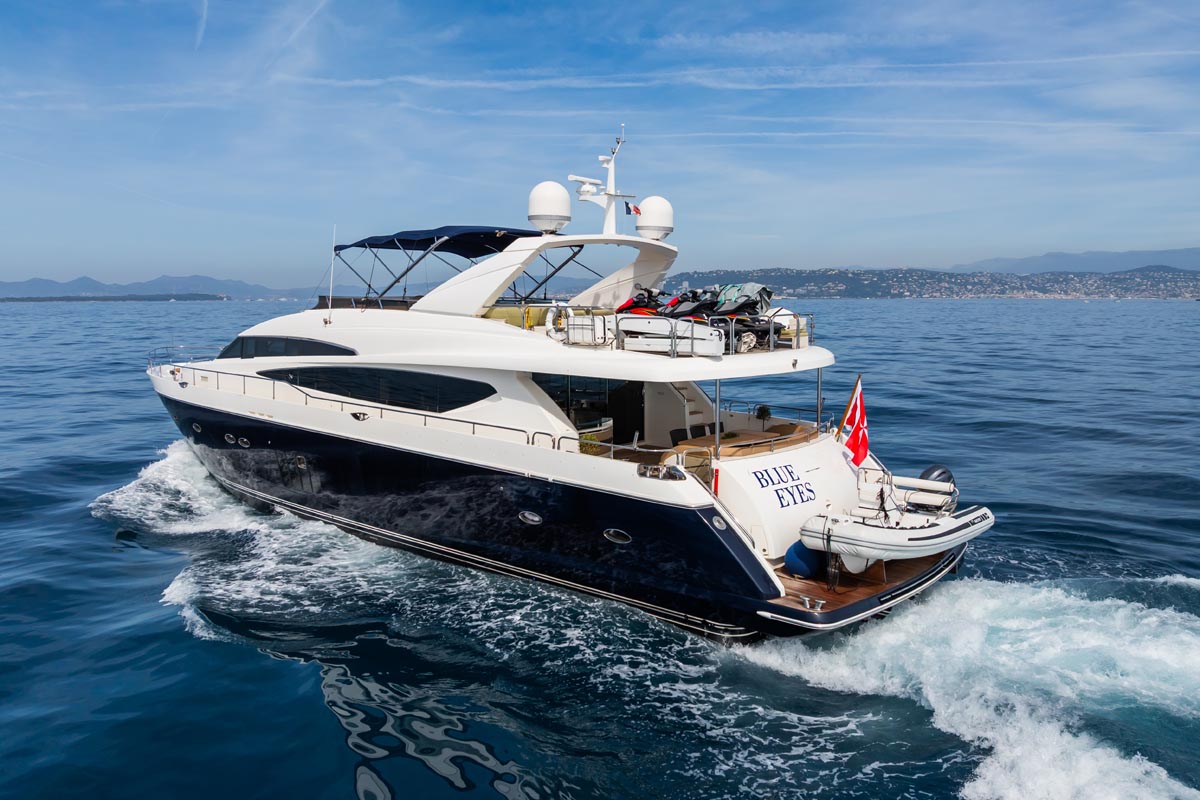 BLUE EYES is a Princess 95 motor yacht, launched in 2009 and fully refitted between 2024 and 2025. Now available for charter for the first time, she offers a luxurious experience for up to 8 guests in 4 well-appointed staterooms. A dedicated crew of 5 ensures top-tier service and a relaxed onboard atmosphere.