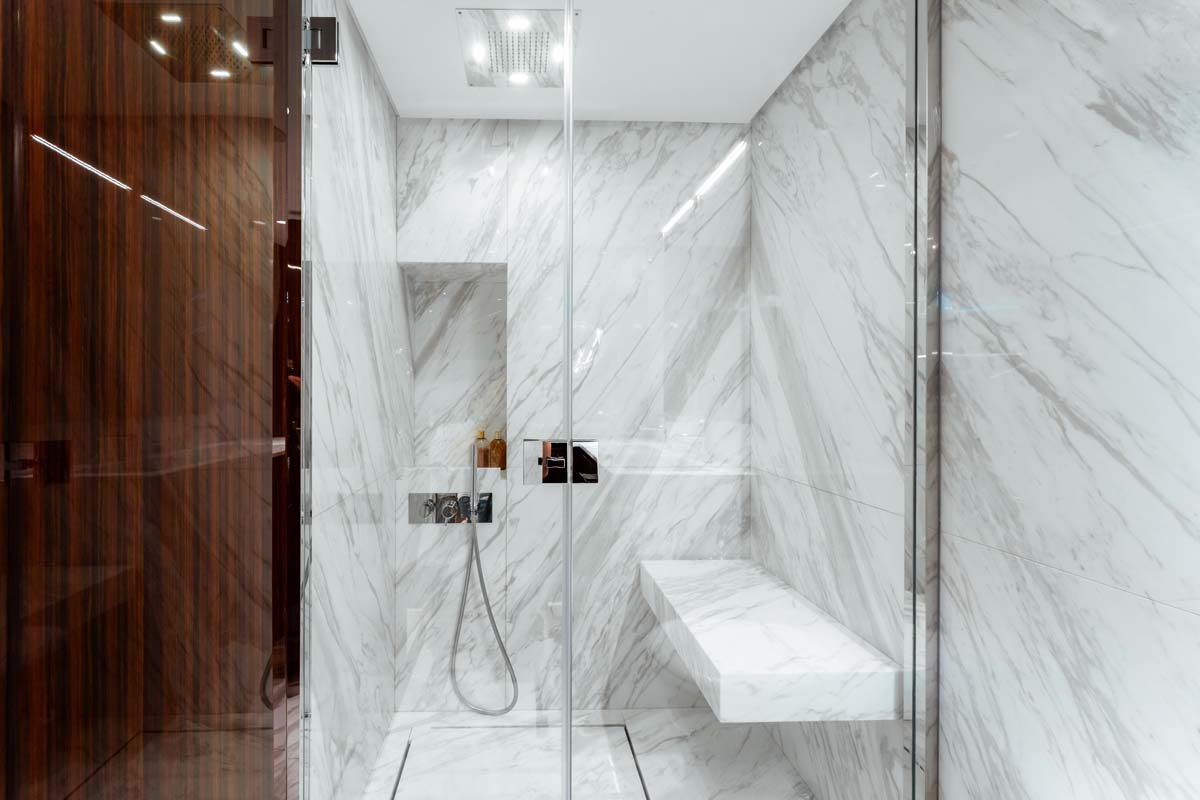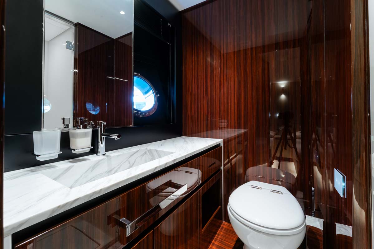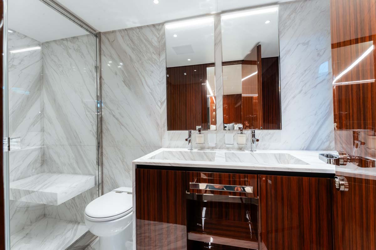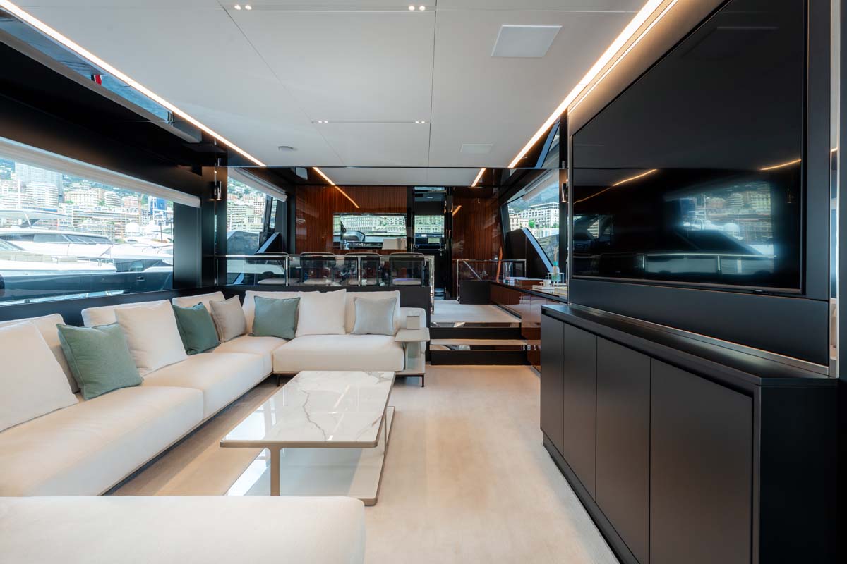- Expansive 40m² flybridge with sunbathing, dining, bar & lounge areas