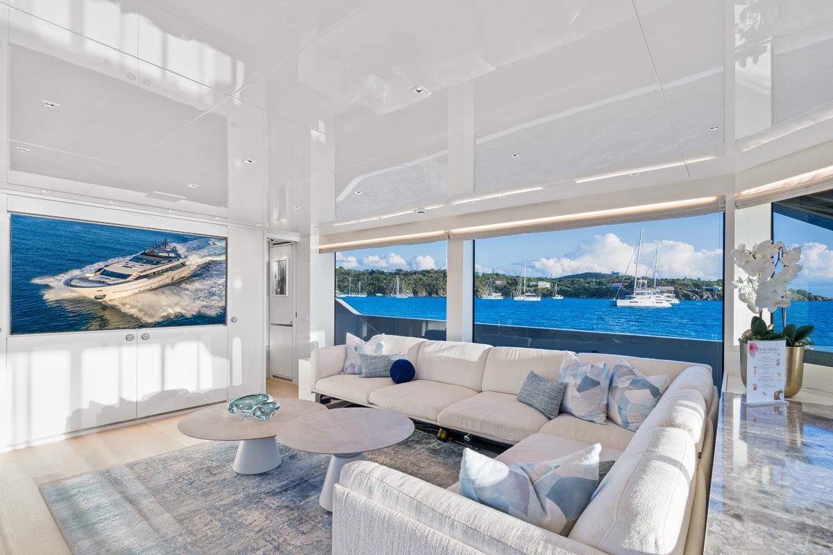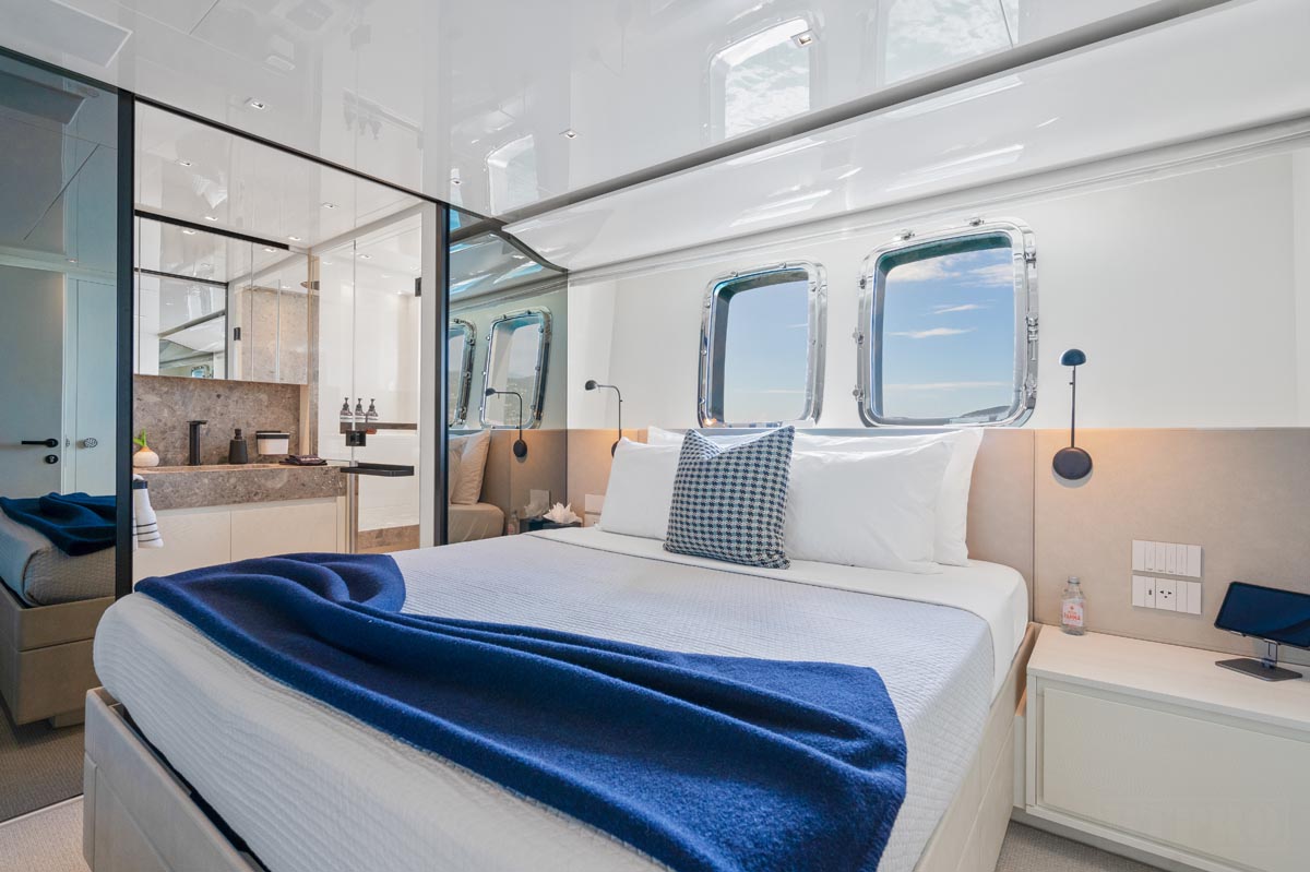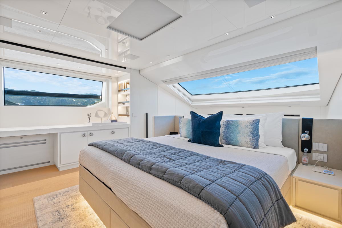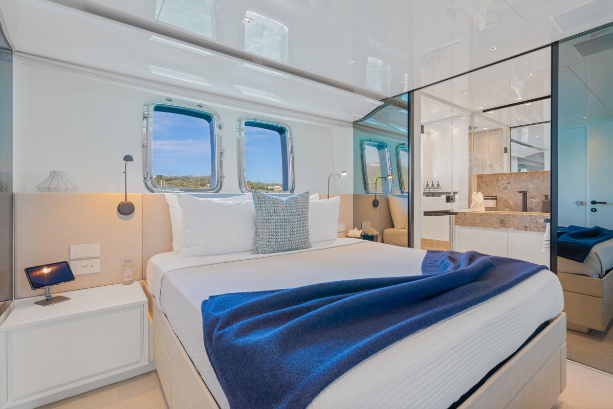 SWEET VIRGINIA is a stunning SL96A, delivered in late 2022, boasting an innovative asymmetrical design that adds 15% more volume to the main deck. Floor-to-ceiling windows flood the salon with natural light, creating a seamless connection to the surrounding seascape. Accommodations include an on-deck Primary Bedroom with a king-size bed and ensuite shower, two VIP cabins with queen beds and ensuites, and a versatile convertible cabin that transforms from two twins to a queen. Designed for both relaxation and adventure, SWEET VIRGINIA features stabilizers at anchor and underway, a great tow tender, and an impressive selection of water toys. With a highly professional crew dedicated to delivering exceptional service, she offers the perfect balance of luxury, performance, and fun on the water.