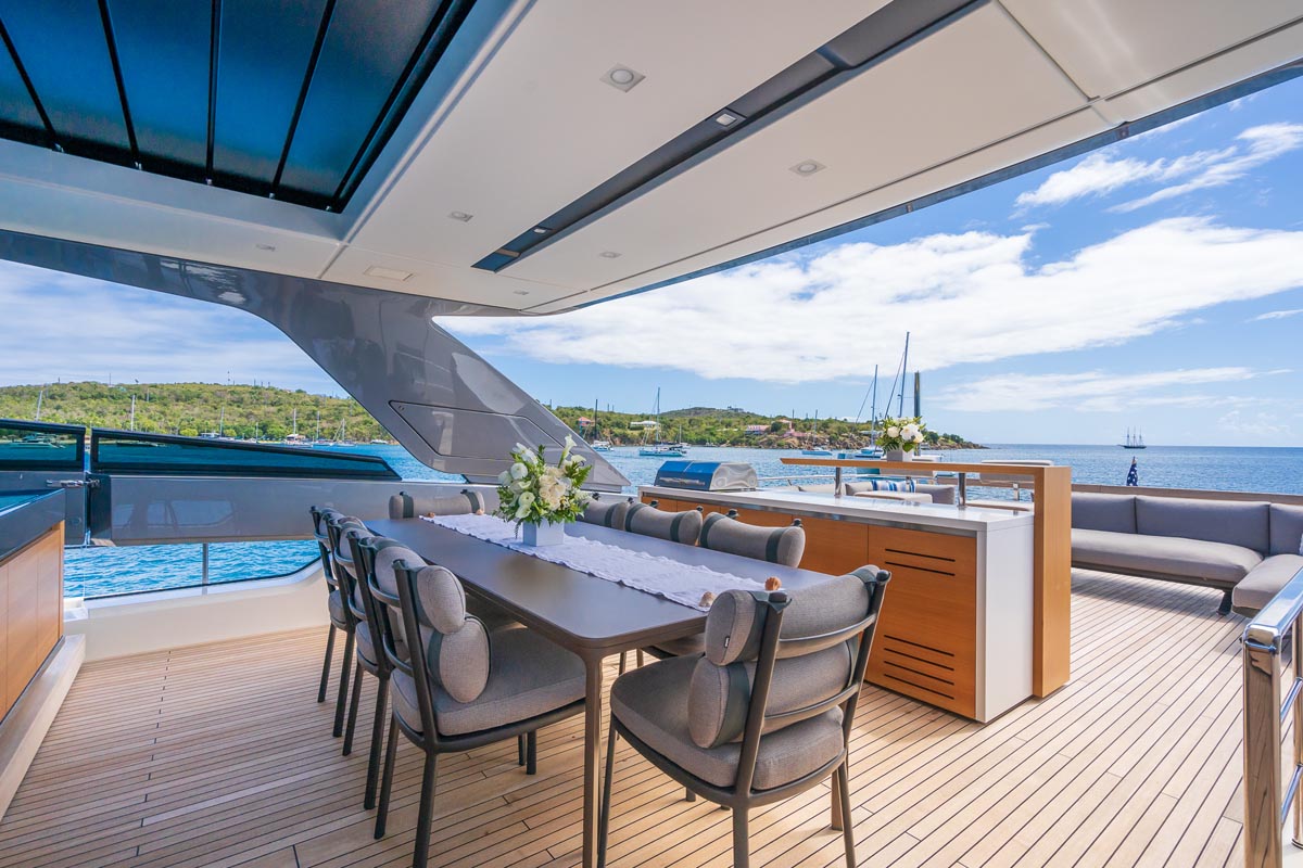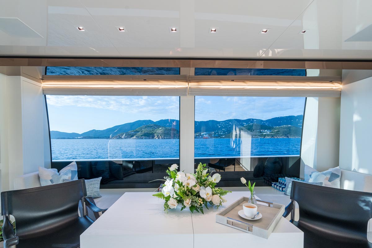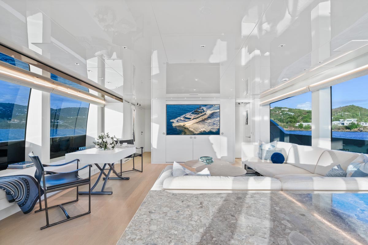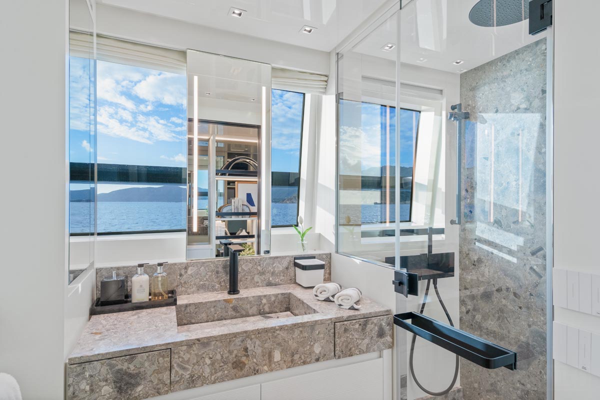 SWEET VIRGINIA is a stunning SL96A, delivered in late 2022, boasting an innovative asymmetrical design that adds 15% more volume to the main deck. Floor-to-ceiling windows flood the salon with natural light, creating a seamless connection to the surrounding seascape. Accommodations include an on-deck Primary Bedroom with a king-size bed and ensuite shower, two VIP cabins with queen beds and ensuites, and a versatile convertible cabin that transforms from two twins to a queen. Designed for both relaxation and adventure, SWEET VIRGINIA features stabilizers at anchor and underway, a great tow tender, and an impressive selection of water toys. With a highly professional crew dedicated to delivering exceptional service, she offers the perfect balance of luxury, performance, and fun on the water.