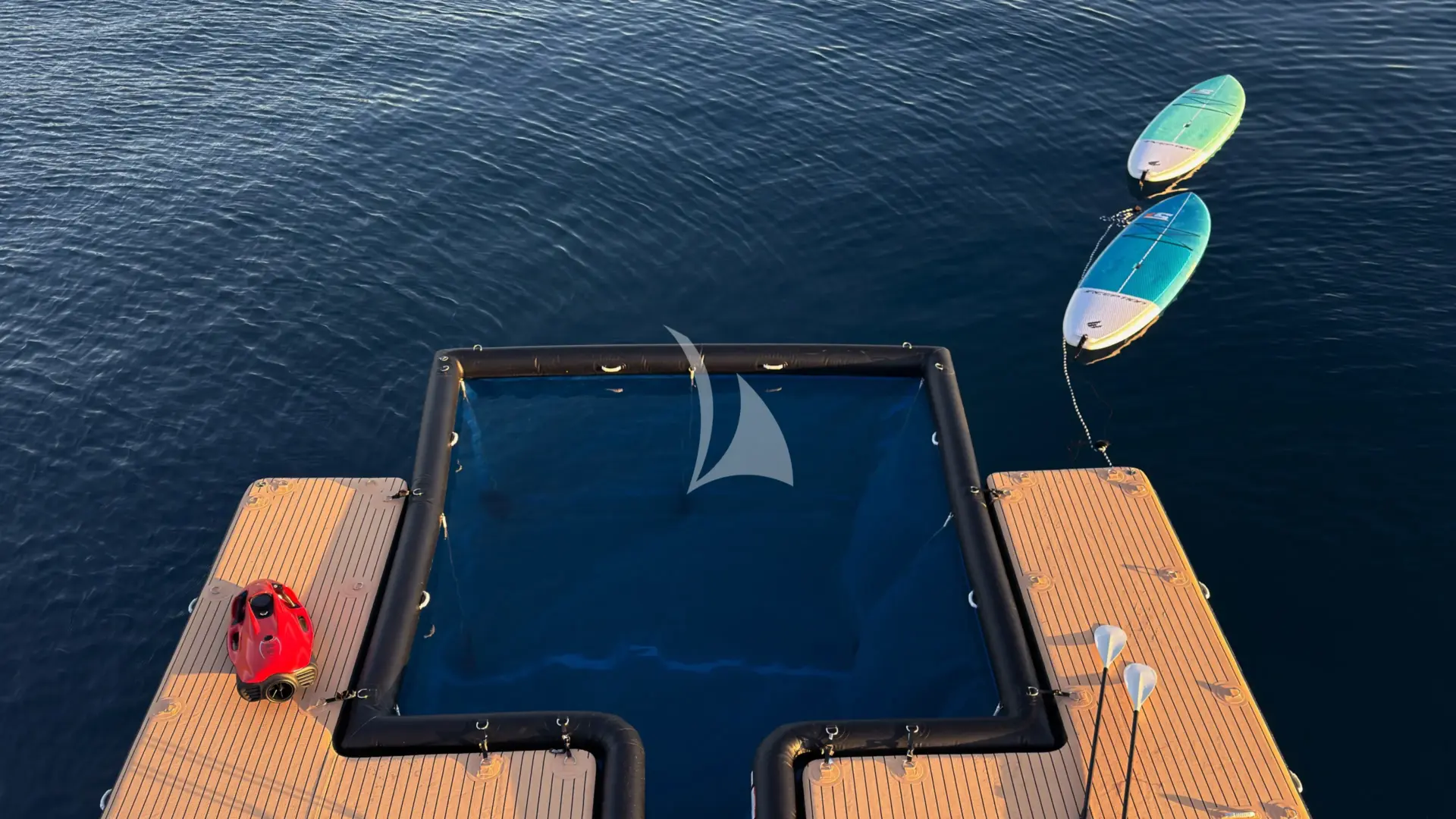 Her fold-down balconies in the saloon and master suite bring the ocean into your living space, while her full-beam aft deck beach club delivers a barefoot-to-water experience unlike any other. The sun deck, complete with bar, daybeds, BBQ, and awning, is made for afternoons that melt into evenings. With five beautifully appointed ensuite cabins she can accommodate up to ten guests in complete comfort. And when it’s time for adventure, a full toy line-up awaits, from Seabobs and paddleboards to snorkelling gear and a secure, child-friendly netted pool.
