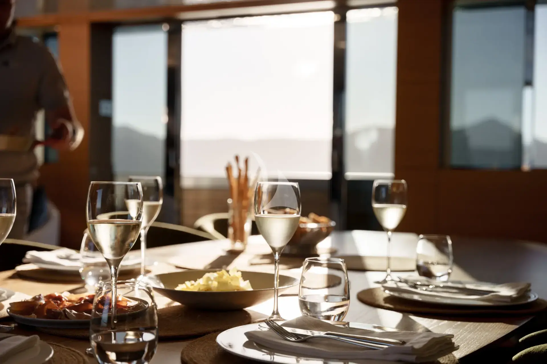From the sky deck, the world seems to open around you. Here, daybeds invite lazy afternoons, the wet bar keeps drinks within reach, and the BBQ tempts with the scent of fresh seafood. Swivel lounge pods can be turned toward the sun, the view, or the conversation — the perfect perch for everything from sunrise yoga to stargazing. Inside, the Sky Lounge is an all-weather haven with sweeping views and a casual, welcoming energy. Bathed in natural light from expansive glass skylights, the Sky Lounge is an elevated retreat offering sweeping 360-degree views of sea and sky.