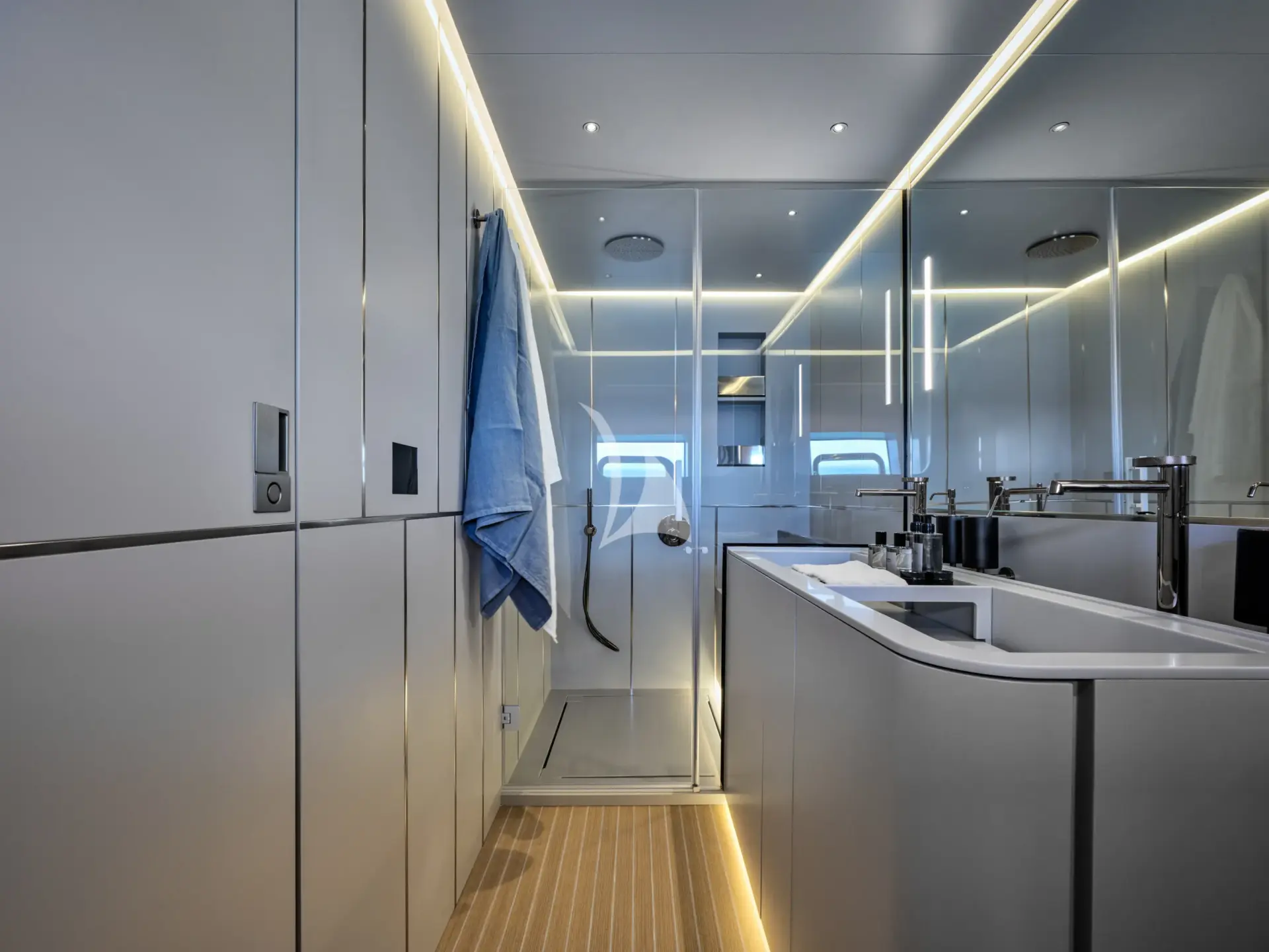 At the waterline, the swim platform invites you irresistibly close to the sea, with tender and toy access just steps away. Stowage for a 5m tender and personal watercraft means adventure is always within reach.