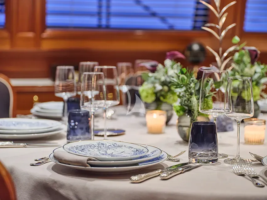 ALMYRA II’s plastic-free policy and use of eco-friendly products reflect a modern charter ethos built on sustainability without compromise. Her professional crew of 10, led by a highly experienced Captain, are passionate about sailing and attuned to the expectations of discerning guests. As one of just 61 Perini Navi yachts ever built, she offers a rare opportunity to charter a vessel that is both iconic and uniquely engineered for today’s enthusiasts.