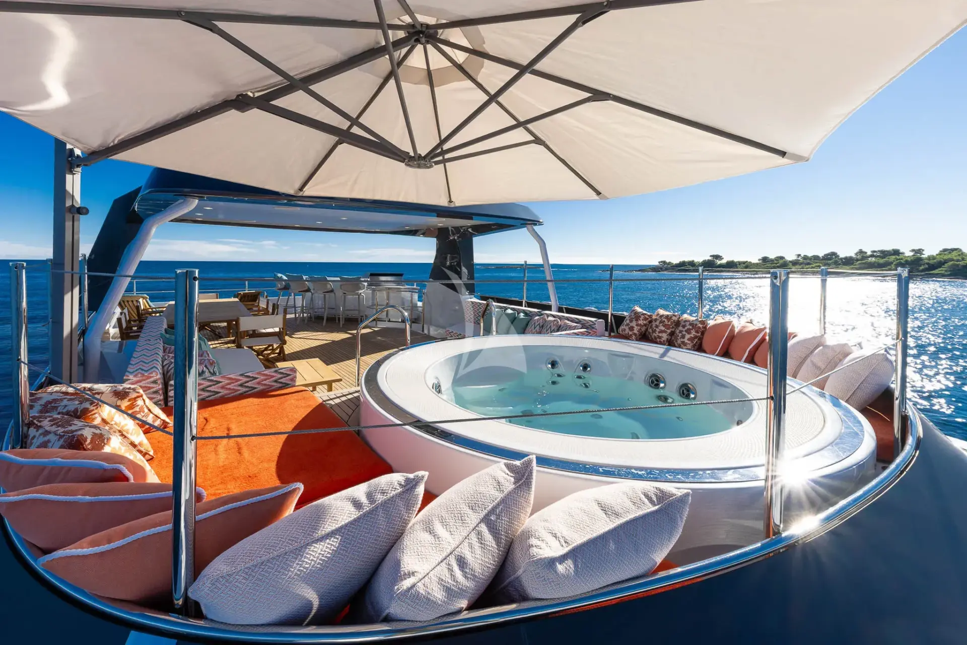 Completely reimagined in her 2025 refit by Luc Deflorenne, TAHI celebrates modern South American artistry, combining vibrant colour, handcrafted textures and Brazilian design heritage.