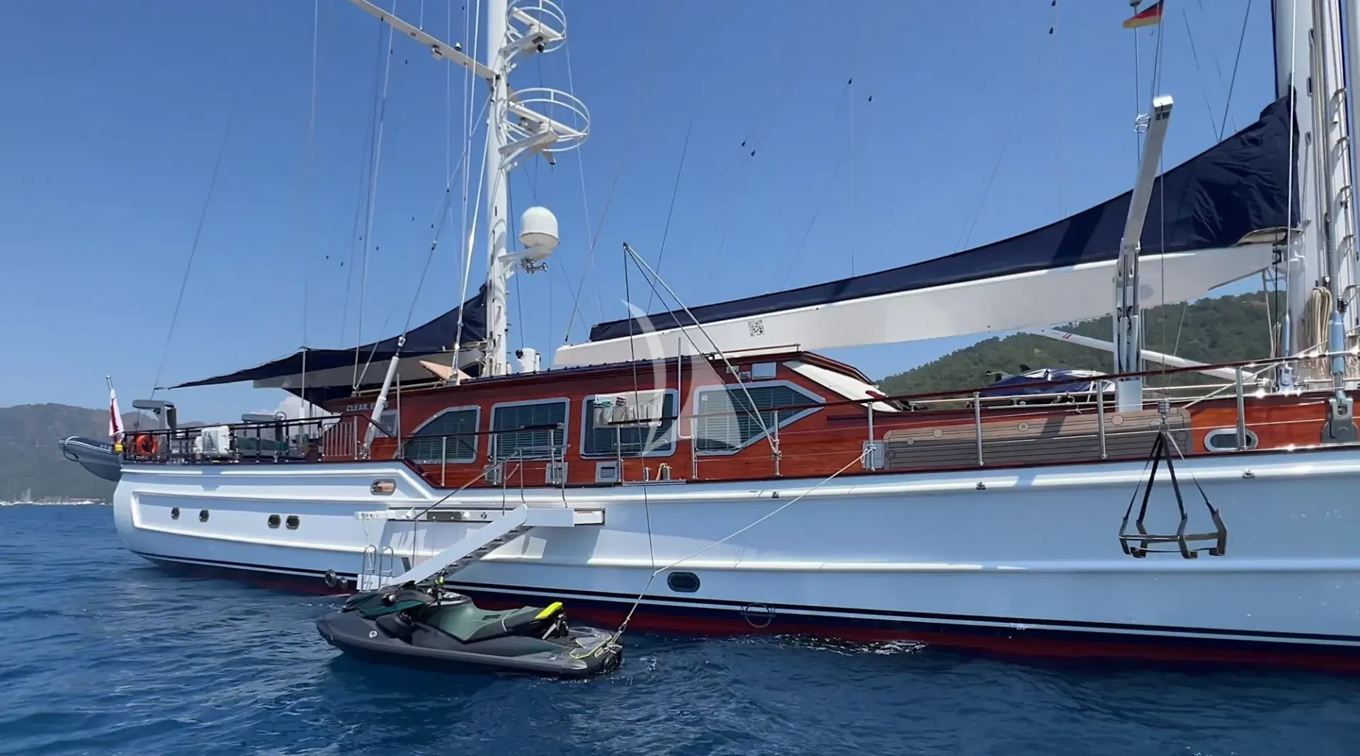 Tender 6.4 m Northstar with 250 hp Mercury (at the aft end of the yacht, on a davit)