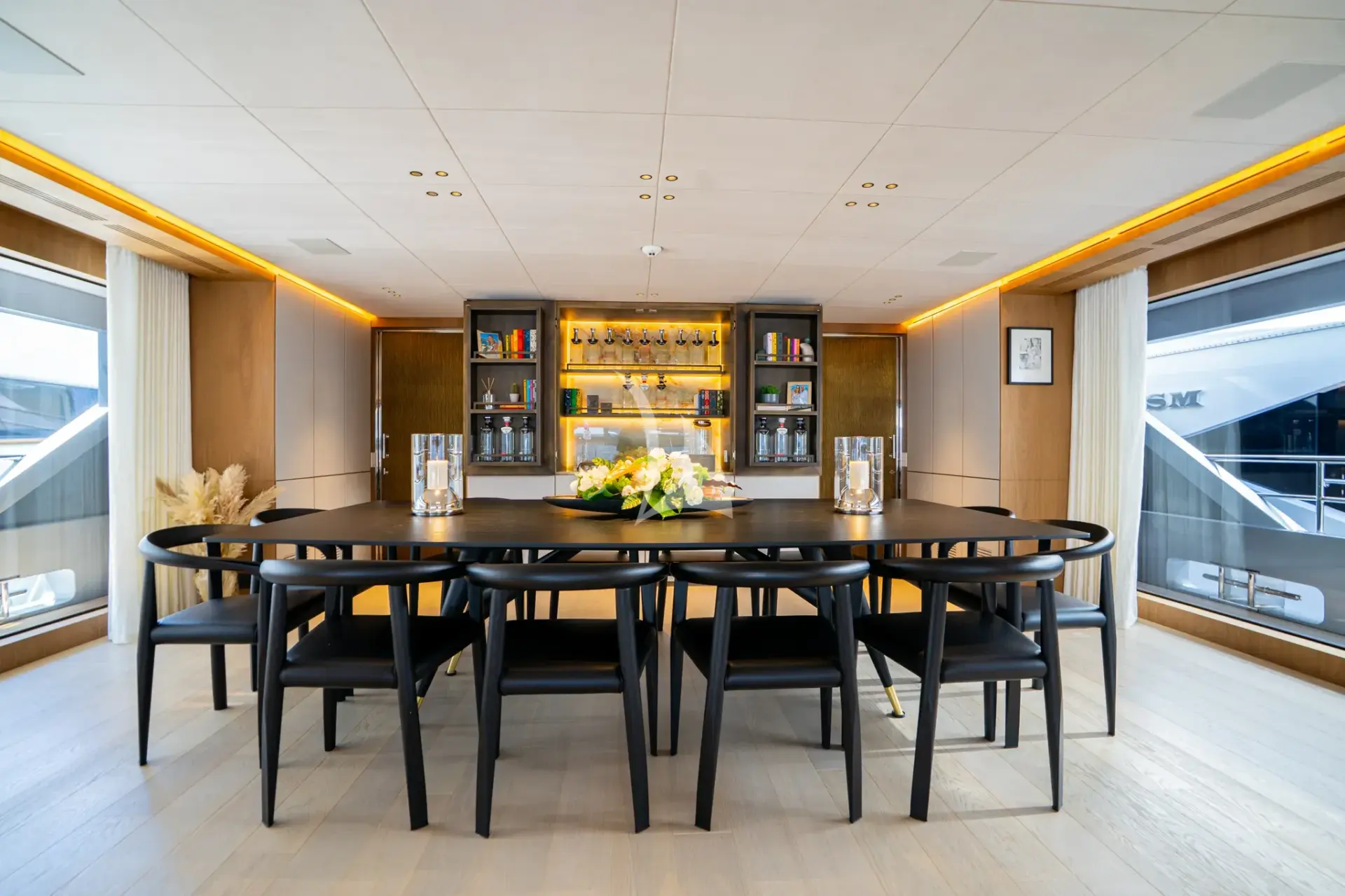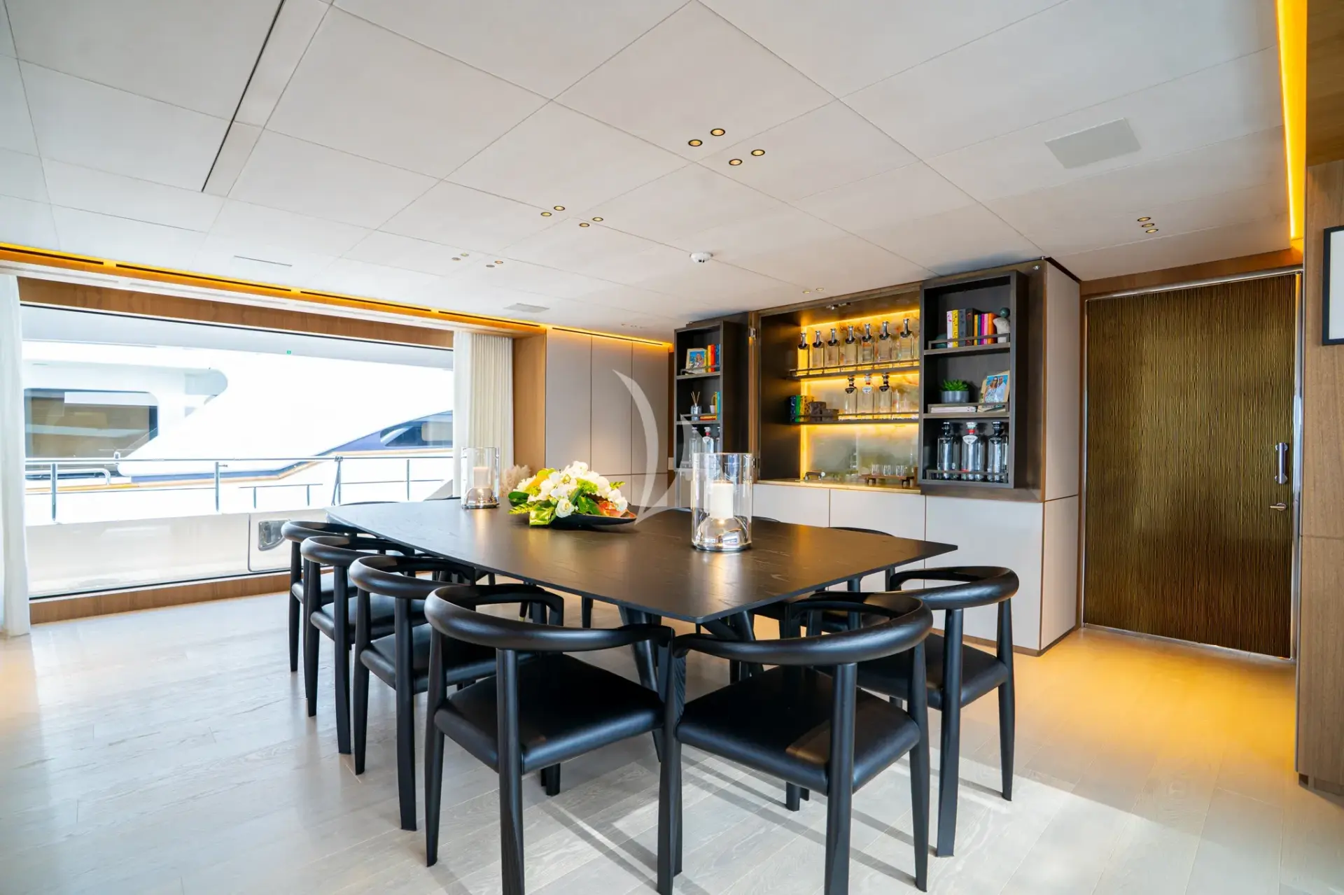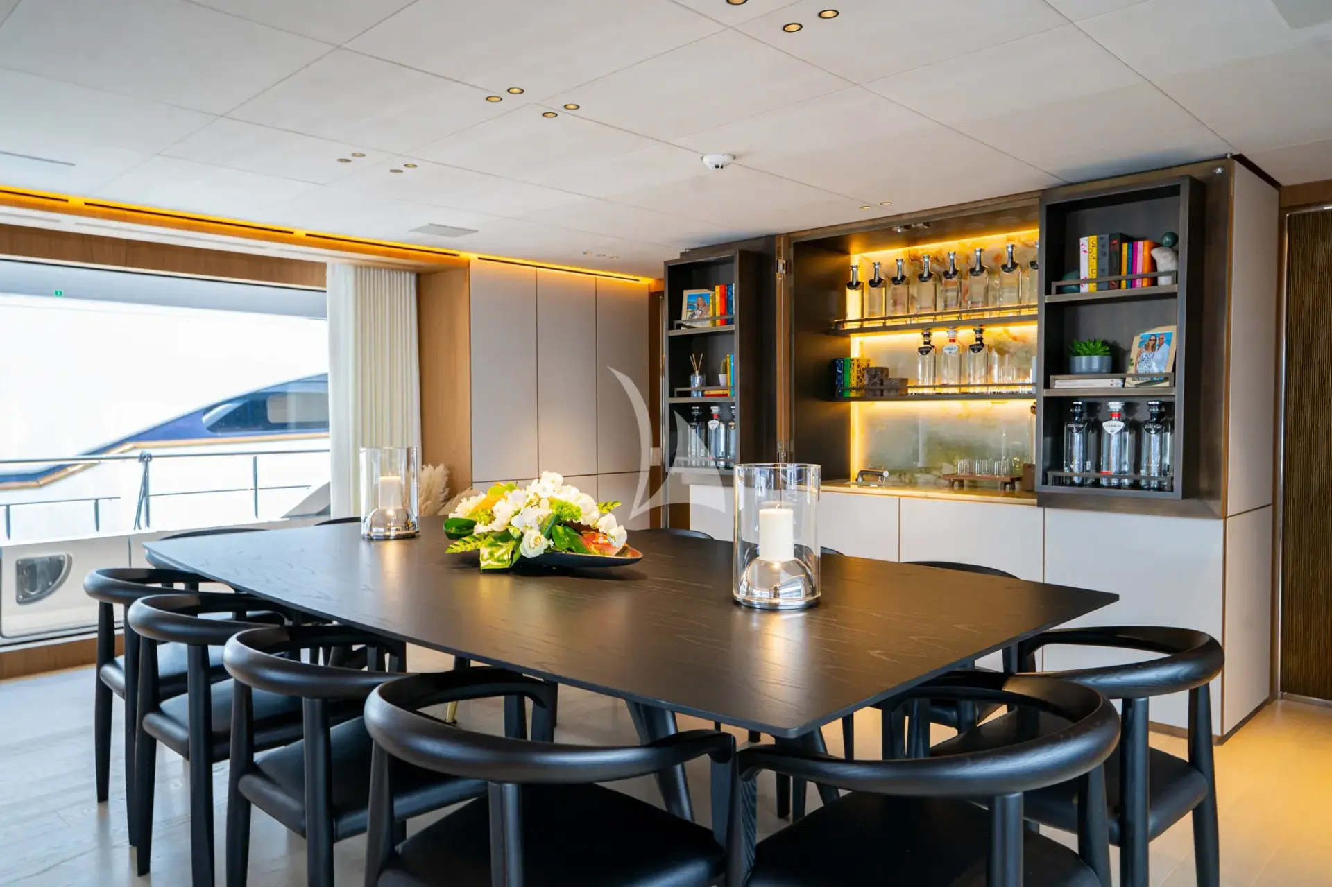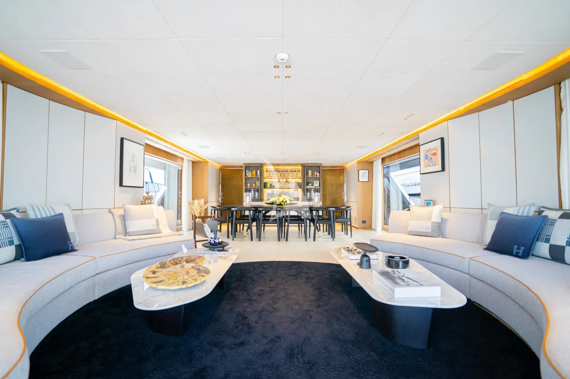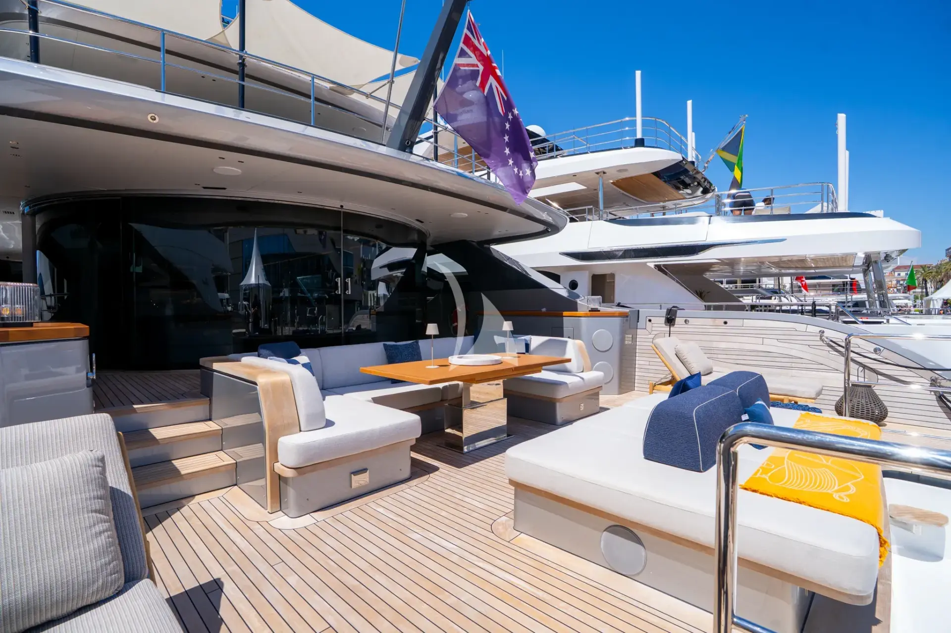 - Chase/towed tender: Fjord 38 ft with two Mercury Verado 300HP outboards