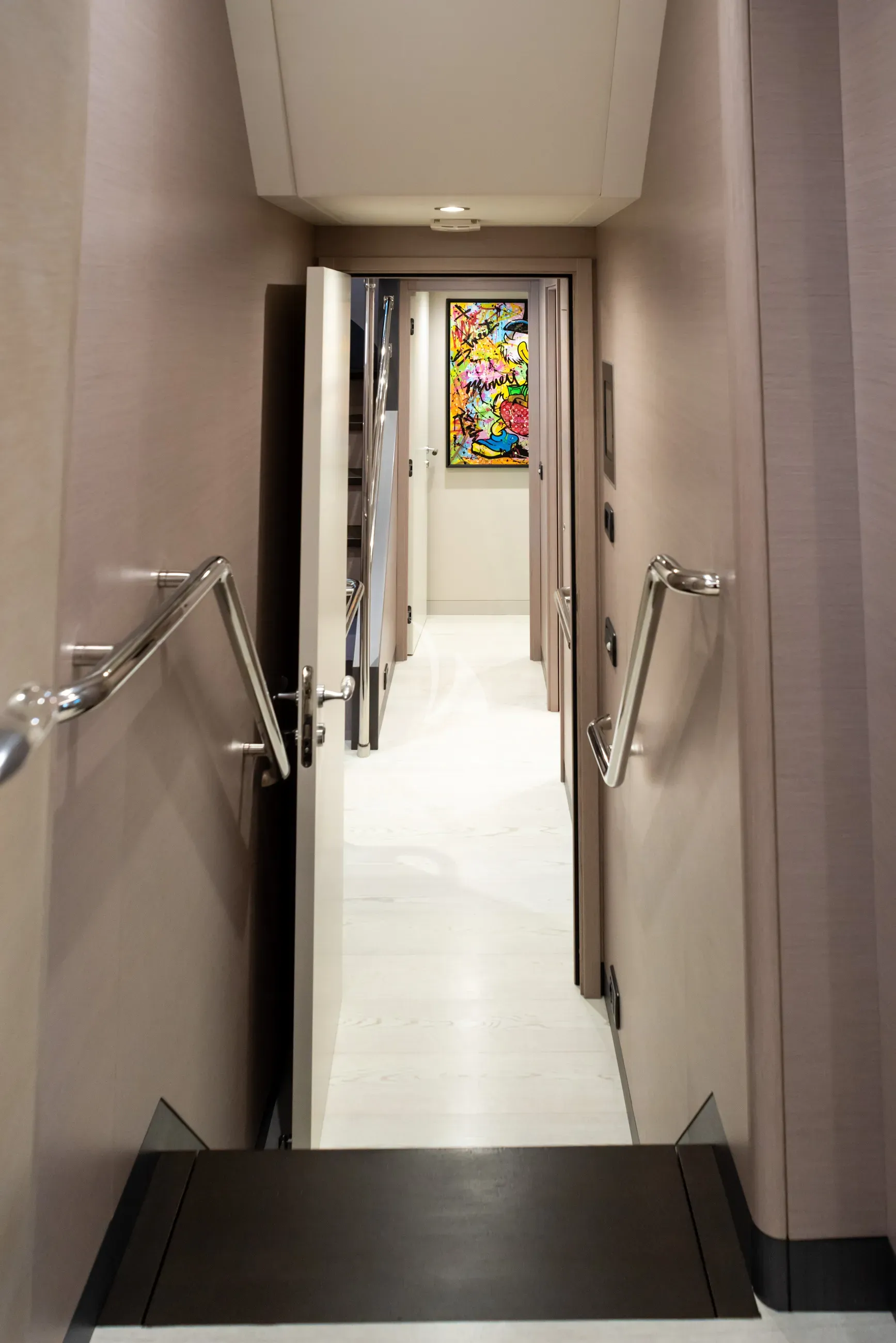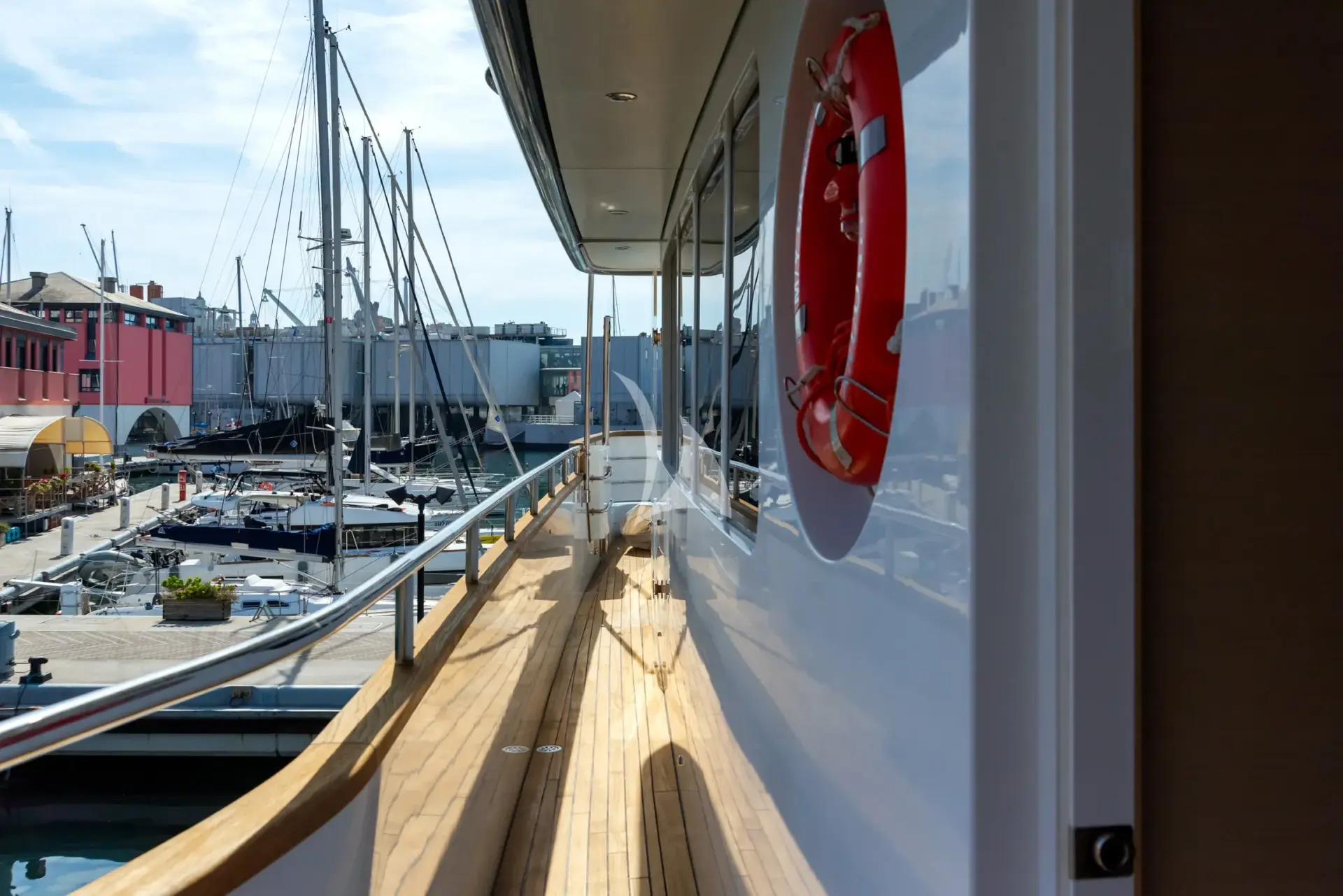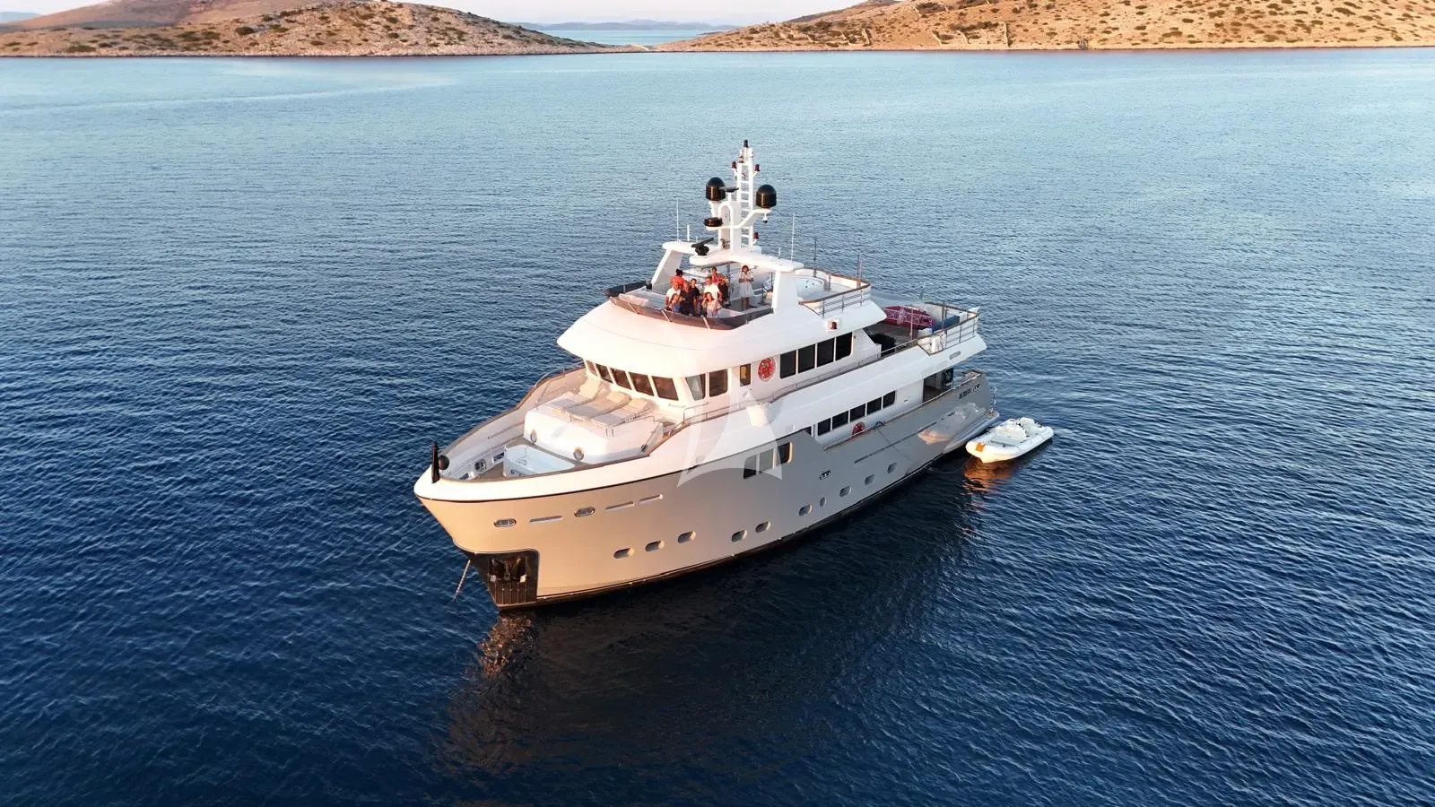 With a steel hull, long-range autonomy, and discreet elegance, she offers a different kind of luxury — one that favours space, silence, and slow cruising.