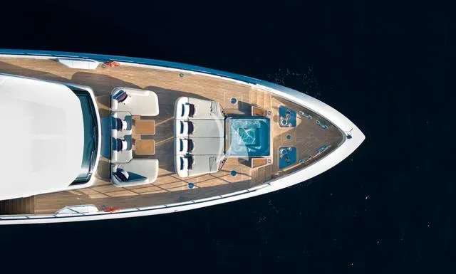 The Grande 36M introduces Azimut’s first semi-walkaround upper deck, extending almost the full length of the yacht. This flush, open promenade runs from stern to bow, offering an extraordinary sense of freedom and panoramic views. The sky lounge opens completely into the aft terrace thanks to fully retractable side windows, creating one continuous, barrier-free space. All the way forward, a spectacular glass whirlpool tub and generous sunpads form an exclusive private retreat, designed for pure relaxation in total comfort.