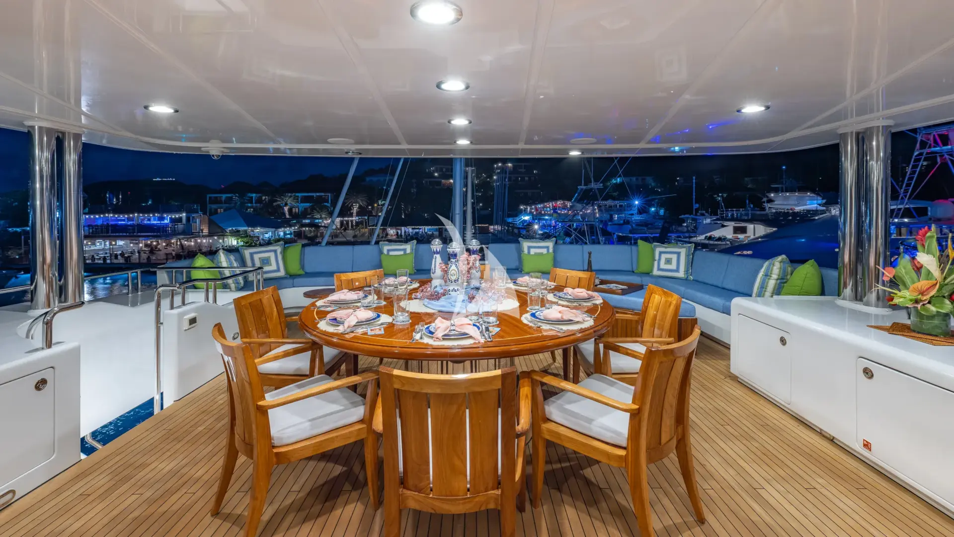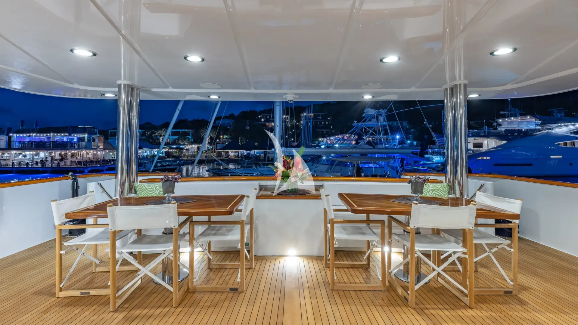 KING OF FUN is a 130ft (40m) motor yacht built by Northern Marine in 2005 and refitted in 2022, with design by Setzer Design Group. She accommodates up to 10 guests in 5 cabins comprising 4 double and 1 twin, with a professional crew of 8 ensuring an exceptional charter experience. Available for charter in North America, The Caribbean and the Bahamas. Notable features include top notch, charter savvy crew, $1M special electronics and lighting refit in 2024, many interior softgood updates in 2024, loaded with toys to live up to the namesake!, and interior volume feels much larger than a 130' yacht.
