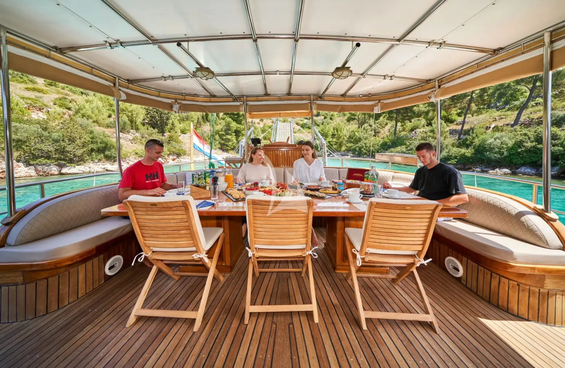 Tender 5m 115 HP, Kayak (3 seaters), SUP board x 3, Waterski for adults and children, Wakeboard, Sea scooter, Donut/Ringo, Banana, Snorkeling equipment, Amateur fishing equipment.