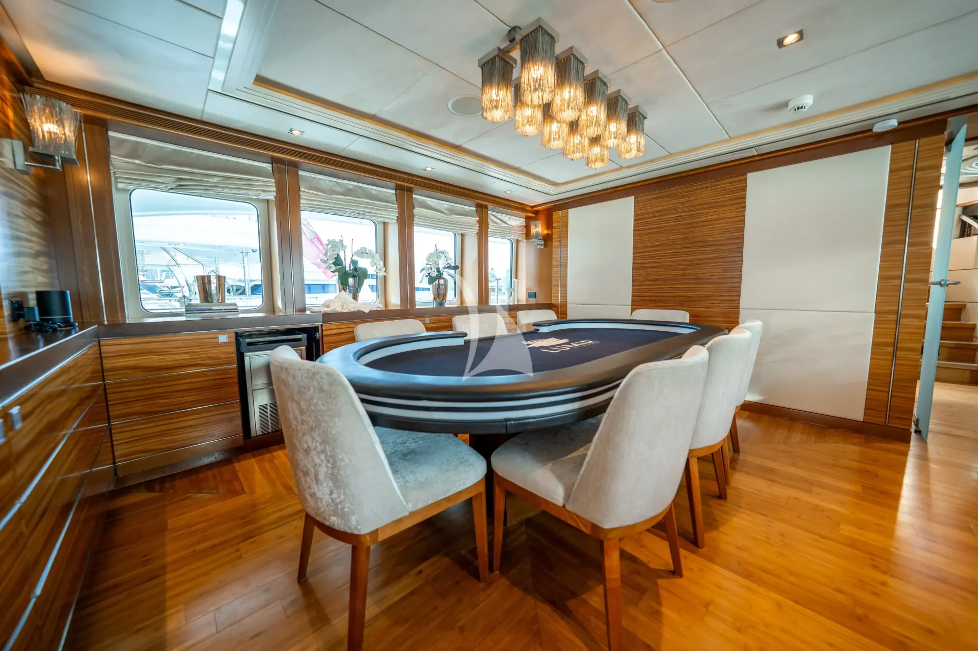 LUMIR welcomes up to 10 guests in 5 beautifully designed cabins, including a luxurious full-beam master suite, two VIP cabins, and a twin cabin with bunks. The elegant main salon offers an inviting space to relax, complete with plush seating, a formal dining area, and a full-sized poker table for a little friendly competition.