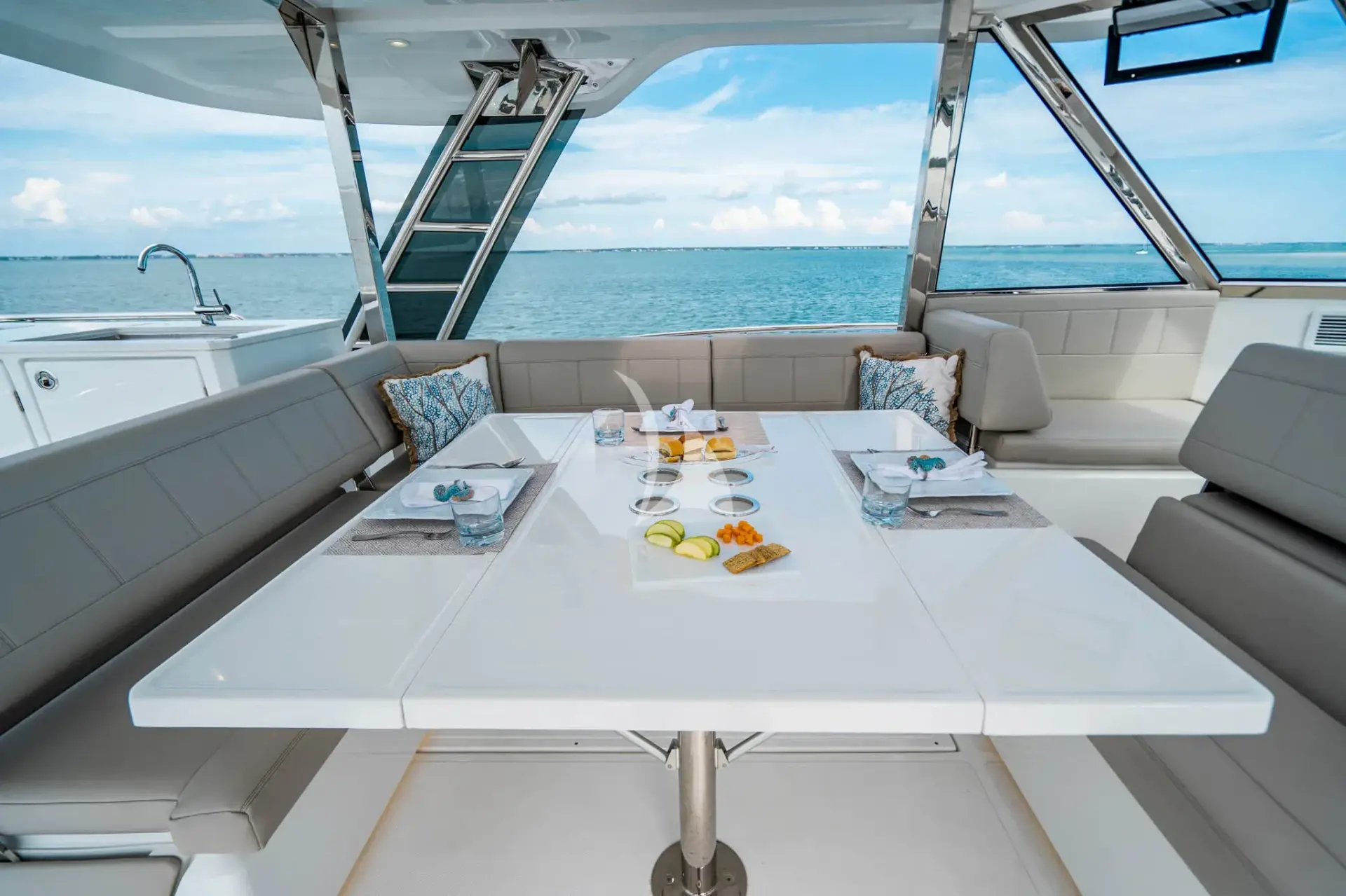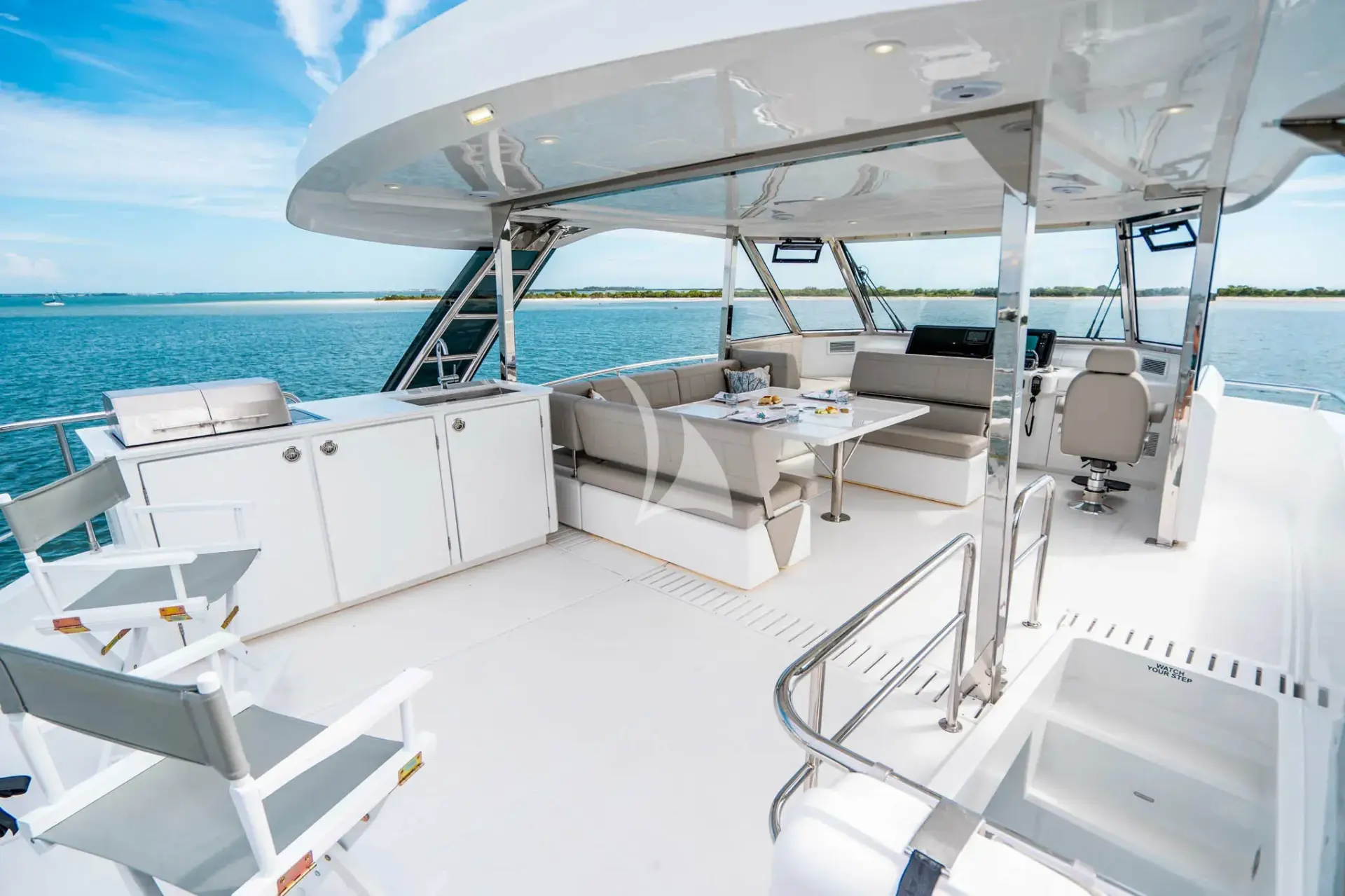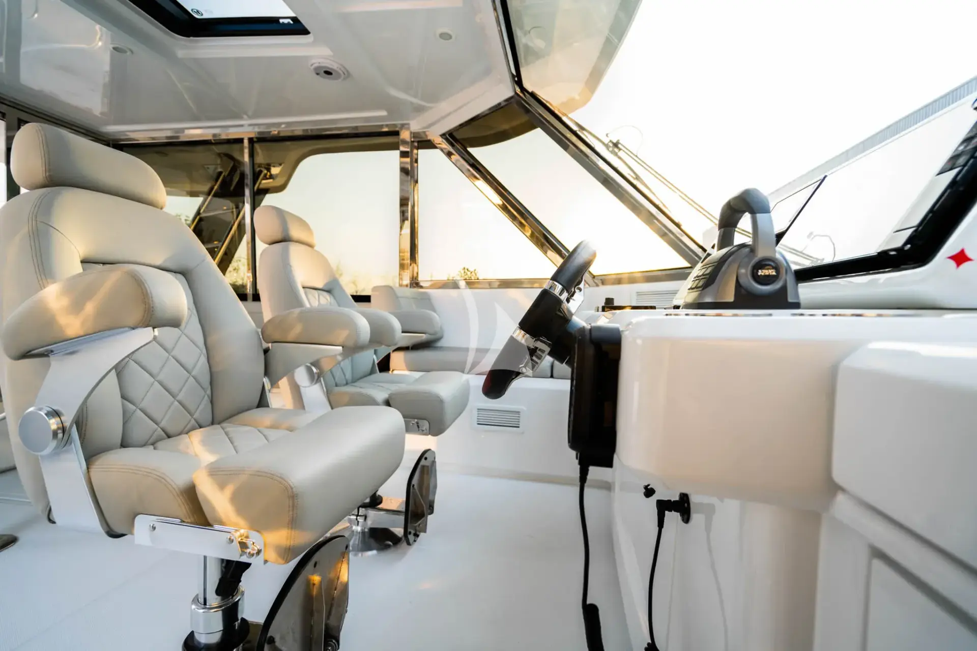 Across the interior, large windows and refined finishes create a calm, contemporary atmosphere that feels open and welcoming. Three double guest cabins are elegantly arranged to offer privacy while maintaining easy flow throughout the yacht. Out on deck, MARY'S GRACE is primed for maximising your outdoor adventure: whether it’s relaxing on the panoramic flybridge or finding your next fishing spot, sunbathing on the sporty foredeck or jumping into crystal clear waters, MARY’S GRACE has it all.
