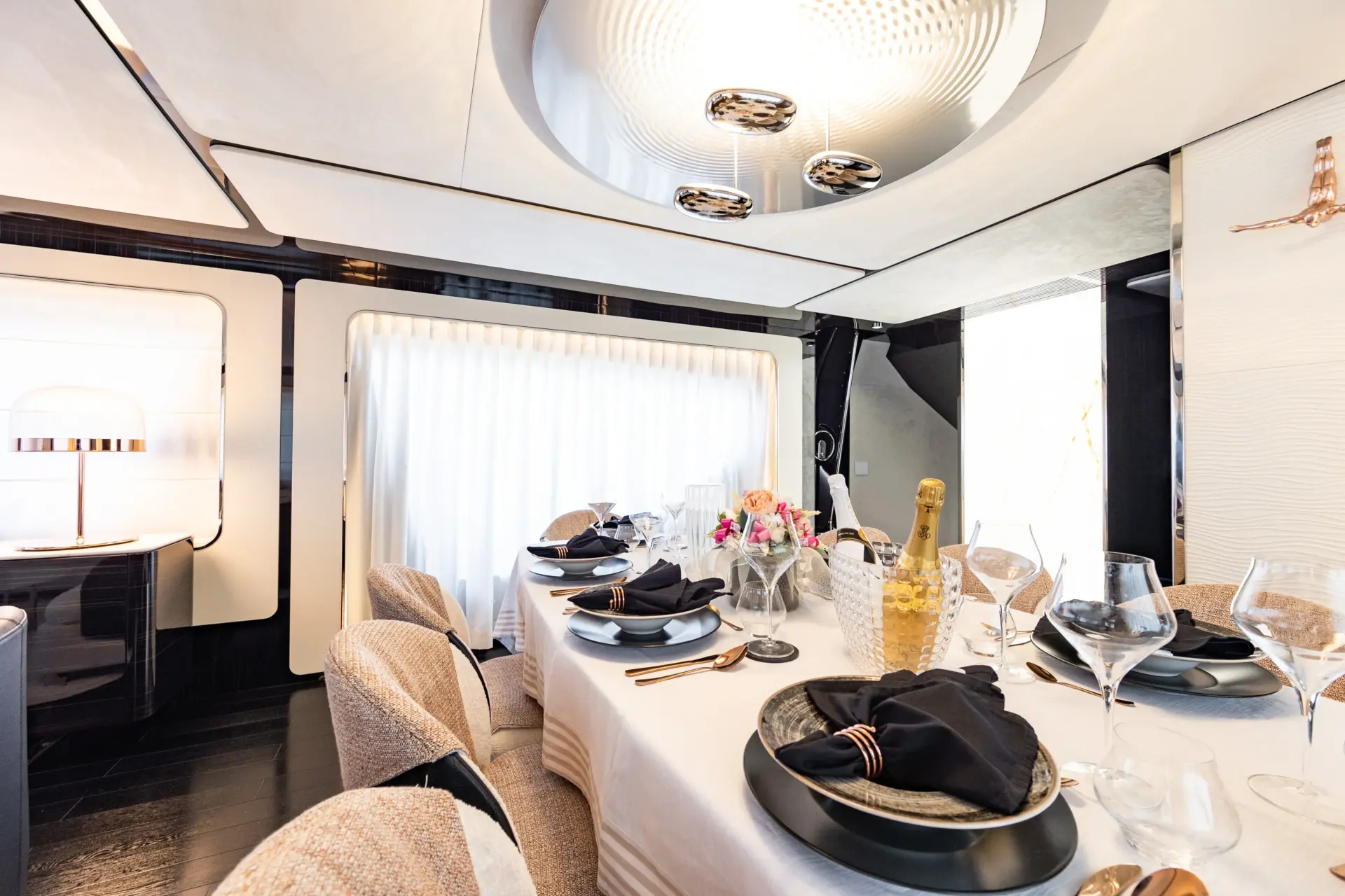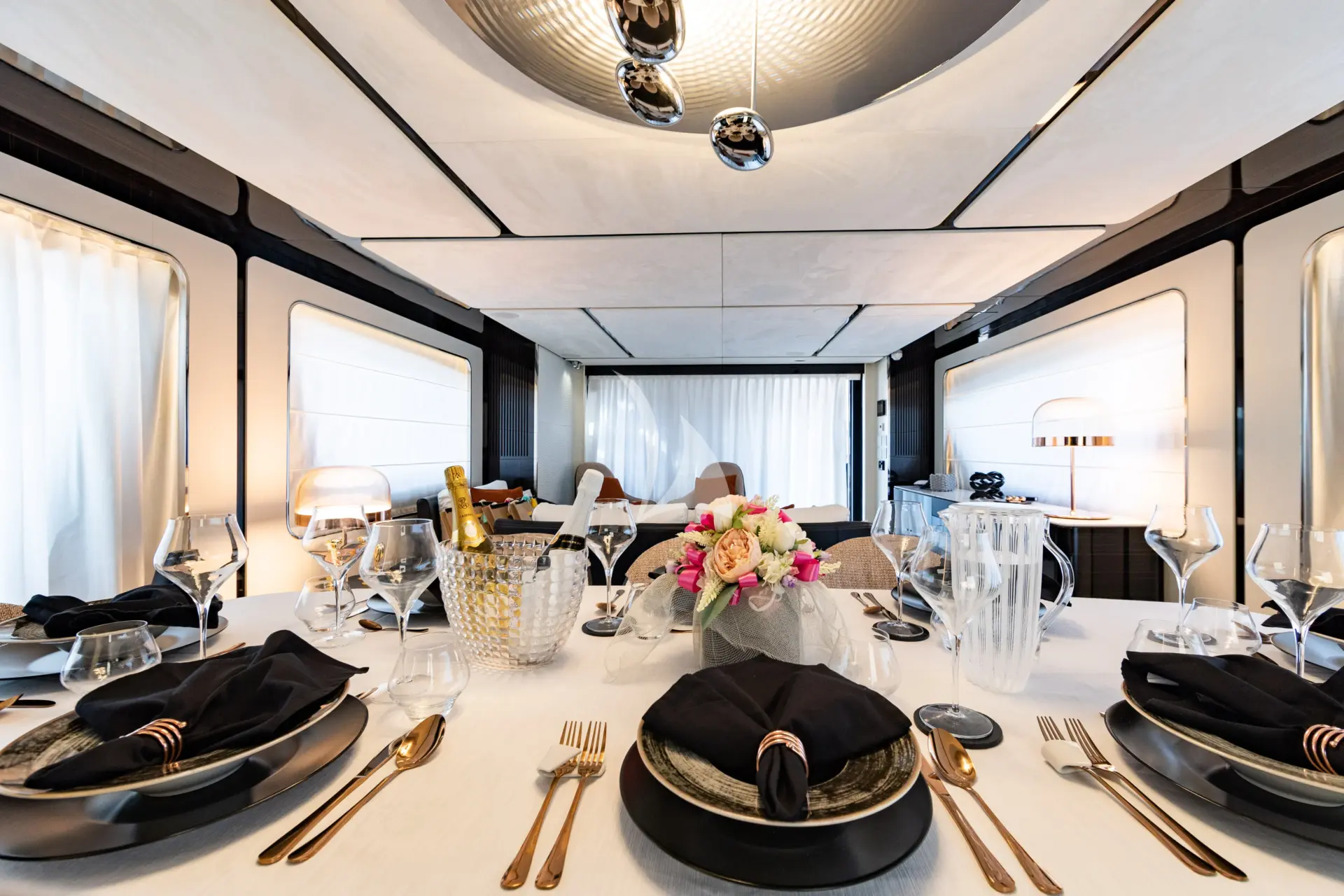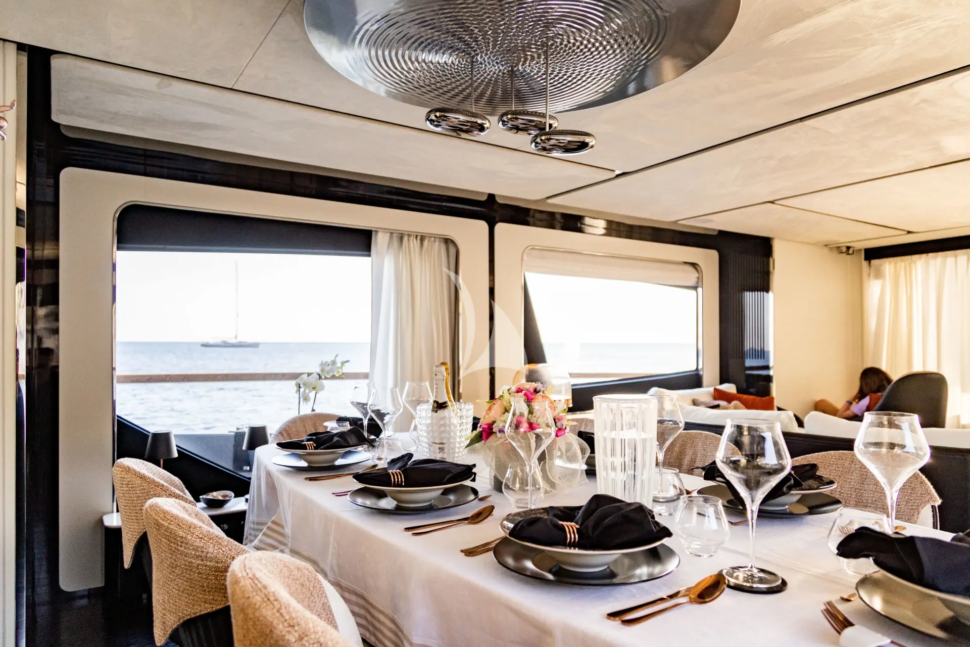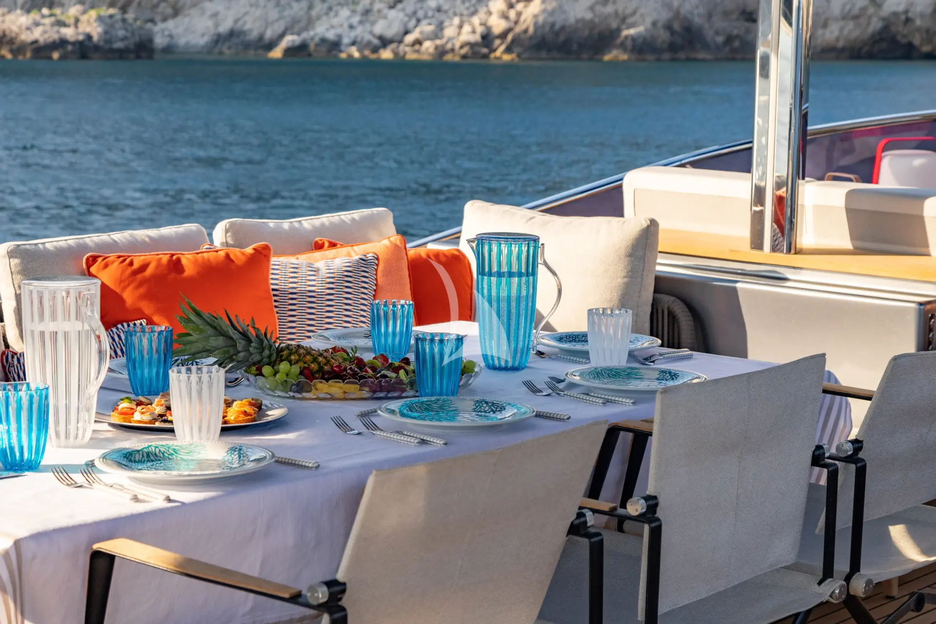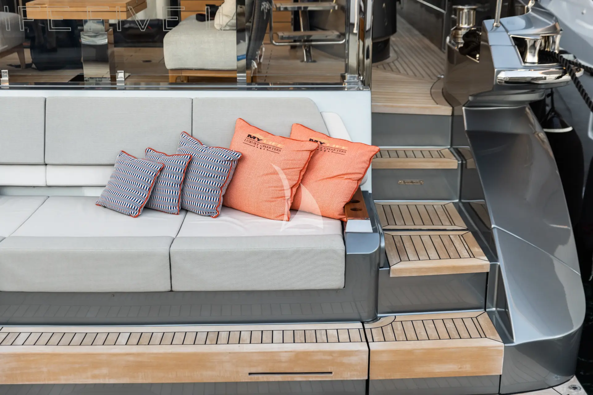 Accommodating up to 10 guests in 4 spacious cabins, "MY LIFE FIVE II" offers a haven of tranquility and relaxation. Each cabin is meticulously appointed, featuring plush furnishings, fine linens, and en-suite facilities. The master suite is a sanctuary of indulgence, providing panoramic views of the surrounding seascape. "MY LIFE FIVE II" boasts an array of amenities, including a spacious and elegantly designed saloon, a fully equipped galley for the culinary delights prepared by the onboard chef, and ample outdoor spaces for sunbathing and alfresco dining