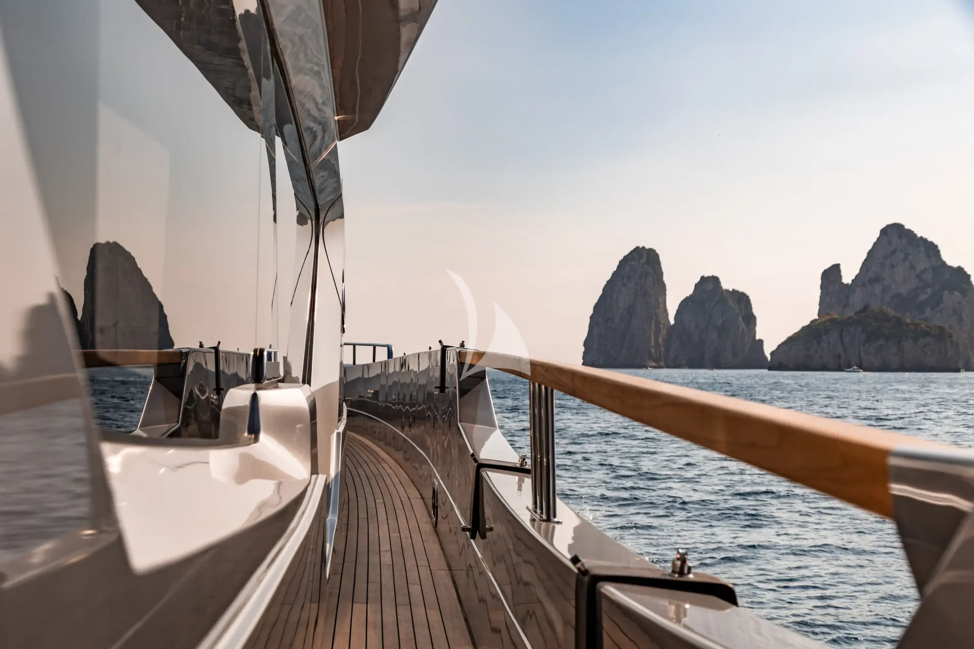 Introducing the exquisite motor yacht "MY LIFE FIVE II," a luxurious 28-meters yacht, crafted in the year 2022 and based in the picturesque port of Naples, Italy. This yacht is the epitome of opulence and sophistication, promising an unforgettable experience for those seeking the ultimate maritime adventure. With a dedicated and attentive crew of 5 professionals, your every need will be catered to. This magnificent yacht is ideally suited for chartering along the stunning Italian coastline, offering you the opportunity to explore the enchanting Amalfi Coast or captivating islands of Italy.