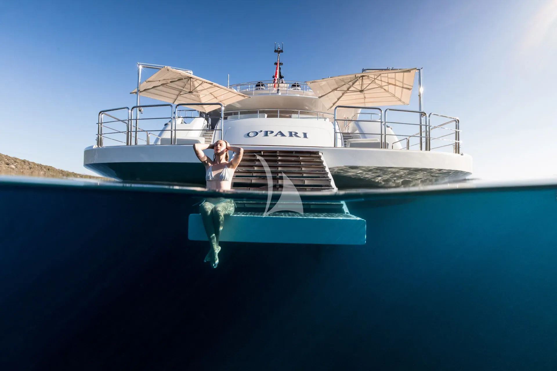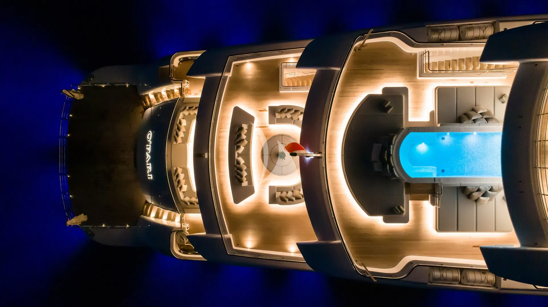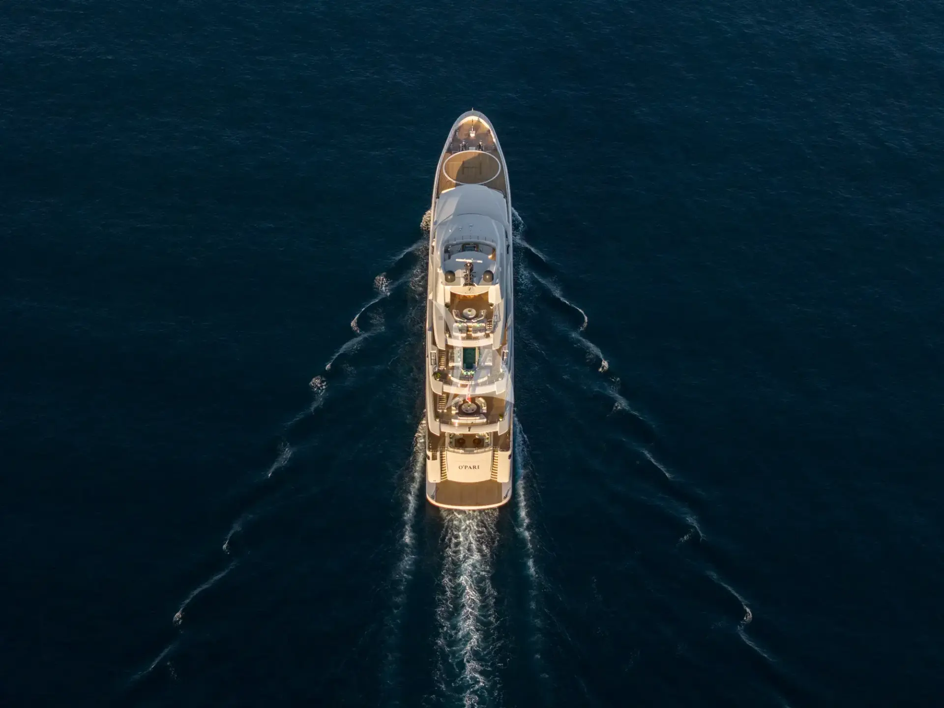 Accommodating up to 12 guests across 12 opulent staterooms, O’PARI offers unparalleled living spaces. The upper deck alone features a palatial Owner’s Suite with separate his and hers bathrooms, along with another VIP suite.
