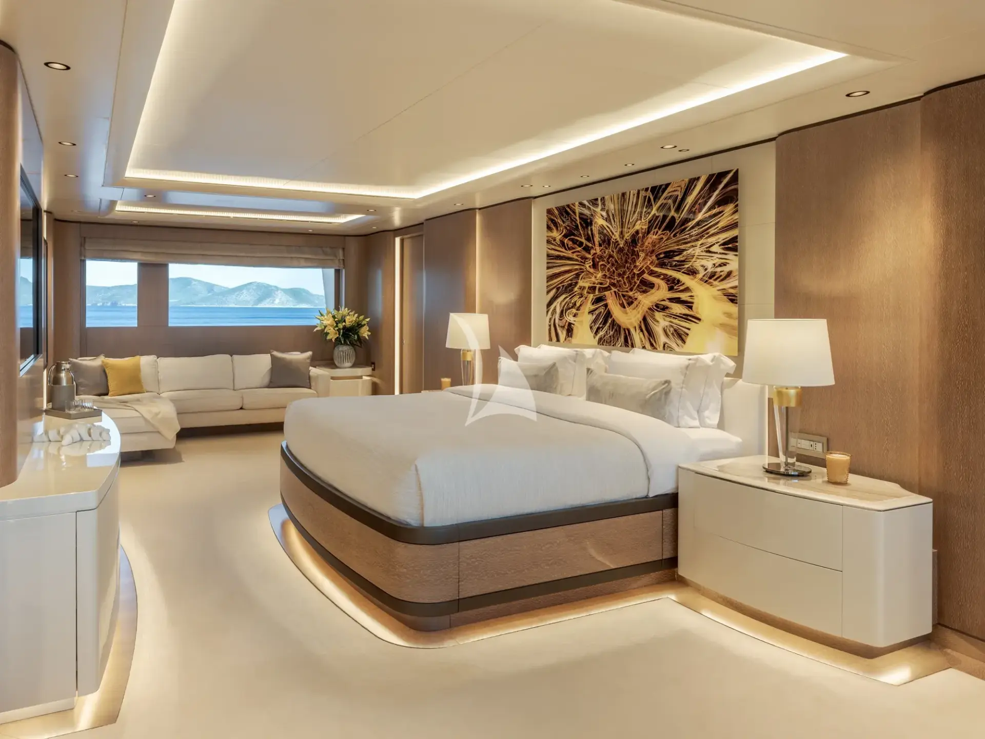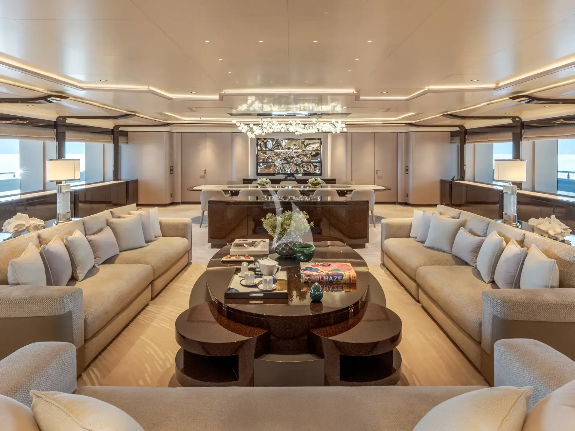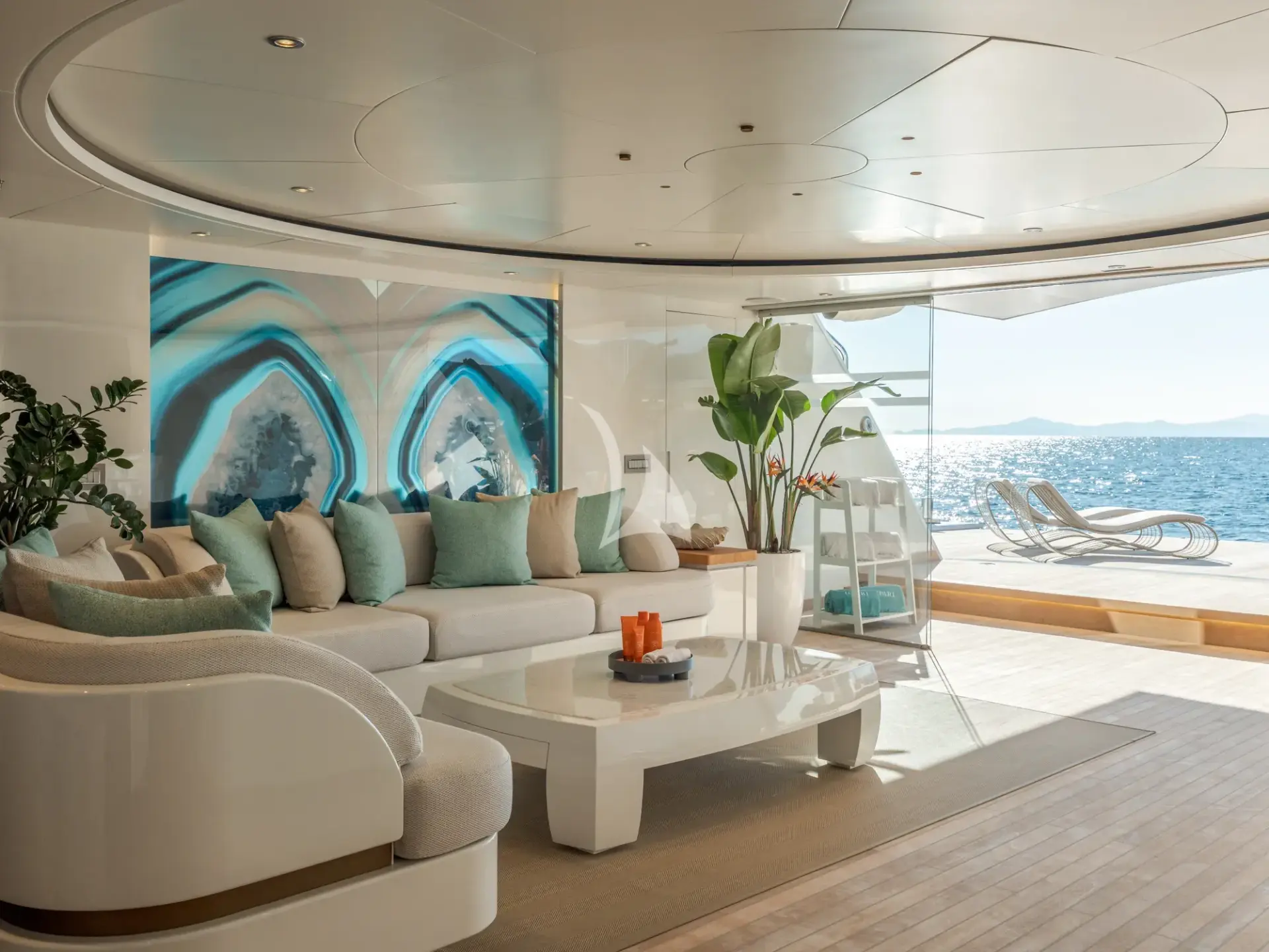 Accommodating up to 12 guests across 12 opulent staterooms, O’PARI offers unparalleled living spaces. The upper deck alone features a palatial Owner’s Suite with separate his and hers bathrooms, along with another VIP suite.