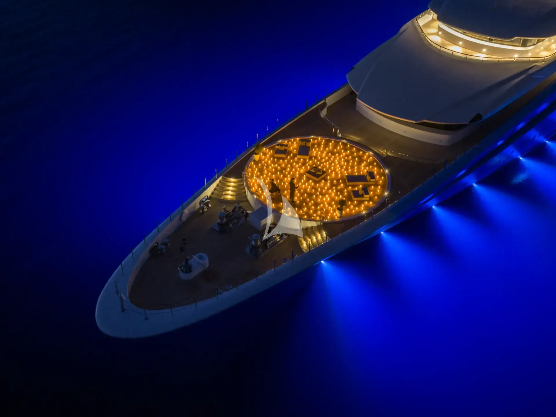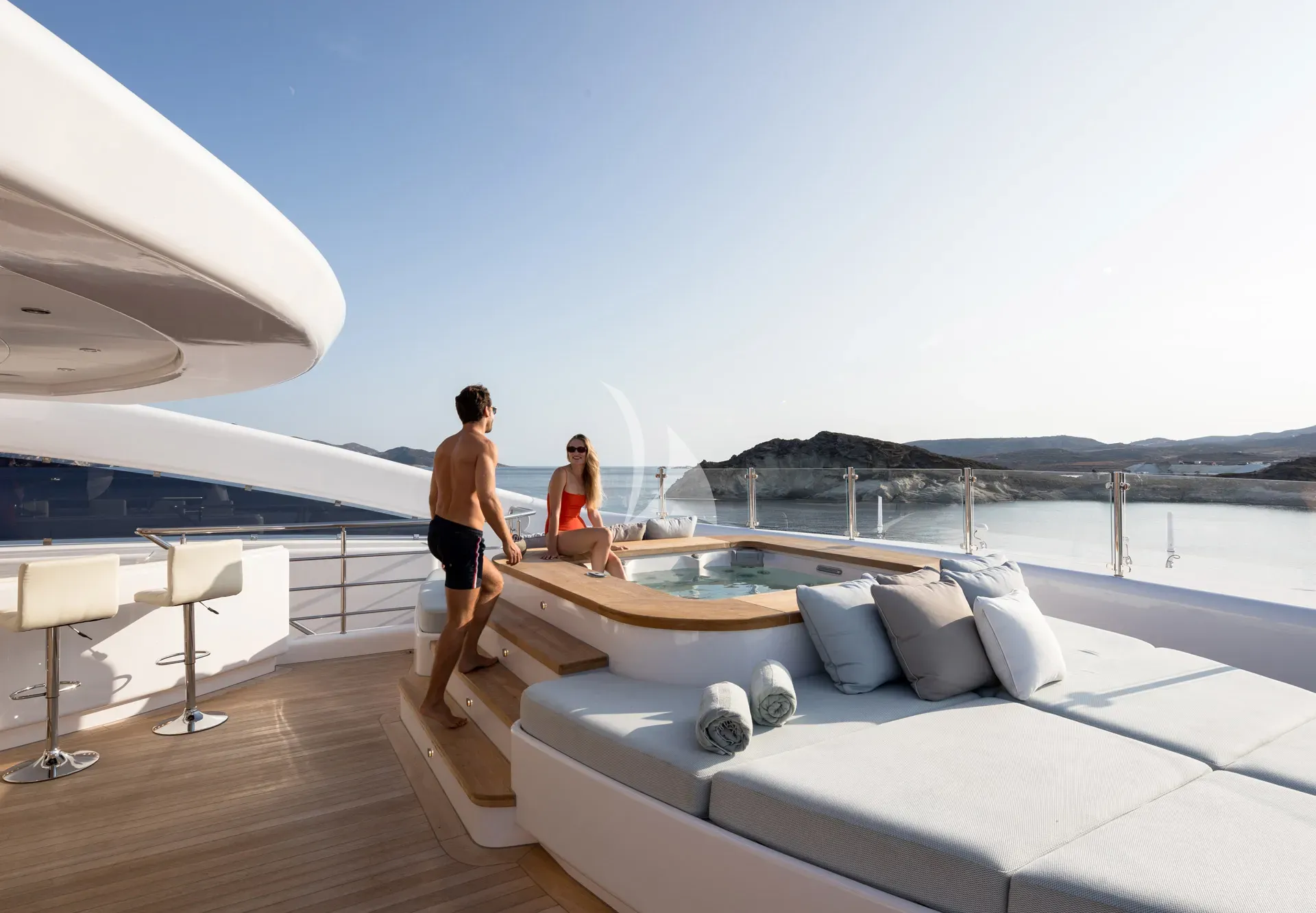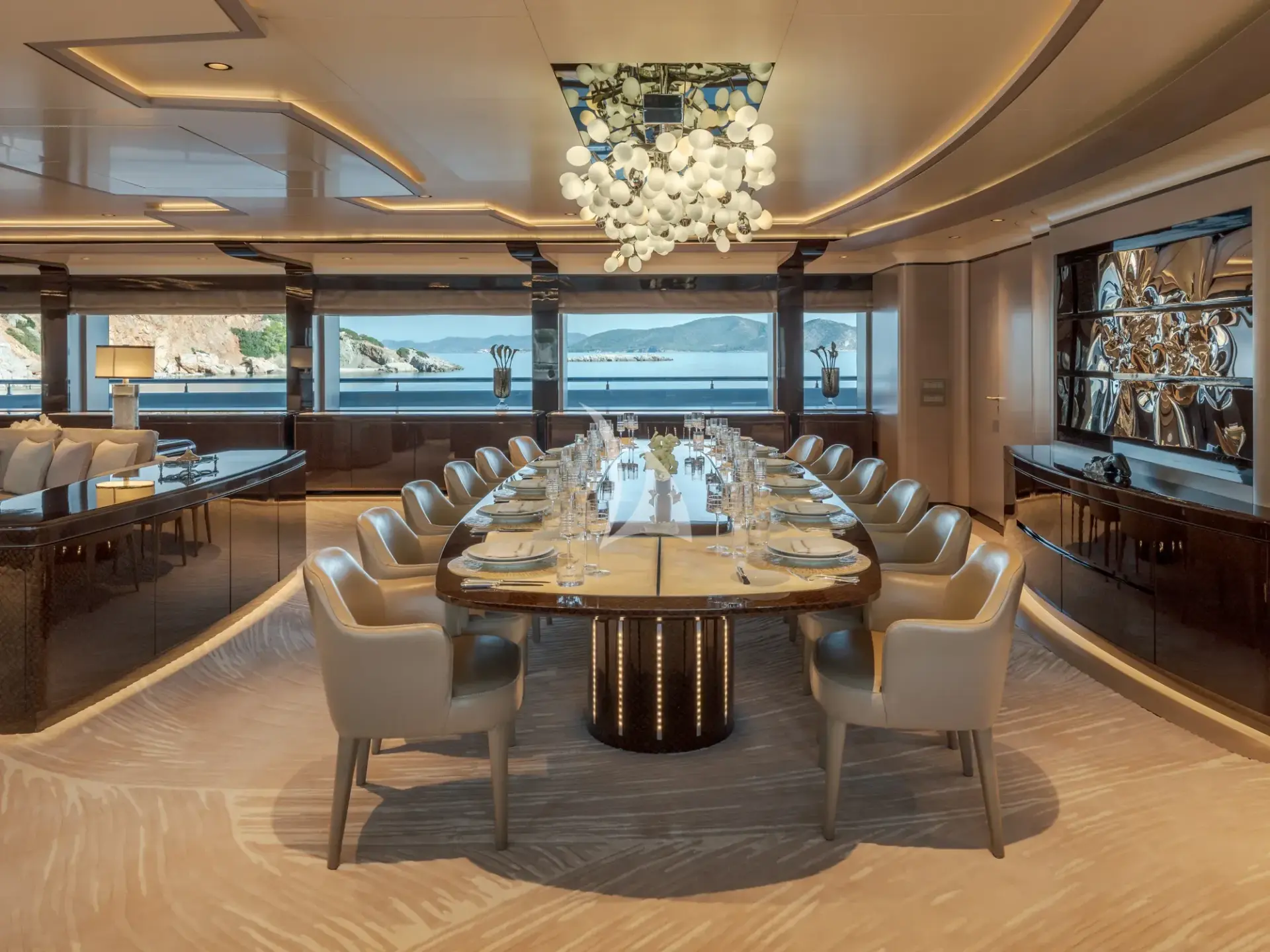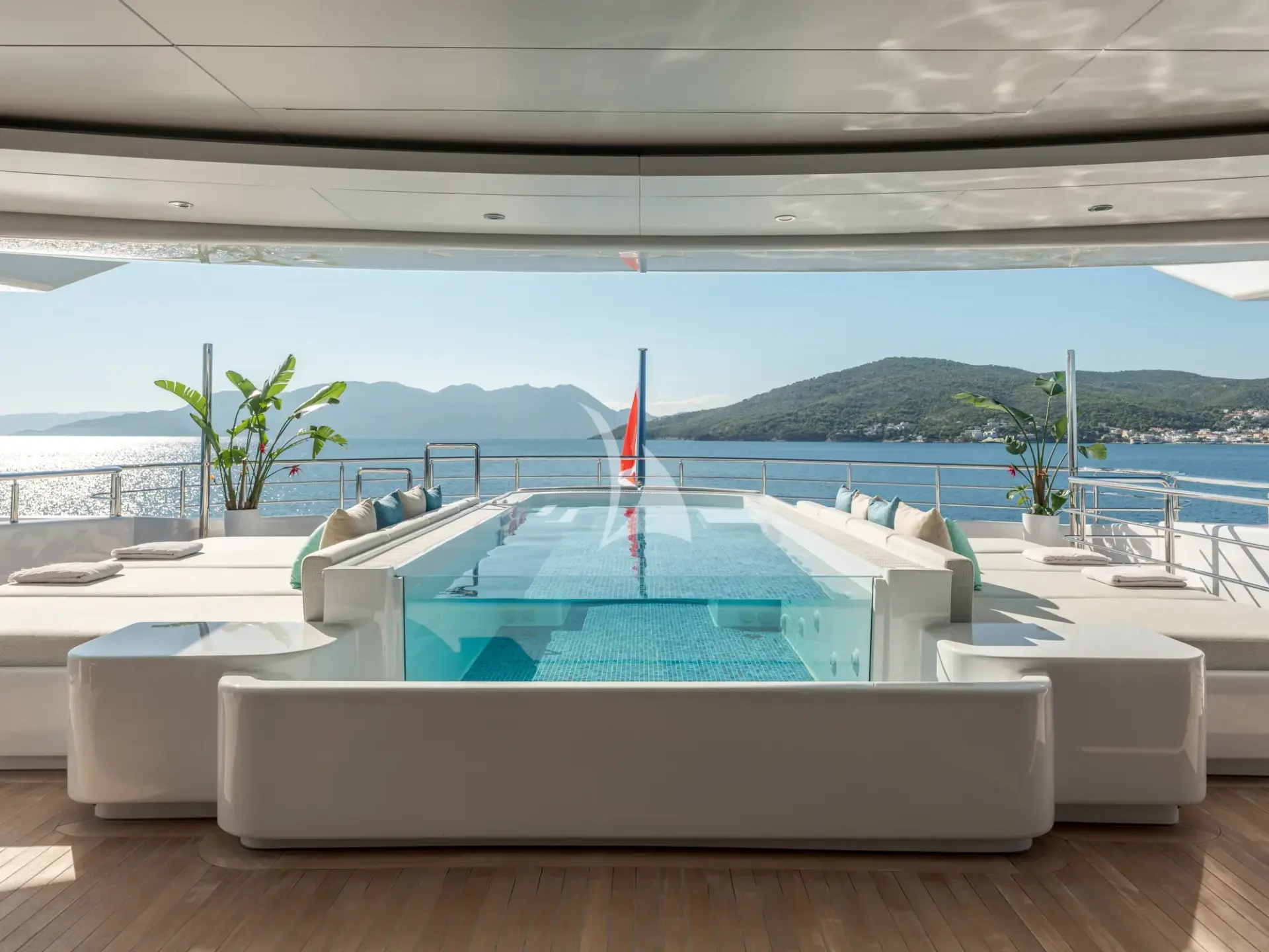 Fitness and wellness are at the forefront aboard this magnificent charter vessel. A fully equipped gym on the bridge deck leads out to a relaxing swimming pool, while a sea-level beach club features a massage/beauty room, warm hammam, and Finnish sauna. Guests can recharge in style or unwind in the sundeck Jacuzzi with panoramic views.