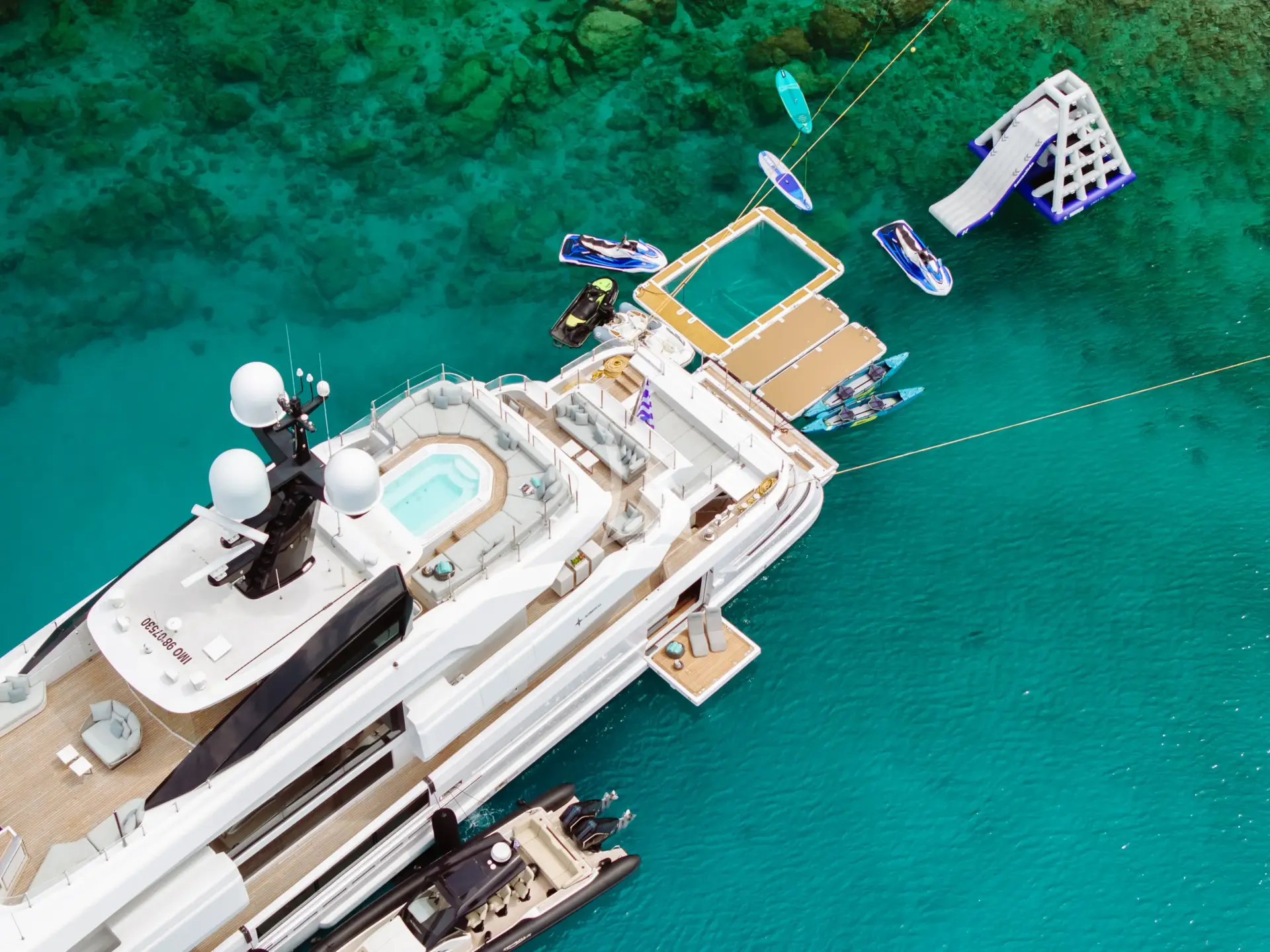 Refined design, thoughtful engineering, and an experienced, charter-focused crew make OURANOS one of the most compelling 50m yachts available for charter today. Built under 500GT yet offering expansive volume and wide open spaces, she’s a rare blend of style, silence, and seamless service. With a world-class crew of 13, including two accomplished chefs who have worked together for years, the guest experience aboard OURANOS is tailored to perfection. Her glass elevator, massive beach club, and tech-forward wellness facilities position her at the forefront of modern chartering; ideal for families, groups of friends, or multigenerational getaways.
