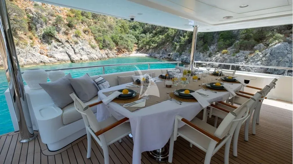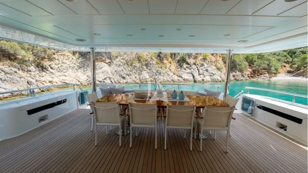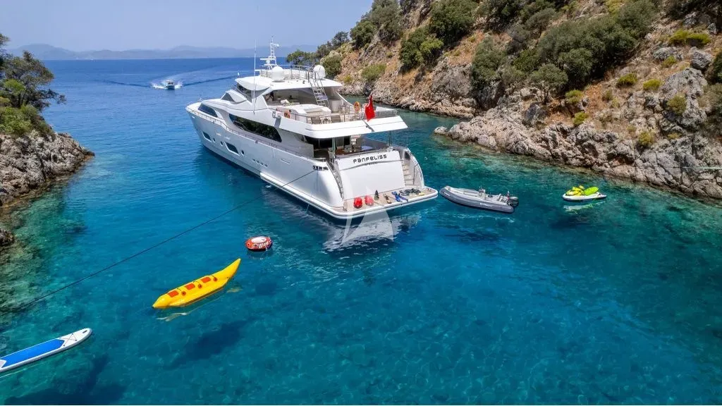 PANFELISS is a 123ft (38m) motor yacht built by Mengi Yay Yachts in 2009 and refitted in 2024, with design by Mengi Yay. She accommodates up to 12 guests in 5 cabins comprising 3 double and 1 twin and 1 triple, with a professional crew of 3 ensuring an exceptional charter experience. Available for charter in All East Med.
