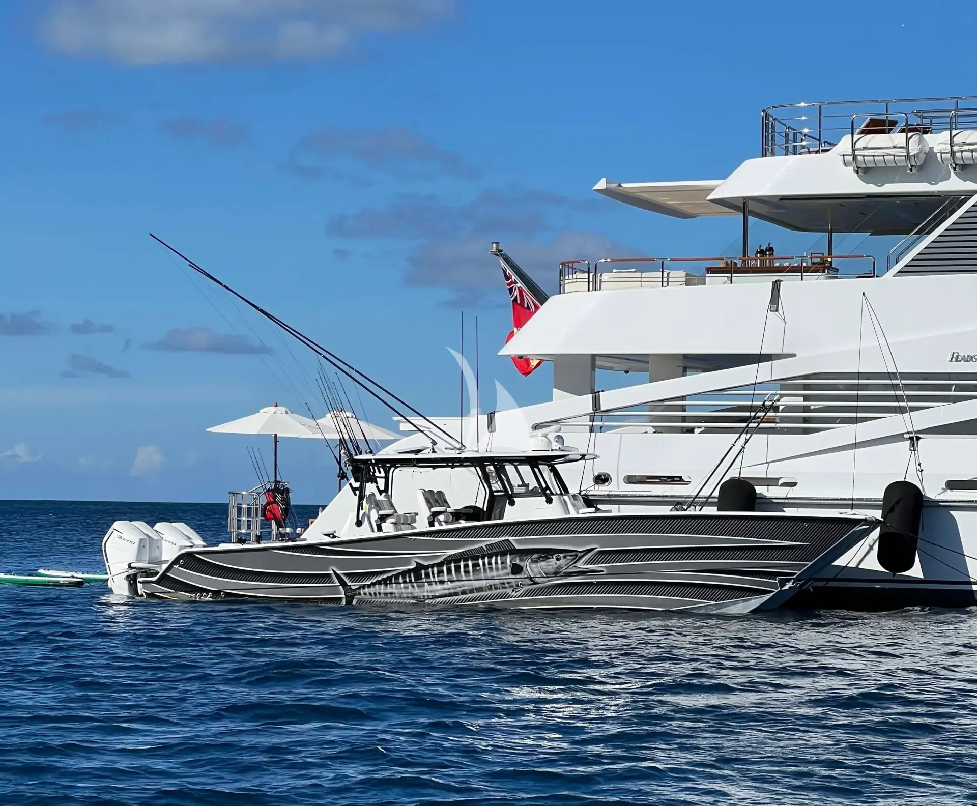 One of the key desires for the owner of ROCK.IT was that his Feadship should be a true hybrid style-wise, blending an innovative and sporty exterior with an old-school, classic-comfort interior. Light pours in through the huge windows showcases ROCK.IT‘s extraordinarily warm, friendly and homely environment, all wrapped within a completely stylised, modern outdoor jacket. Realising these diametrically opposed interior and exterior requirements is the very essence of pure custom creation. Dark precious woods and light stones are blended in a fantastically detailed classic modern style. Splendidly spacious thanks to the full-beam throughout, crotched mahogany and striking diagonally veneered sycamore panelling generate a very personal touch. Backlit pure White Onyx in combination with an enormous amount of Statuario and sensational slabs of Portoro elevate the interior to a higher level while retaining its primary purpose of being a true family yacht.