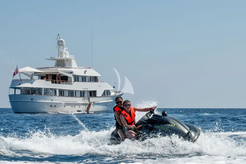 But while she may look classic, SHEERGOLD is built for adventure. With a cruising speed of 11.5 knots and a top speed of 13.5, she is ideal for unhurried days at sea—wherever that sea may be. Her heated decks make her supremely comfortable for high-latitude cruising while her breezy canoe stern is perfect for lounging under the sun. She enjoys a brand-new watertoy collection that includes e-foils, Seabobs, a towable Williams jet tender, Waverunners, paddleboards, and a modular floating platform perfect for creating your own pop-up beach club.