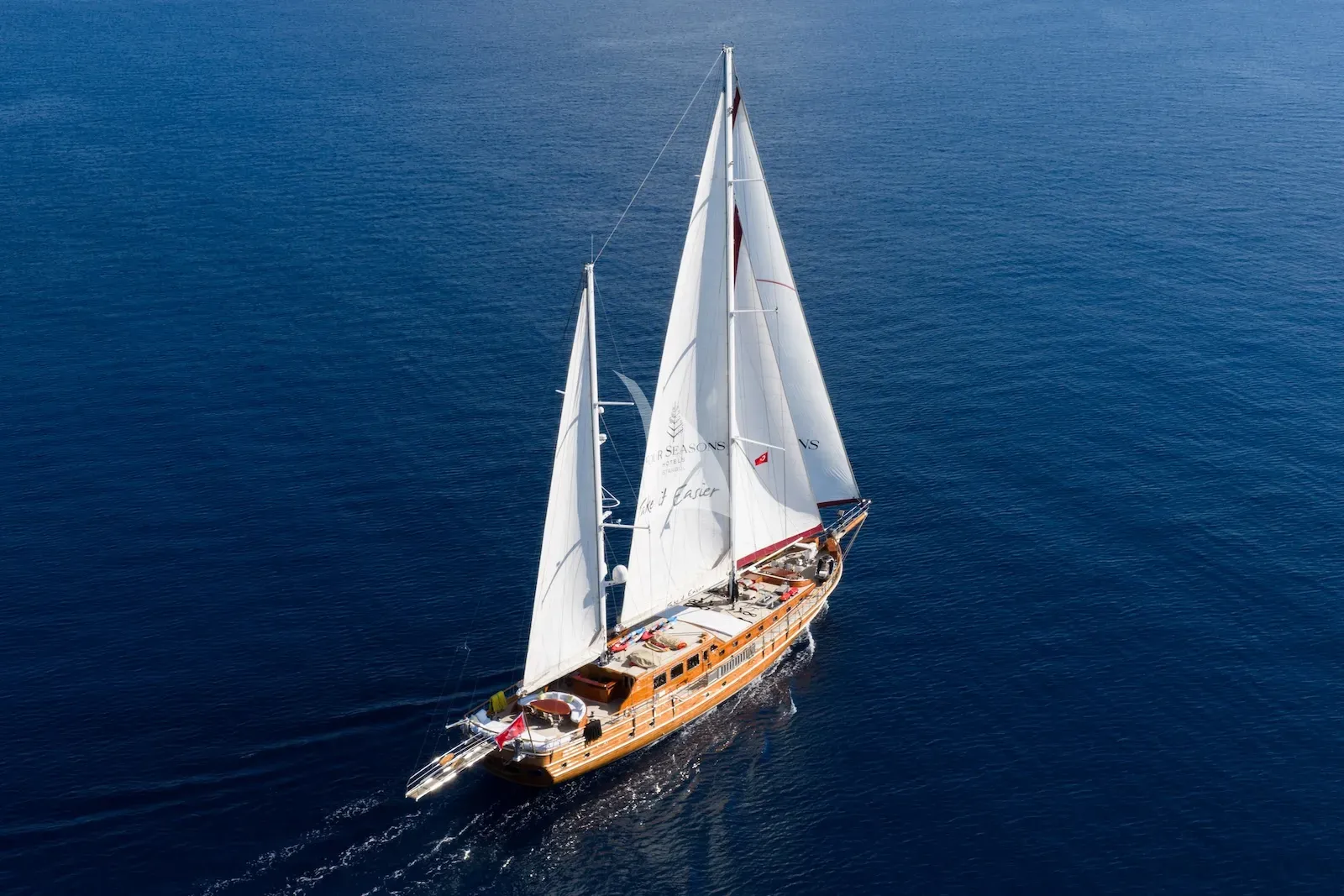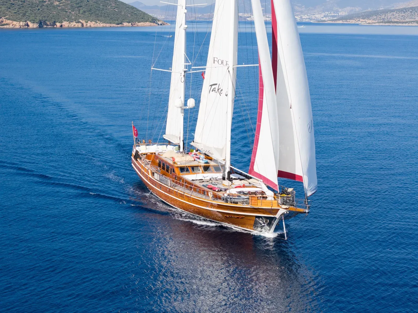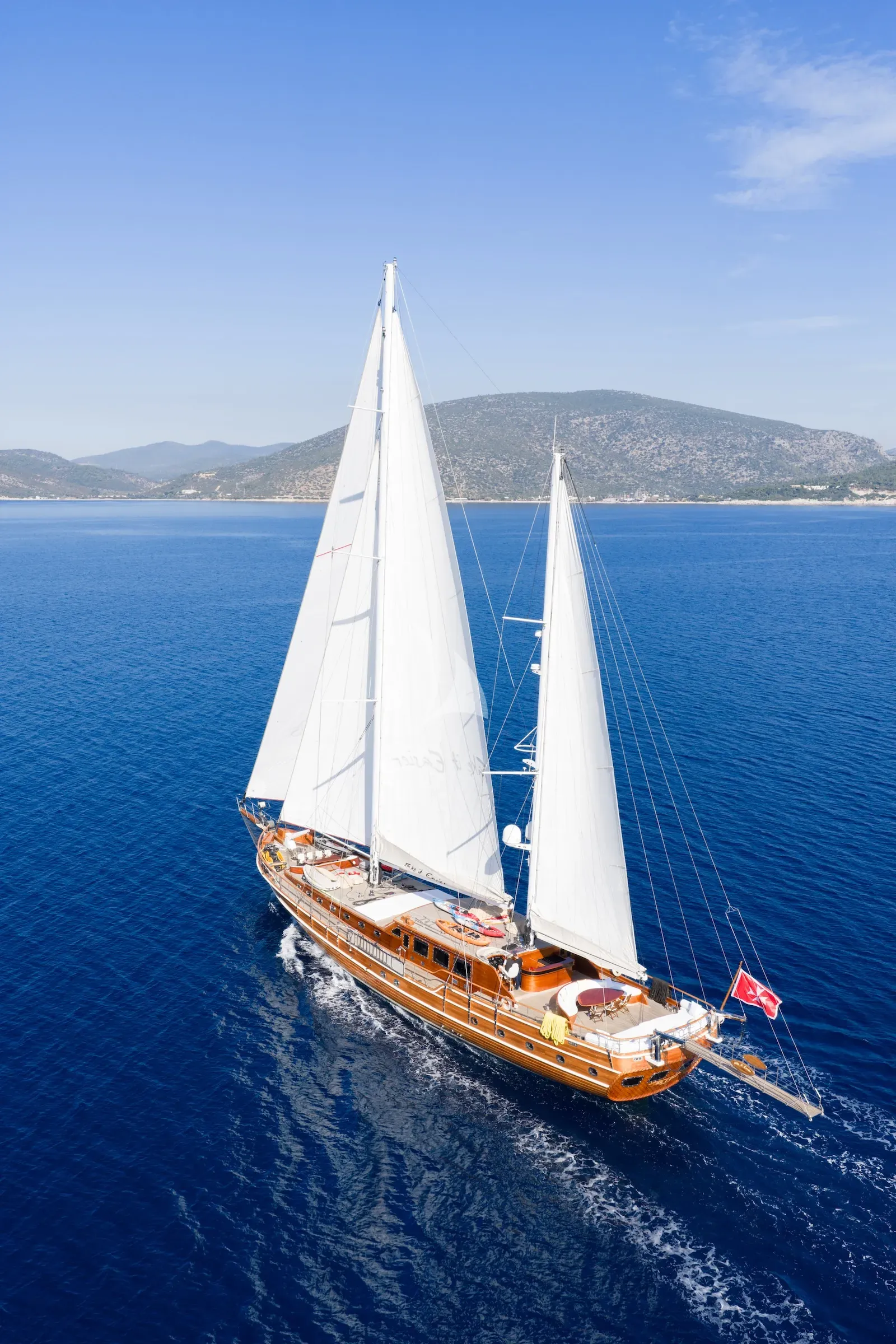 We invite you to TAKE IT EASIER, a beautifully maintained 38m traditional gulet built in 2007 by the master craftsmen at Cavusoglu Yat Imalathanesi in Turkey. Her classic wooden hull and superstructure reflect timeless craftsmanship, while long-term private ownership and a consistent crew ensure she has been cared for to the highest standards. Accommodating up to 11 guests comfortably, she balances modern functionality with elegant, traditional lines and the warmth of a much-loved yacht. Whether you’re seeking a relaxing retreat or hoping to sail and explore secluded bays where only a few vessels venture, TAKE IT EASIER offers a charter experience that feels both personal and refined.