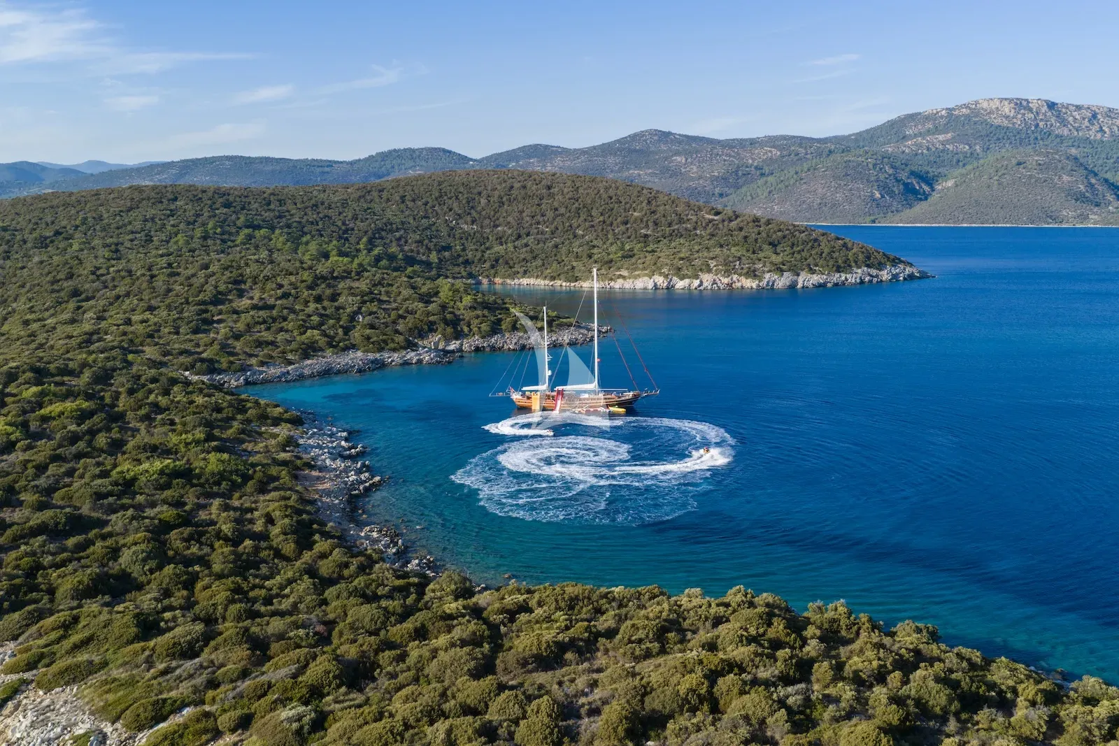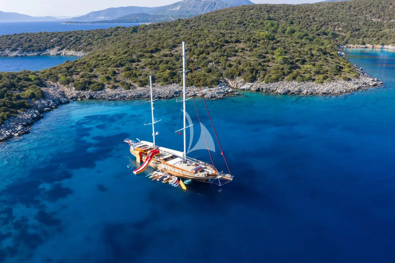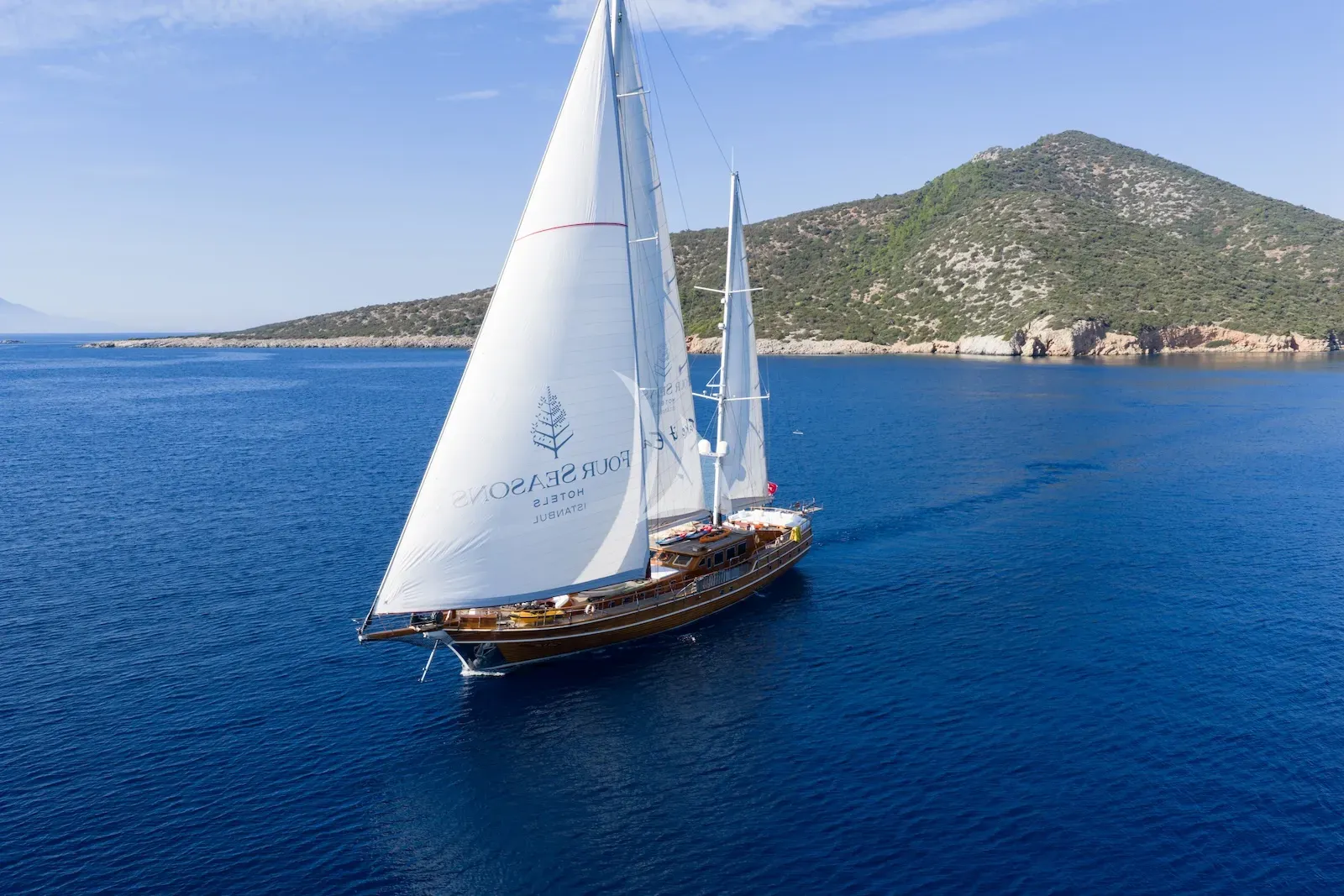 Outside, you’ll find expansive teak decks designed for easy lounging, generous sunpads, a cosy foredeck seating area, and a welcoming aft cockpit perfect for al-fresco dining. With Turkey’s Aegean and Mediterranean coastlines at your fingertips, you can glide from hidden coves to lively harbours with ease. Her generous deck spaces lend themselves beautifully to relaxed entertaining—long, sunlit lunches, quiet evenings with a chilled glass of wine at the stern, or early-morning swims from the swim ladder into calm, crystalline waters.