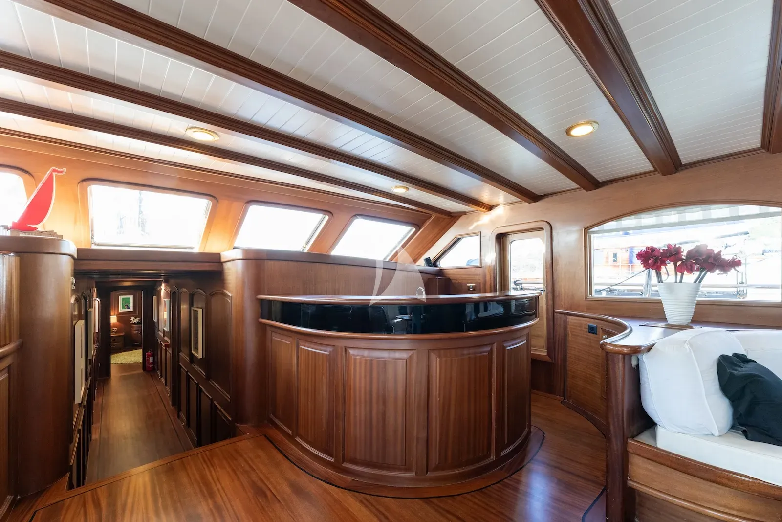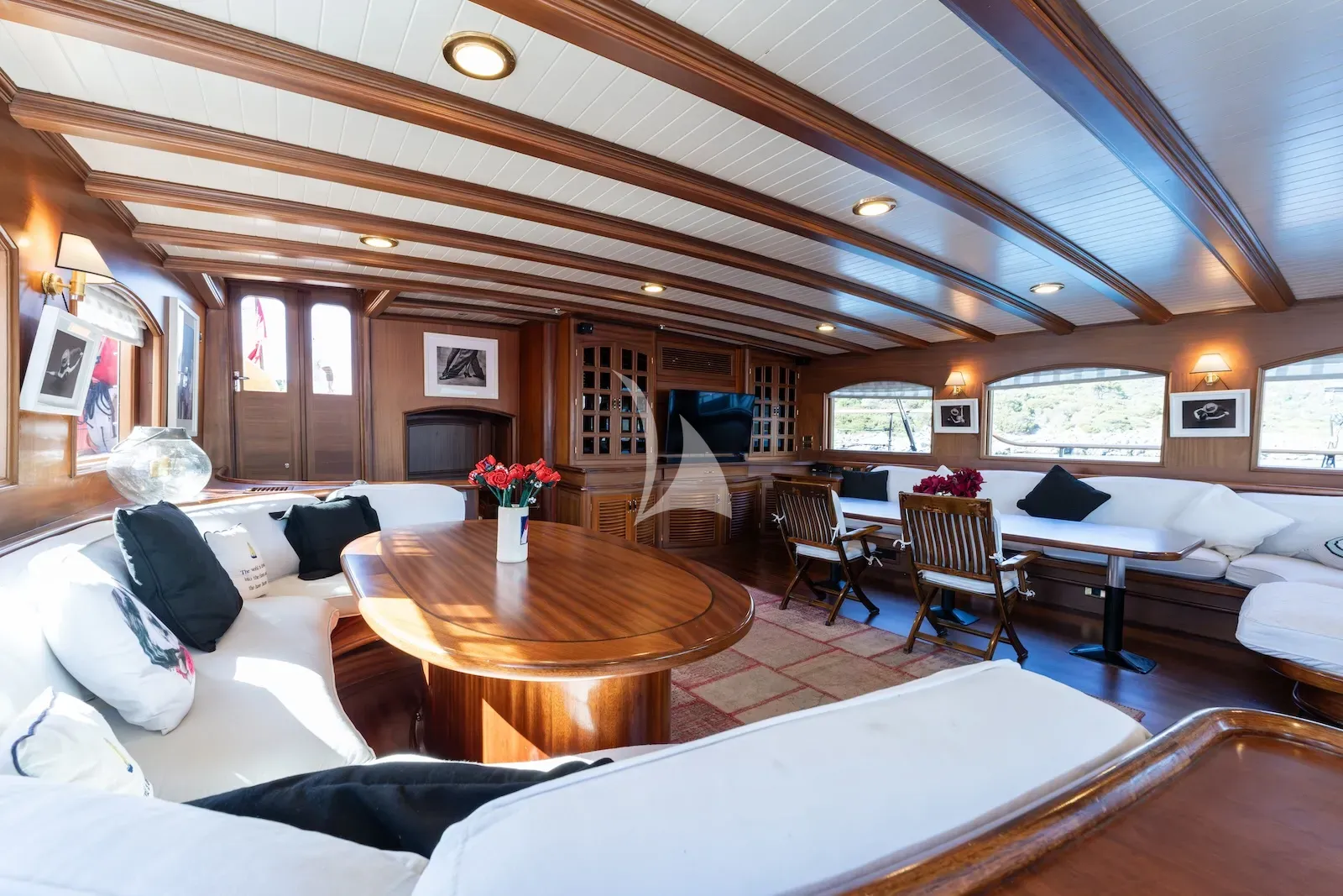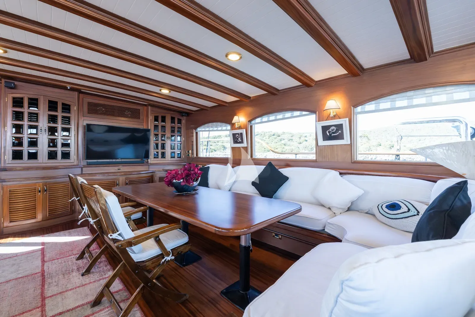 Inside, the interior feels soothing and inviting. The main saloon encourages you to unwind with soft furnishings, warm woodwork, and a sense of openness, while the cabins are comfortable and elegantly appointed. The master cabin is particularly spacious, offering an elegant private retreat while keeping you close to the heart of the yacht. She also features a full beam VIP stateroom, a guest triple, two convertible twin staterooms, and a small infant cabin, providing flexibility for families, friends, or couples.