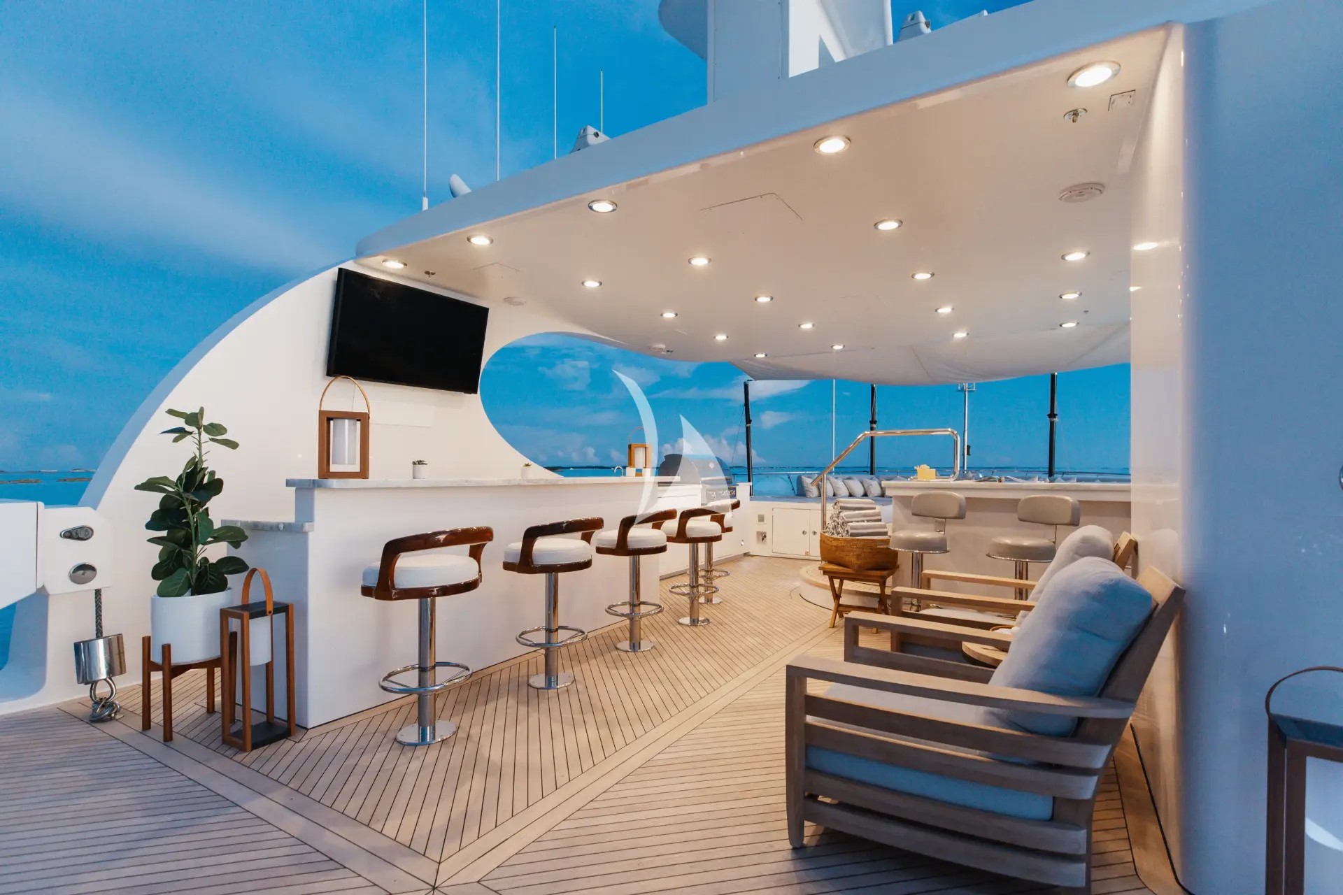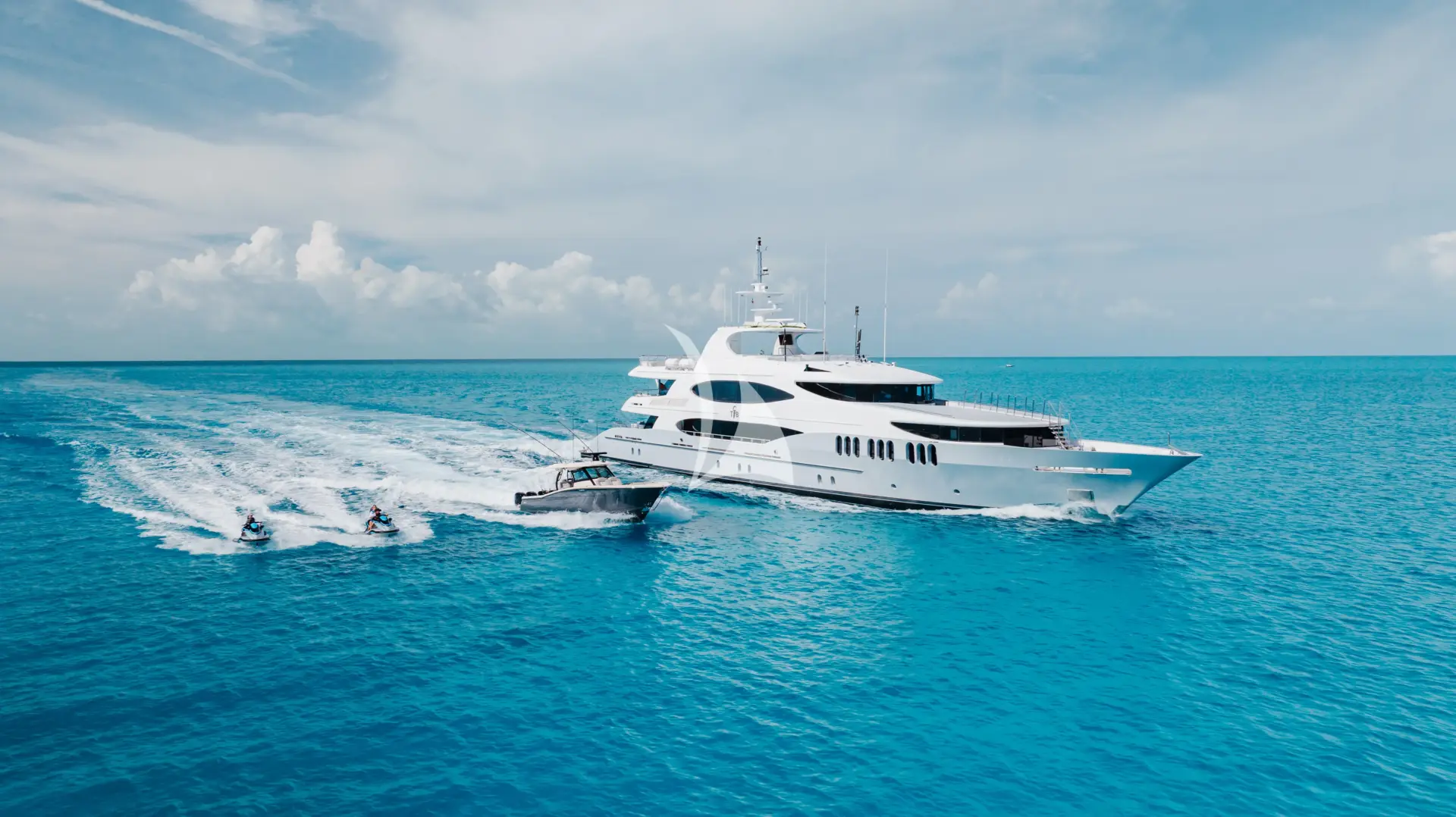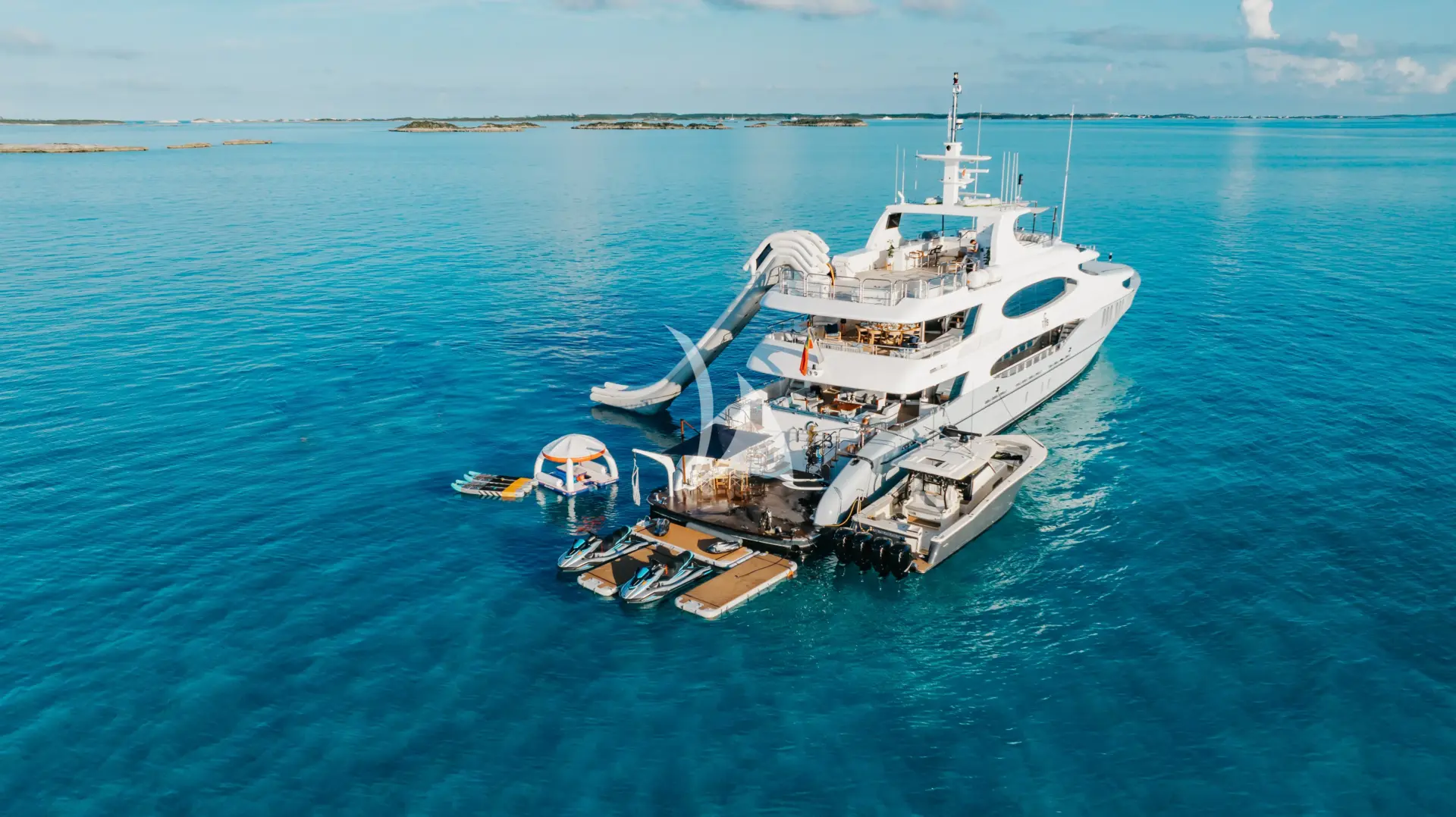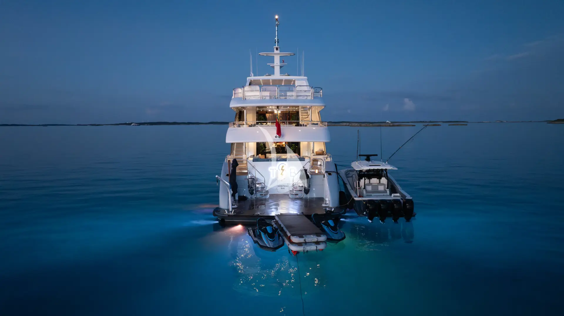 Guests can make their way up to TCB’S vast sundeck for fun in the sun. On this level, an alfresco gym provides guests the ability to keep their workout routine while on board with an arrangement of equipment at their disposal. A large six-person Jacuzzi invites guests to soak in the shade. The charter yacht’s deck space is large enough for guests to move around comfortably. Large built-in double-facing sunpads and sun loungers ensure guests will be in complete comfort while sunbathing, and optional shading is available when desired. TCB’s full complement of water toys will do the trick for those seeking a little exhilaration. TCB’s plethora of water toys are readily available for each guest’s enjoyment. Easy access to water toys is available from TCB’s extended swim platform and docking system making the switch from ski’s to wave runners a breeze. No matter the group, guests of all ages will find that TCB and her experienced, charter savvy crew exceed expectations.