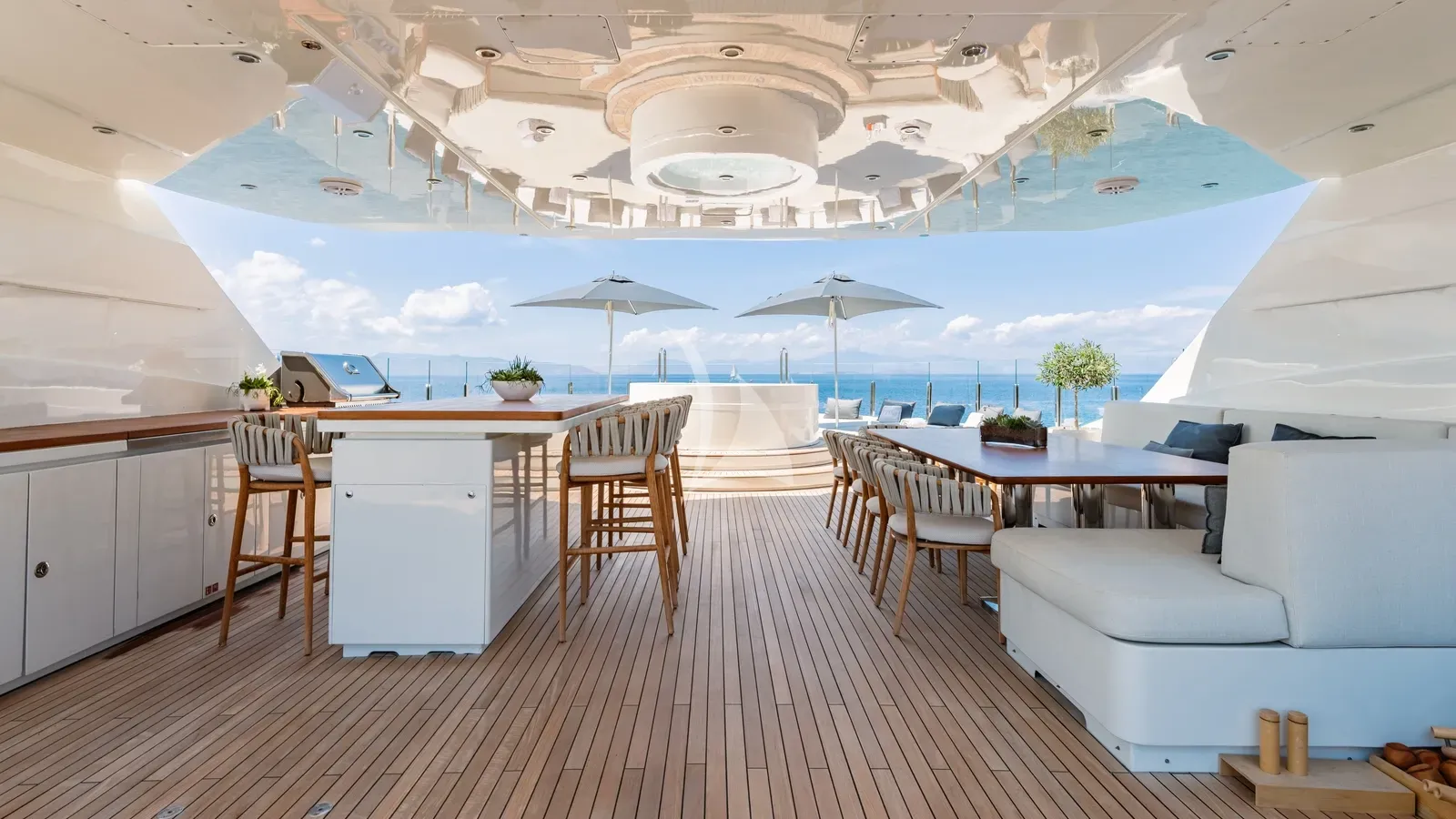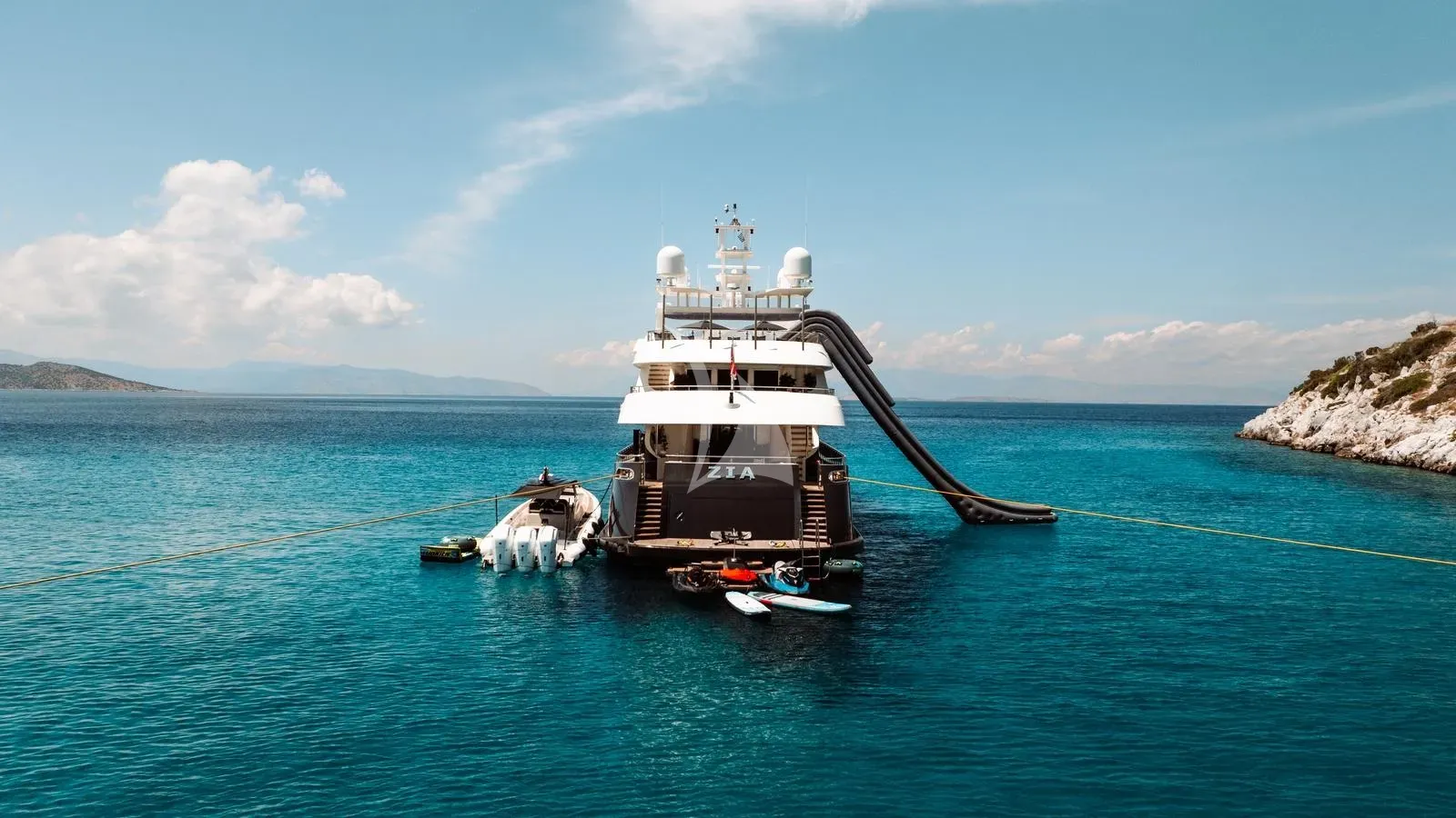 Each deck of ZIA boasts a state-of-the-art entertainment system, offering a personalized experience for every guest. Stabilizers ensure smooth cruising and anchoring, while Wi-Fi connectivity and air conditioning provide seamless communication and climate control throughout the vessel. ZIA is more than a yacht; she is a sanctuary at sea, blending elegance, adventure, and unmatched service for an unforgettable charter experience.