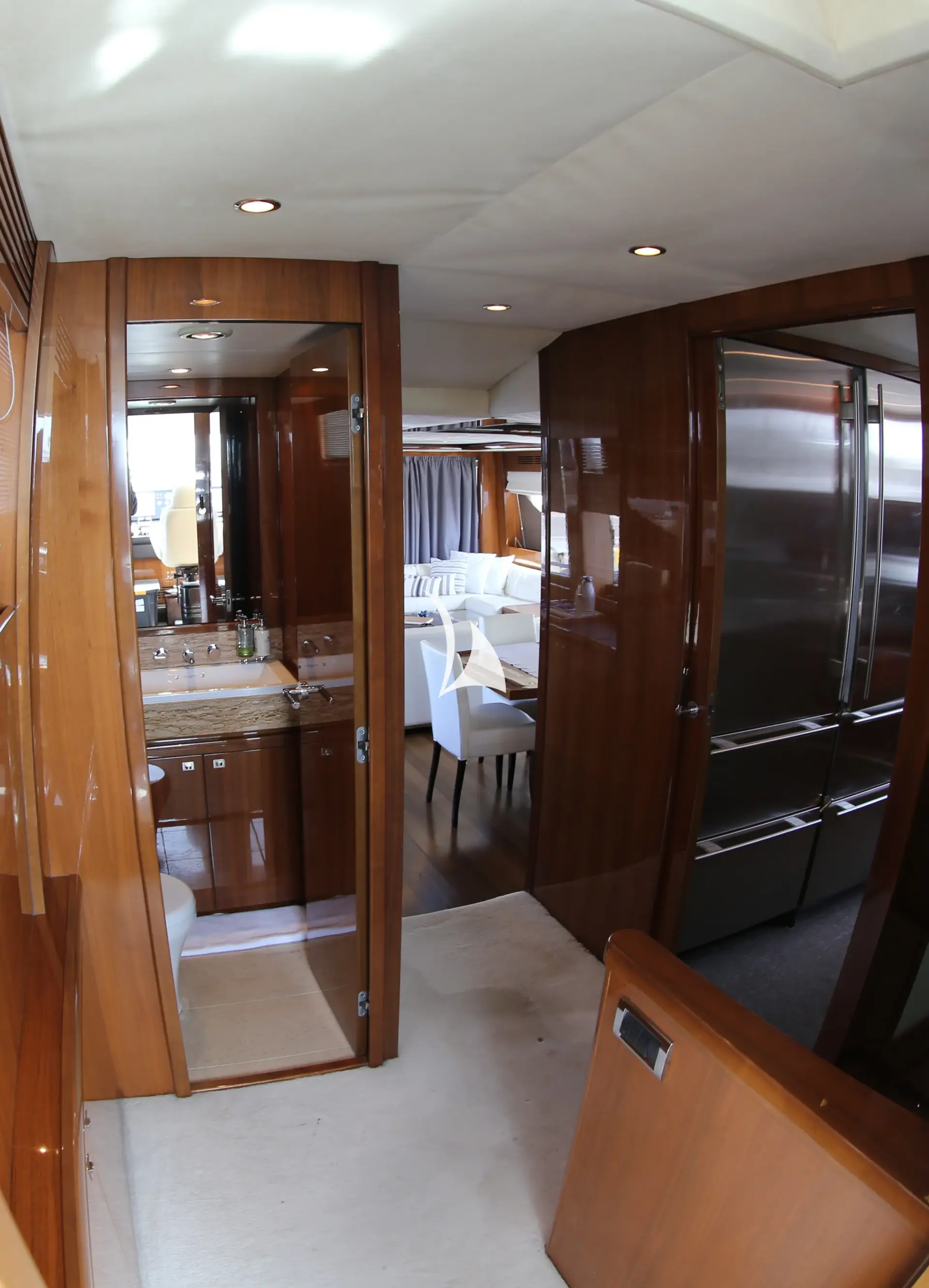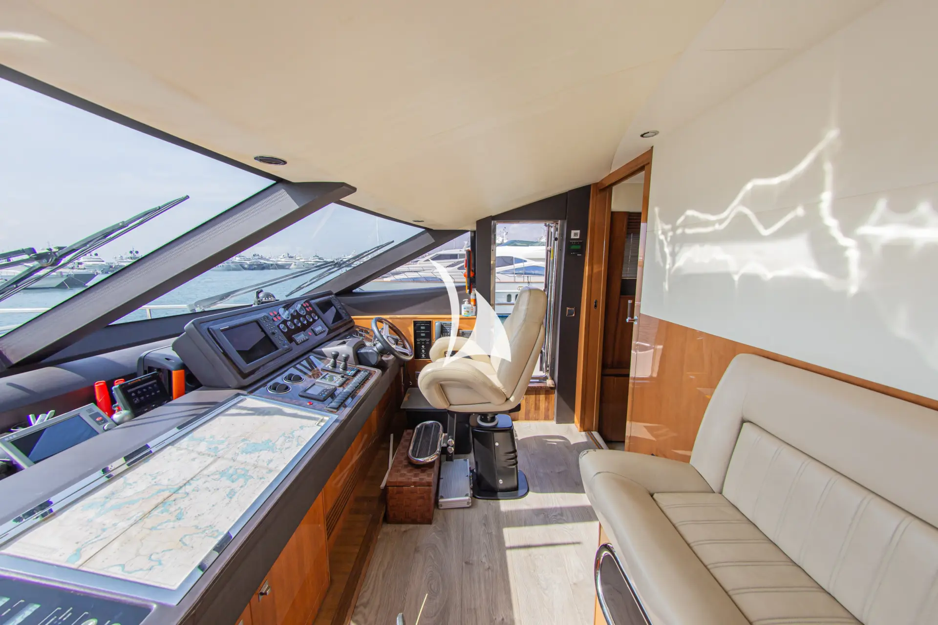 With accommodation for eight guests in four elegantly appointed cabins, 4LIFE is a fantastic choice for families and couples alike. 4LIFE's interior is adorned with fine leathers, neutral fabrics, and rich teak finishes, and offers panoramic views and upscale amenities for TV, cocktails, and dining. Outside, the guests can enjoy al fresco dining and socializing on the spacious aft deck, shaded for comfort, with a well-equipped bar. The flybridge is perfect for relaxation on comfortable seating or sunbathing on the raised pad, complete with a dining area and a fully stocked bar for entertainment and leisure. Zero speed stabilizers and water toys complete the package, while the sinking swimming platform invites the guests into the breathtaking crystal clear waters of Greece.