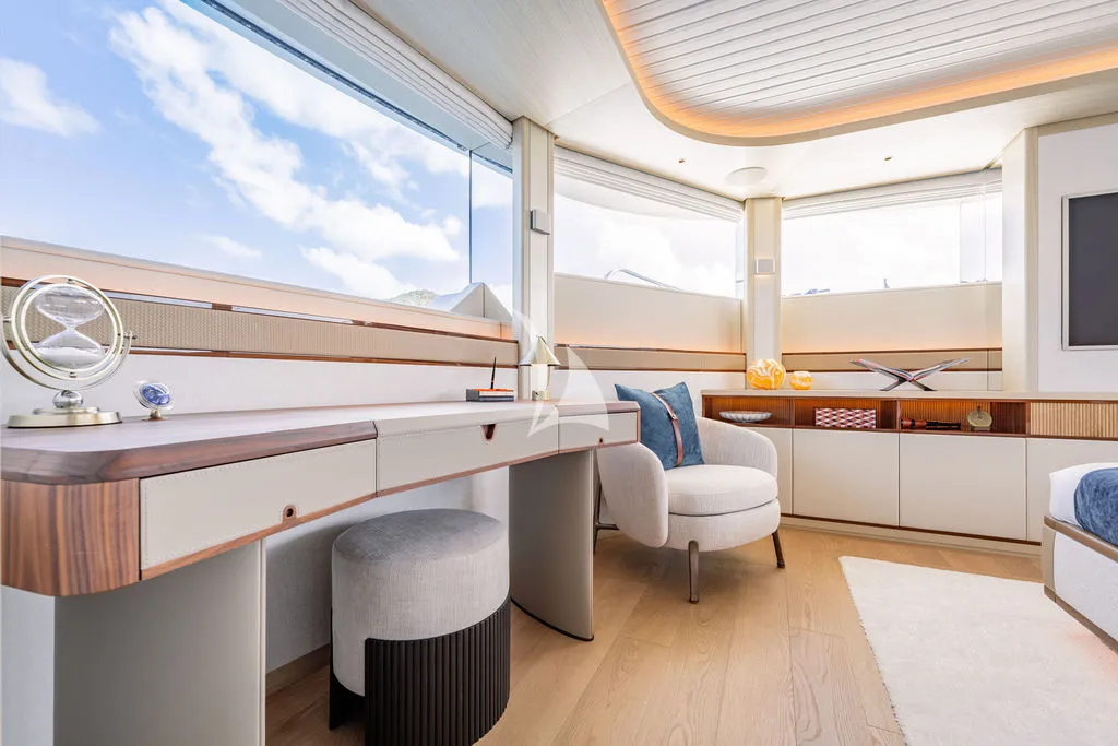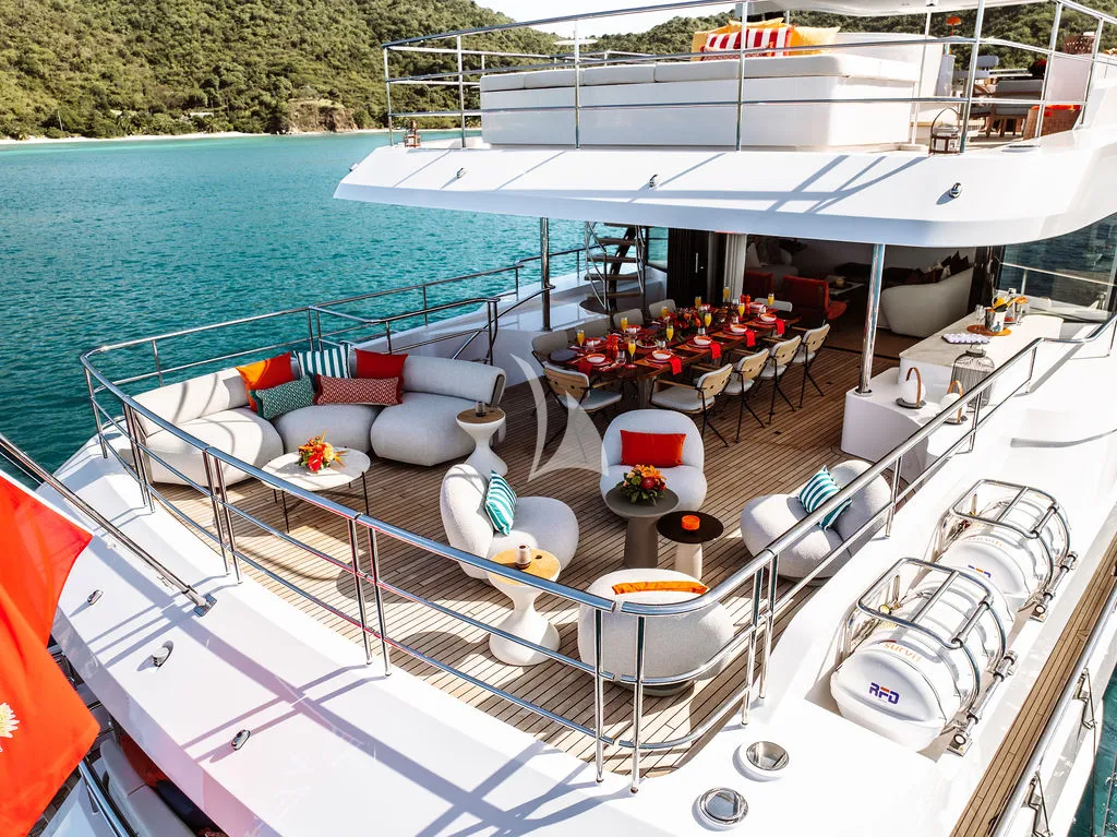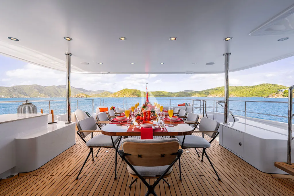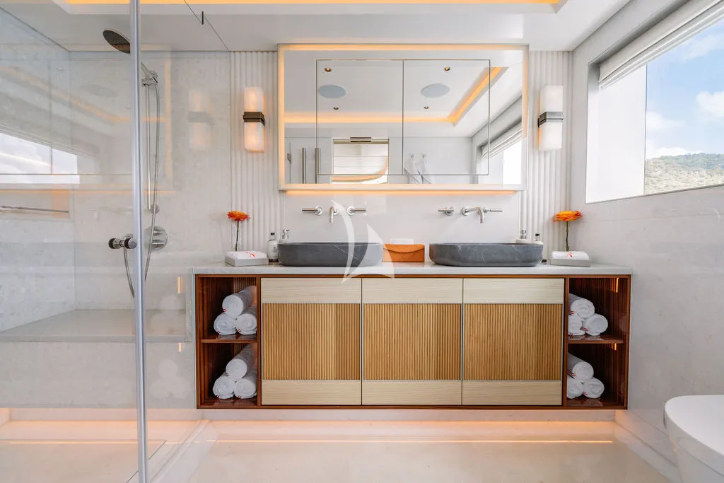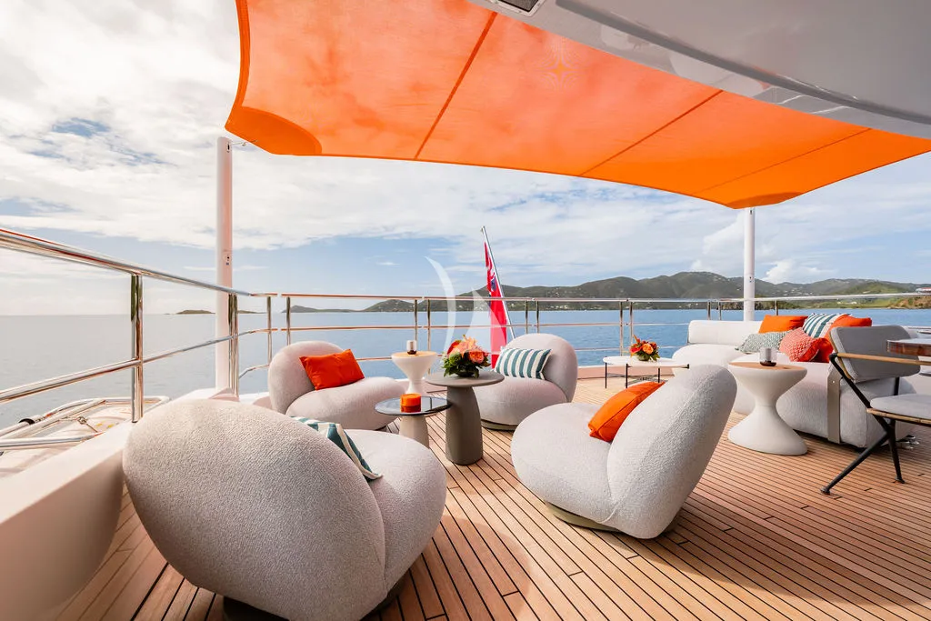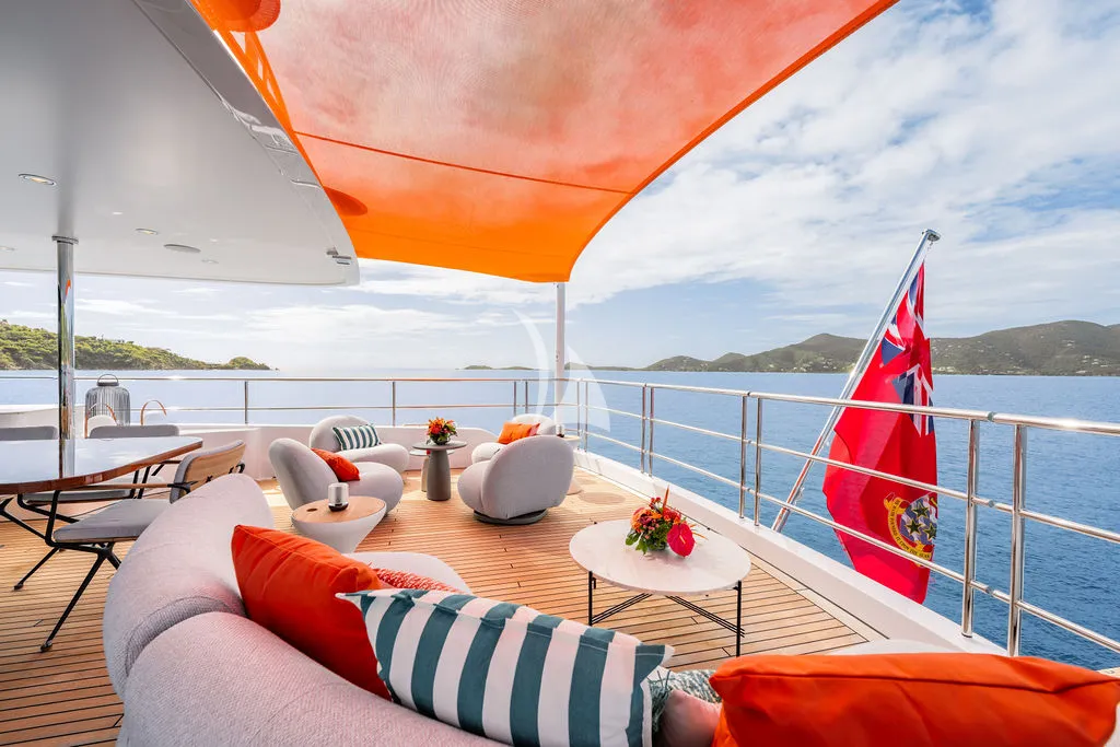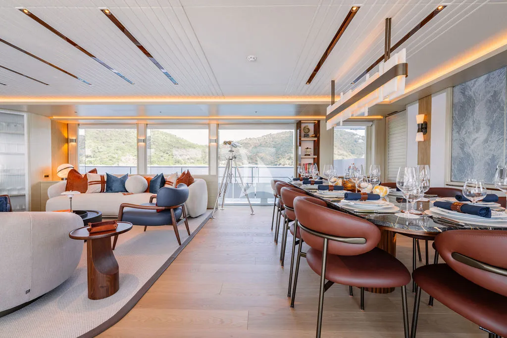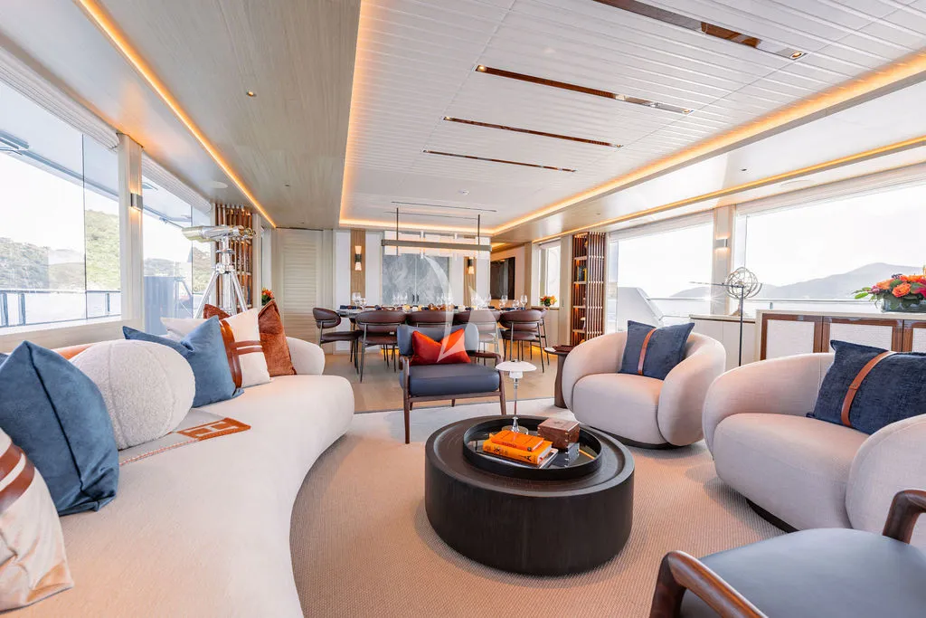 A professional crew of seven delivers exceptional, personalized service as guests enjoy alfresco dining across multiple decks, a spacious sundeck with Jacuzzi and bar, and a beach club designed for seamless ocean access. Her impressive toy collection includes Seadoos, Seabobs, a Fliteboard, and the brand-new Axopar 37 XC Cross Cabin, a high-performance adventure tender featuring twin 300HP Mercury engines, a premium JL Audio sound system, and an enclosed, climate-controlled cabin ideal for stylish island-hopping and day excursions.