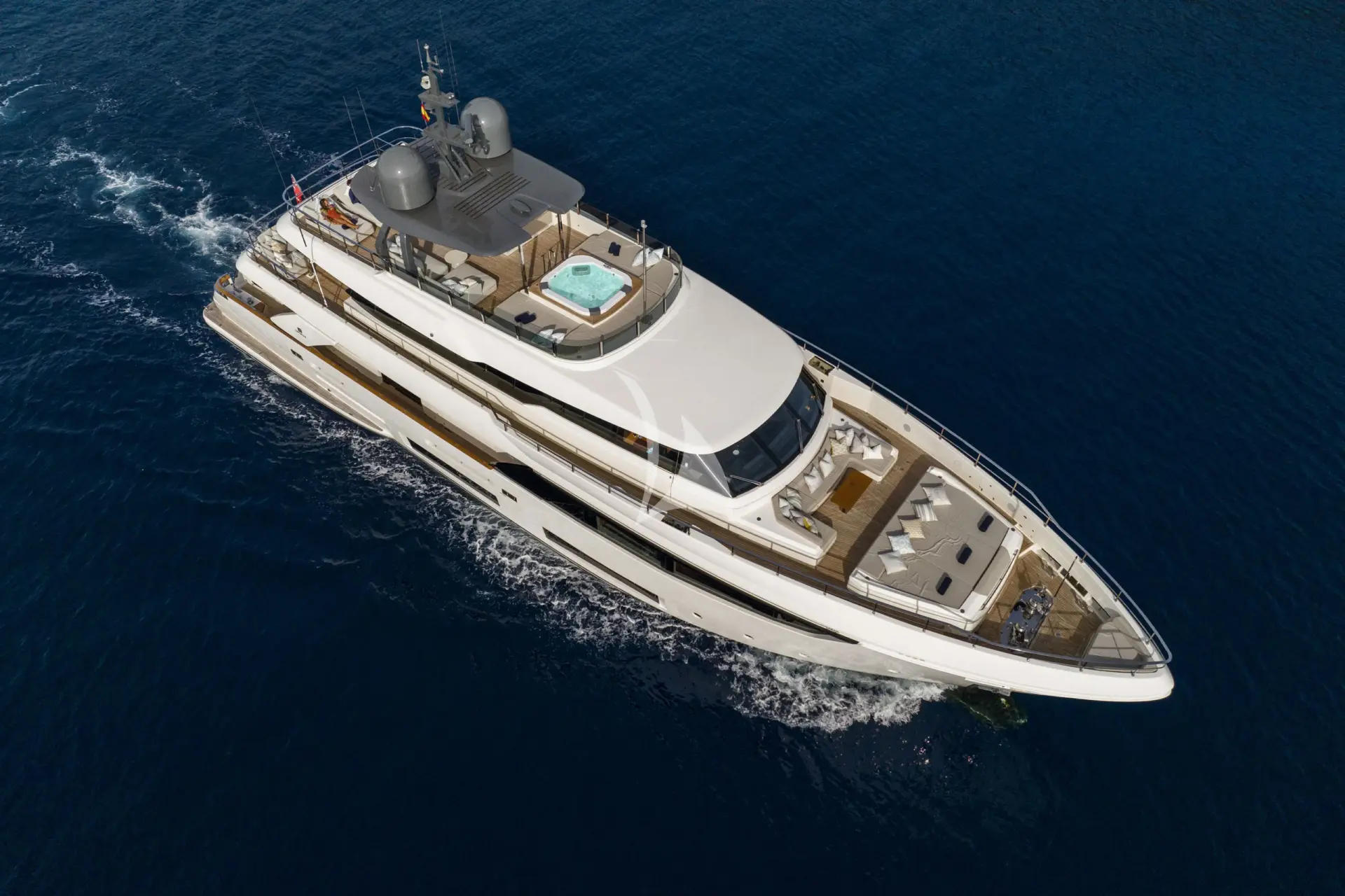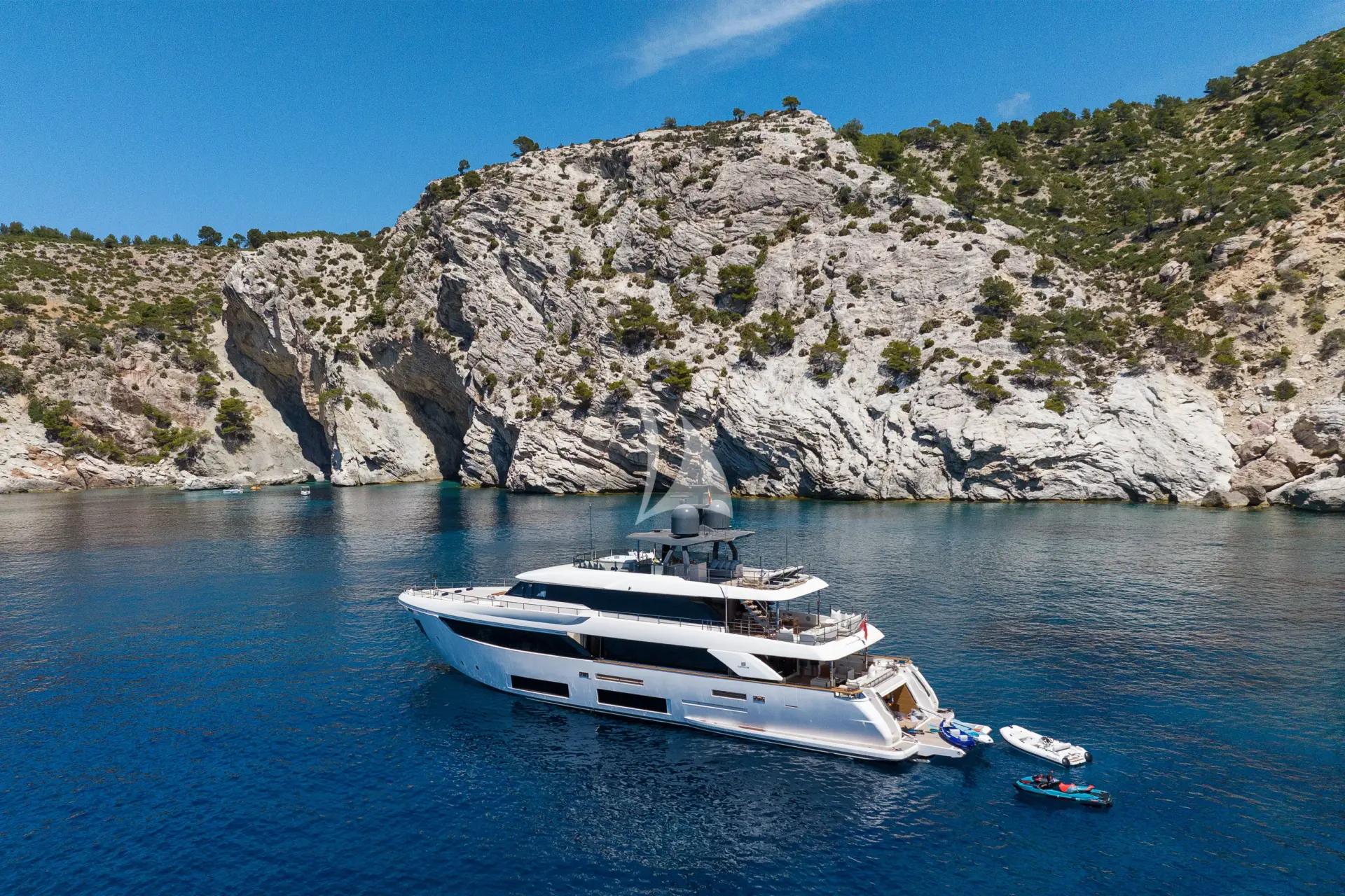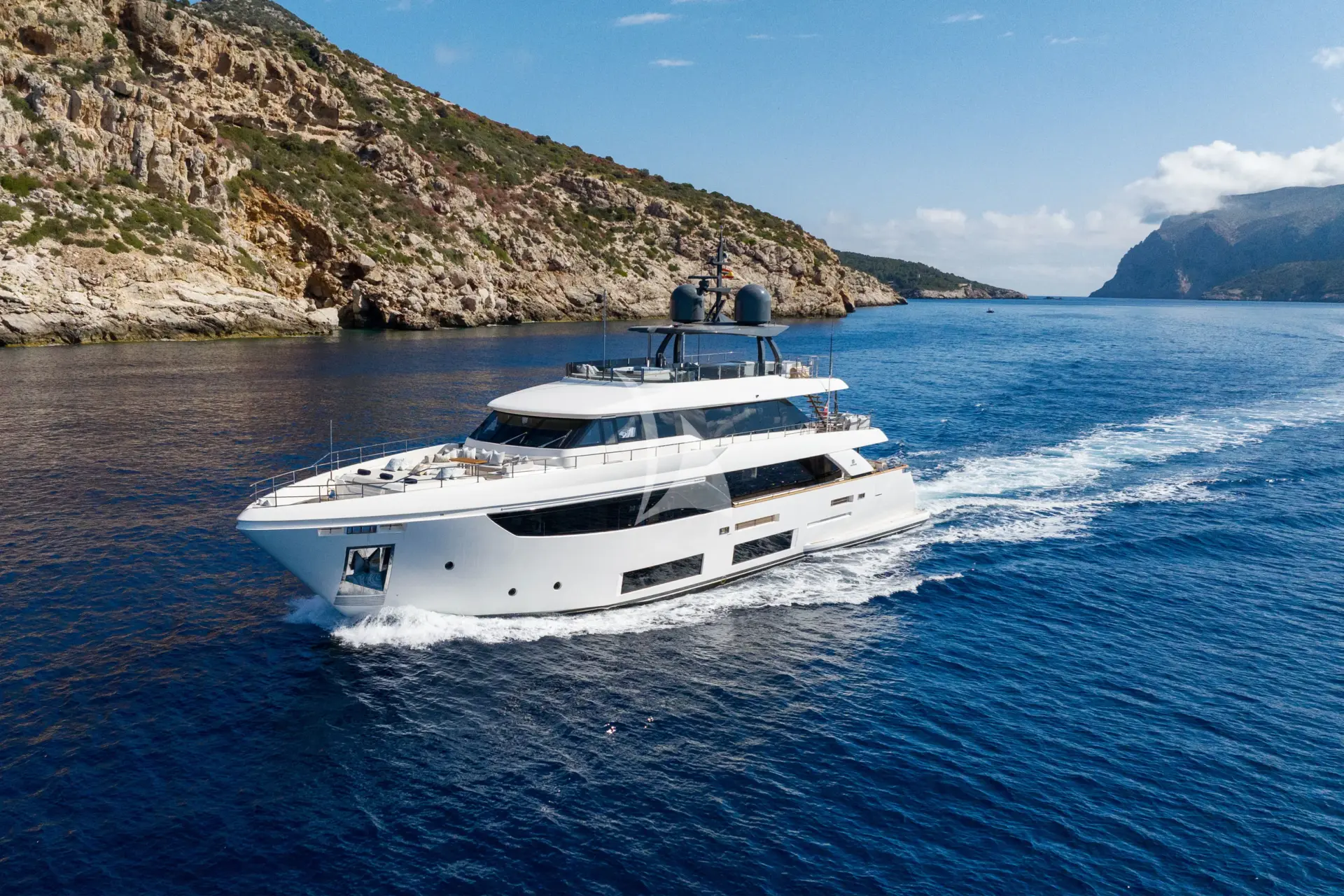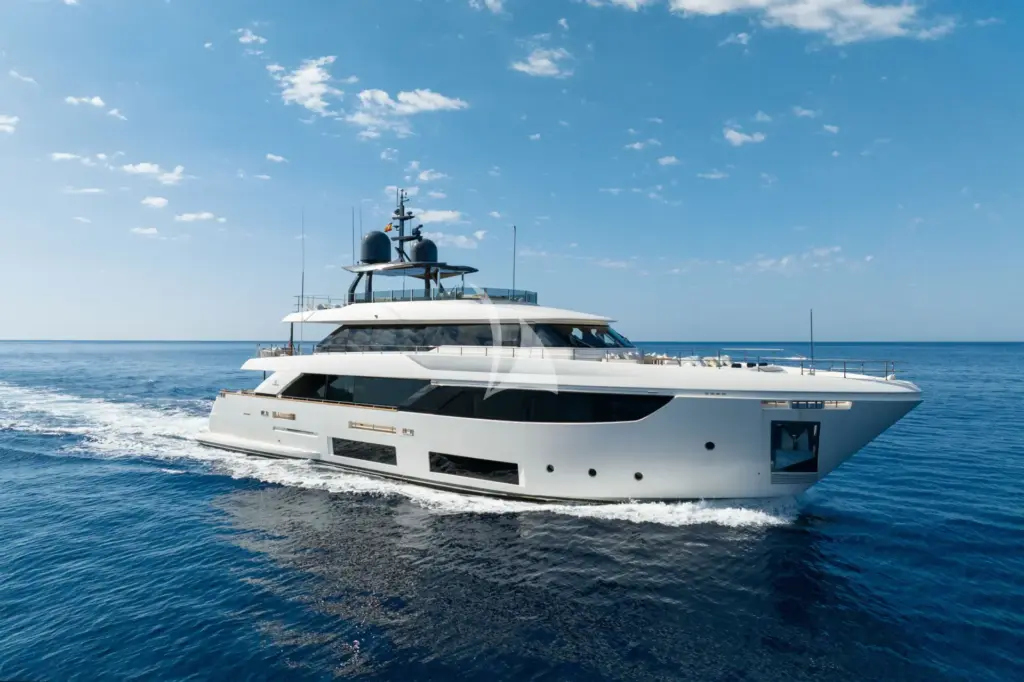 ALBERRY is a 108ft (33m) motor yacht built by Ferretti in 2019 and refitted in 2026, with design by Custome Line. She accommodates up to 10 guests in 5 cabins comprising 3 double and 2 convertible, with a professional crew of 6 ensuring an exceptional charter experience. Available for charter in France, Italy.