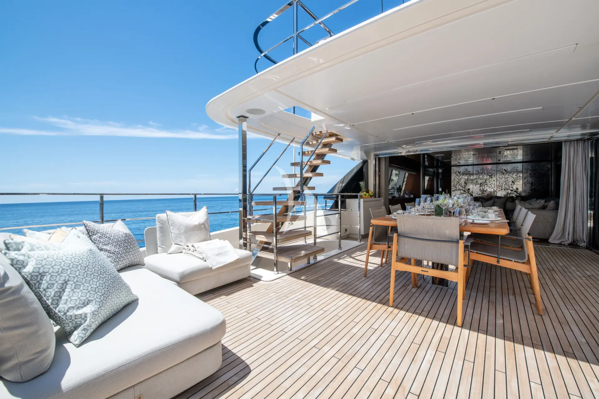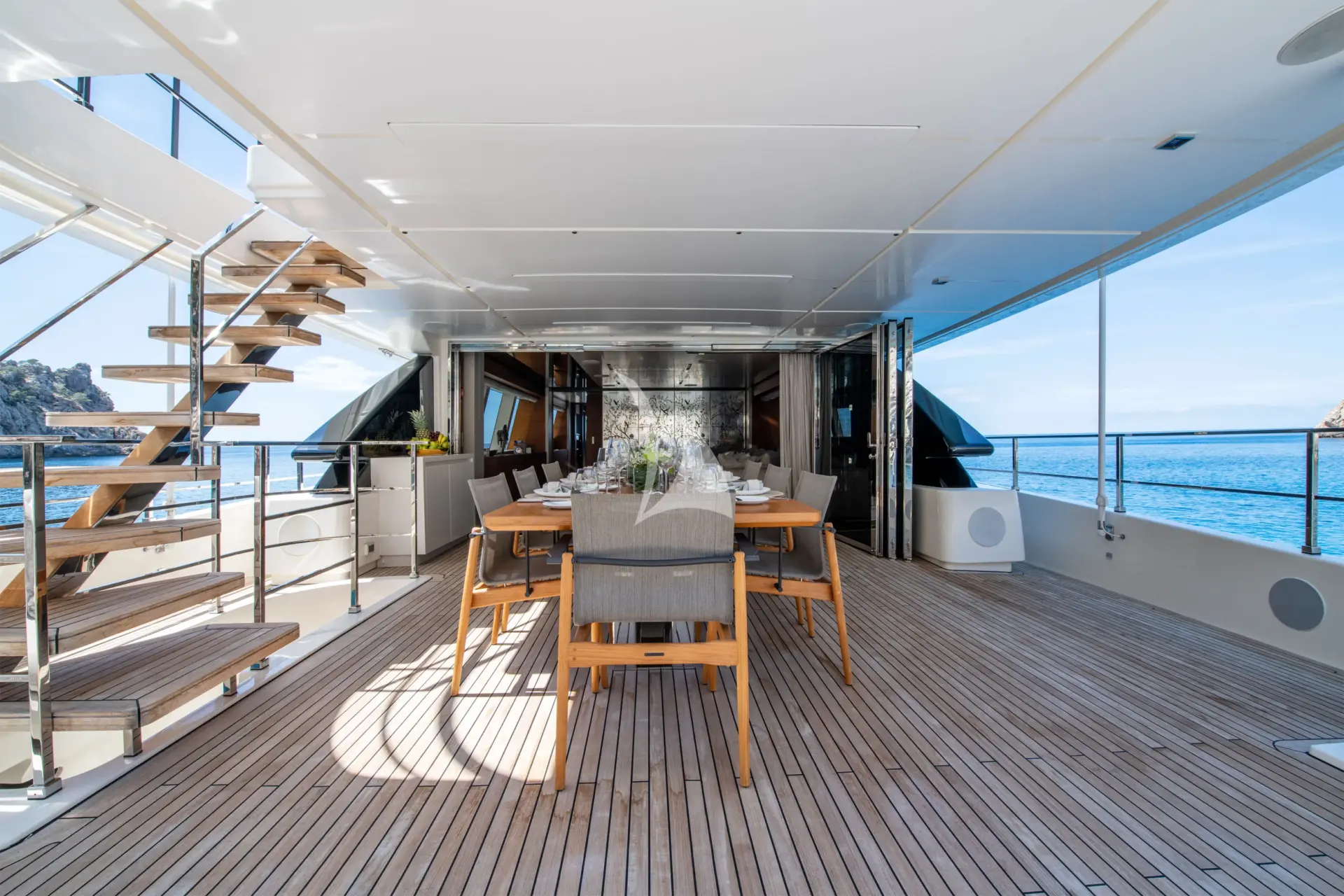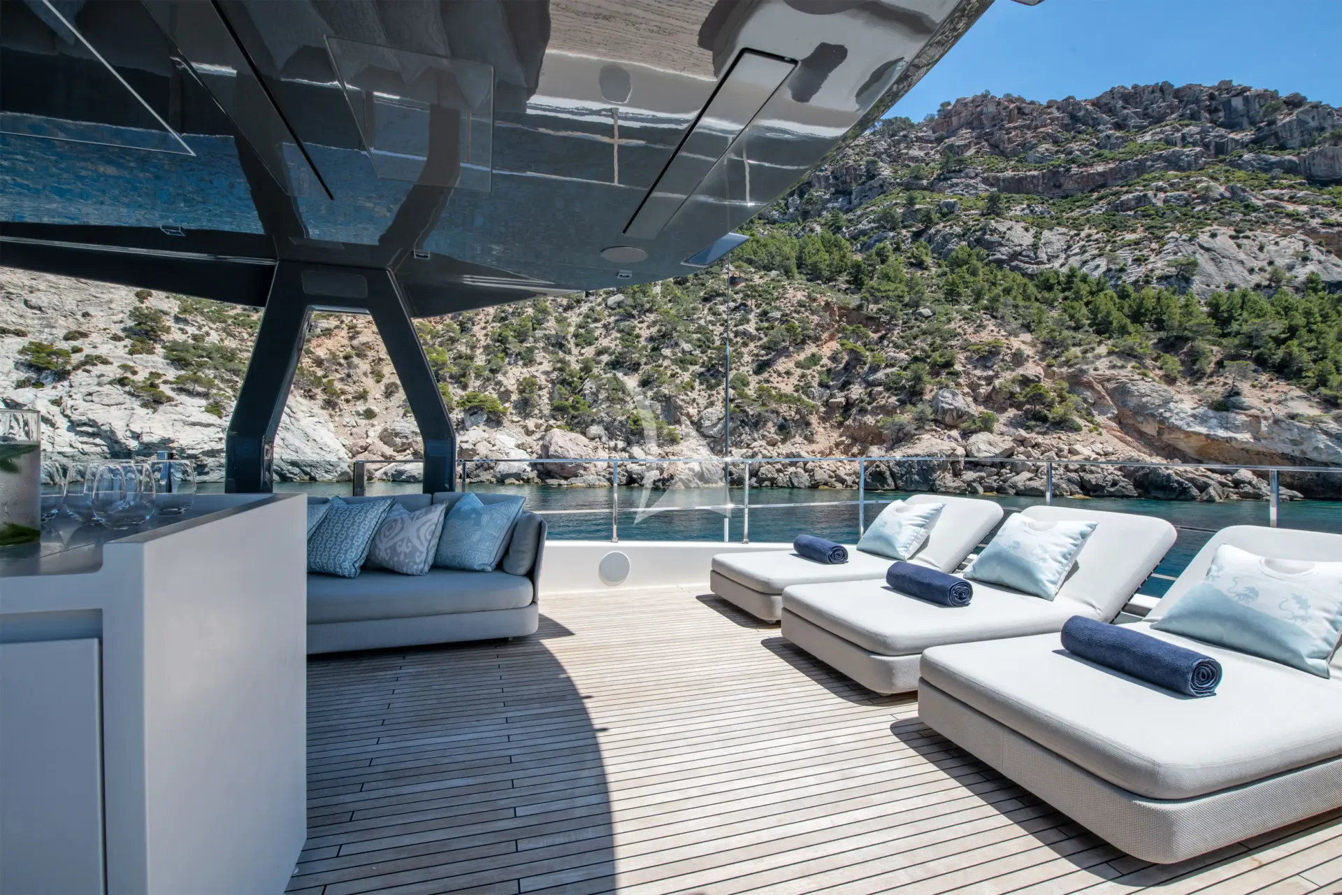 ALBERRY is a 108ft (33m) motor yacht built by Ferretti in 2019 and refitted in 2026, with design by Custome Line. She accommodates up to 10 guests in 5 cabins comprising 3 double and 2 convertible, with a professional crew of 6 ensuring an exceptional charter experience. Available for charter in France, Italy.