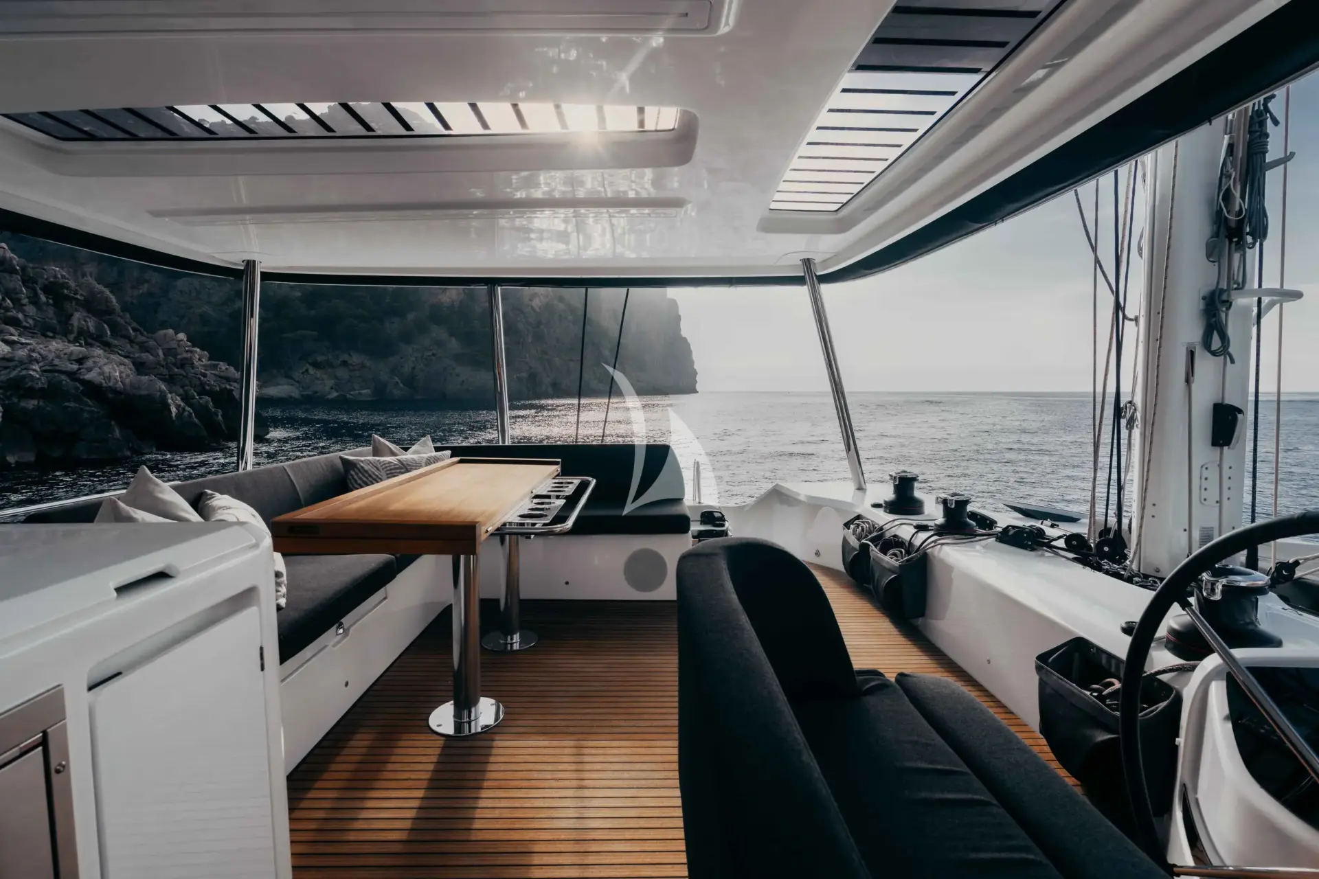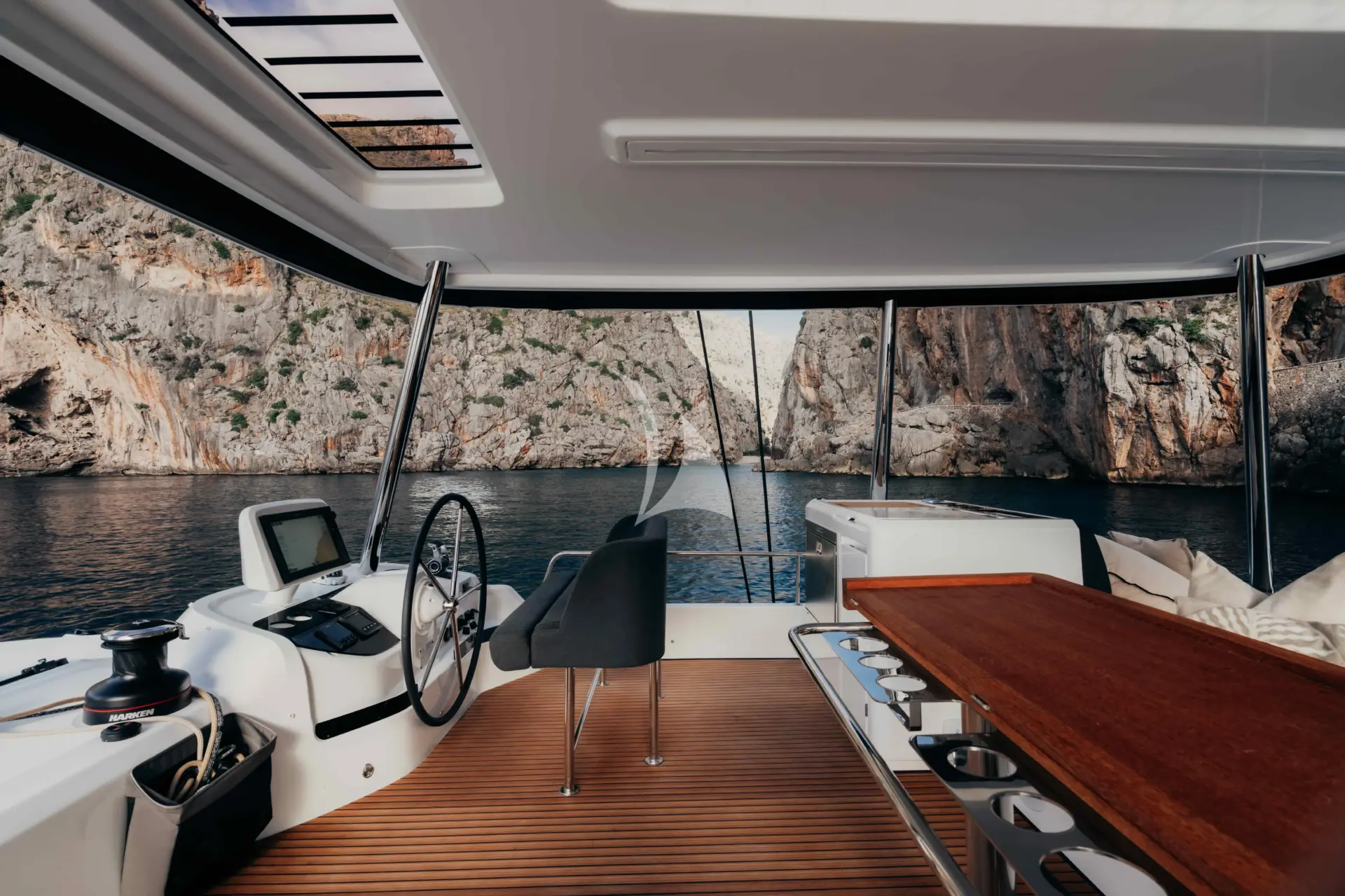The yacht’s spacious cockpit and expansive flybridge provide multiple luxurious lounging and dining areas, perfect for sun-soaked relaxation, intimate gatherings, or panoramic views of the Greek islands. Inside, the interior showcases refined décor, stylish finishes, and a warm, inviting ambiance, creating an atmosphere of sophisticated tranquility.