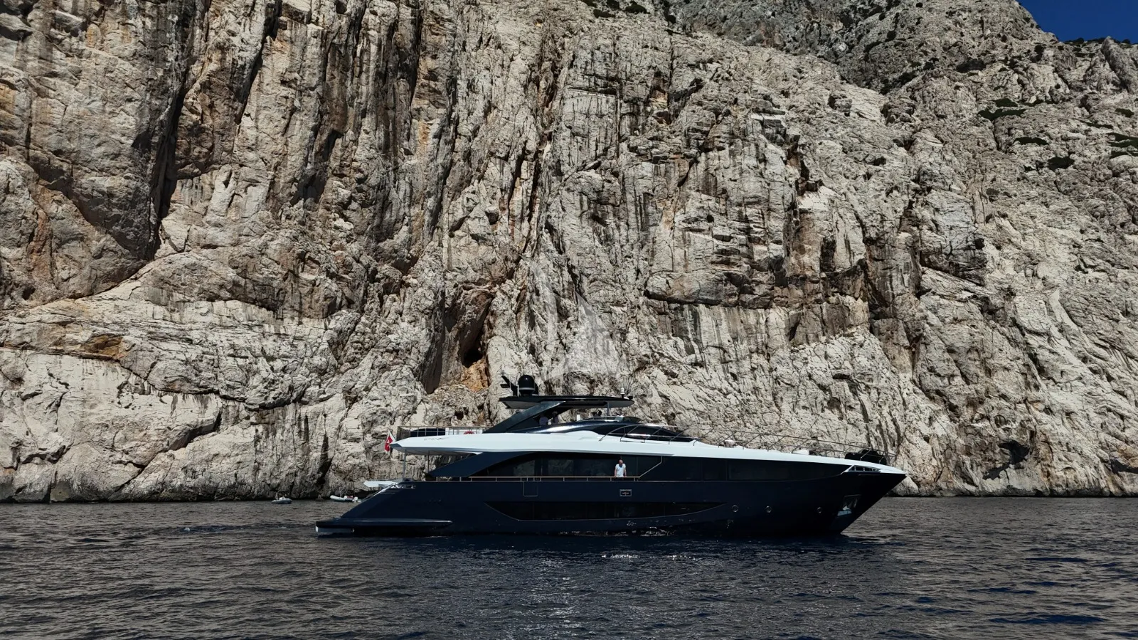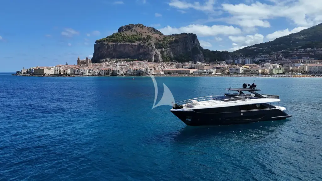 Featuring a spacious saloon with panoramic windows, a well-equipped flybridge with dining and sunbathing areas, a hydraulic swim platform, and Seakeeper stabilizers for ultimate comfort, the Amer F100 is an outstanding choice for luxury yachting.