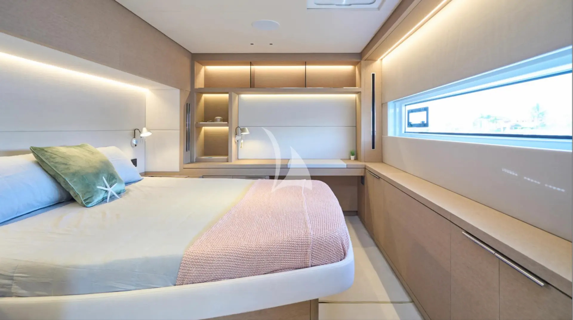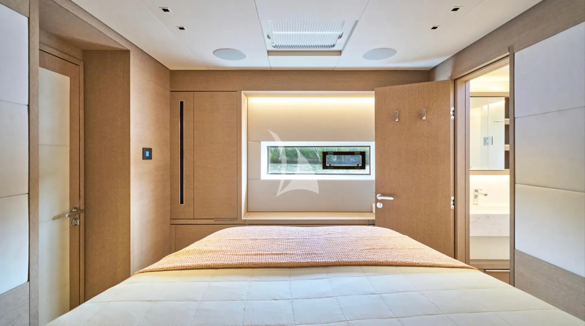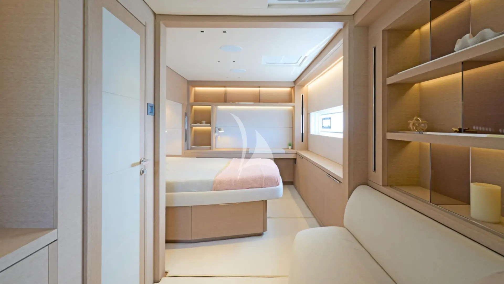 The highlight of Amarea is the exquisite owner's cabin, a sanctuary of comfort and style with a dedicated desk area, TV, and direct access to the deck for uninterrupted sea views. The owner's cabin provides a private retreat for the lucky occupants, combining functionality and luxury seamlessly.