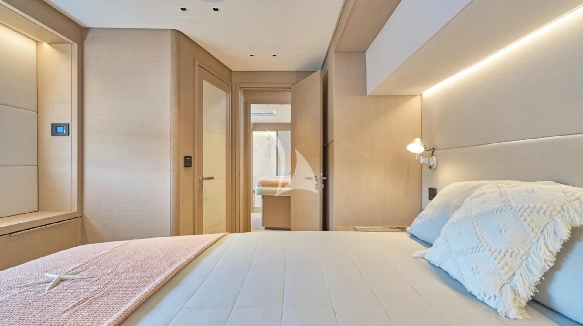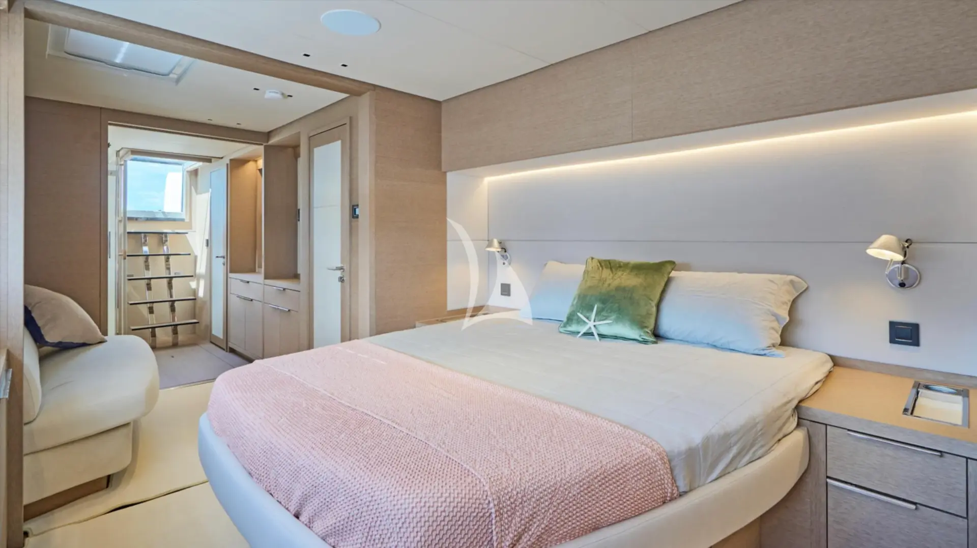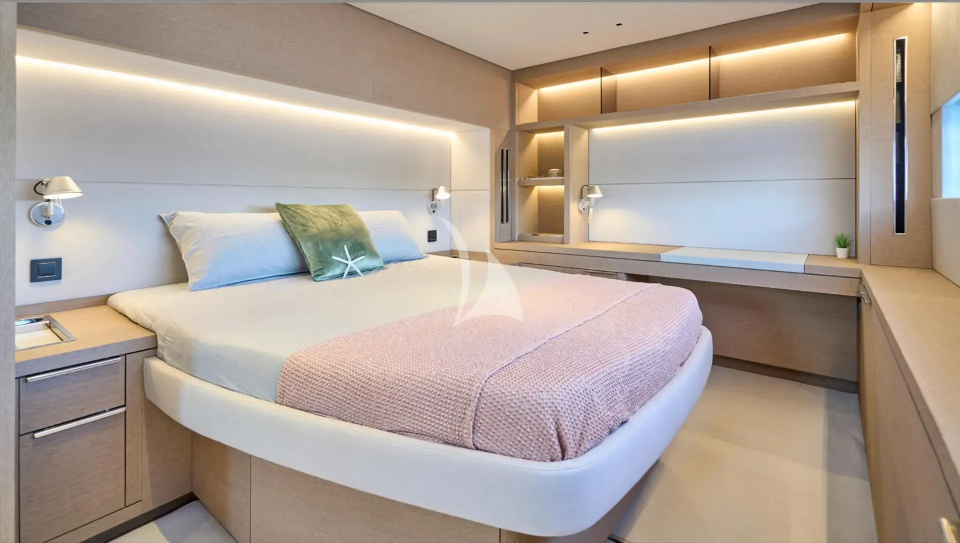 The highlight of Amarea is the exquisite owner's cabin, a sanctuary of comfort and style with a dedicated desk area, TV, and direct access to the deck for uninterrupted sea views. The owner's cabin provides a private retreat for the lucky occupants, combining functionality and luxury seamlessly.