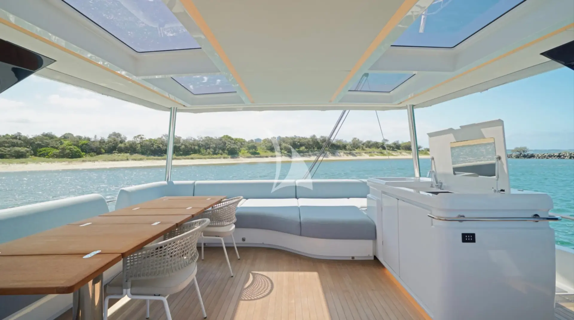 One of the standout features of Amarea is the fantastic flybridge, a perfect setting for al fresco dining and relaxing under the sun or stars. The spacious outdoor area offers panoramic views of the surrounding seascape, providing an ideal backdrop for unforgettable dining experiences and social gatherings.