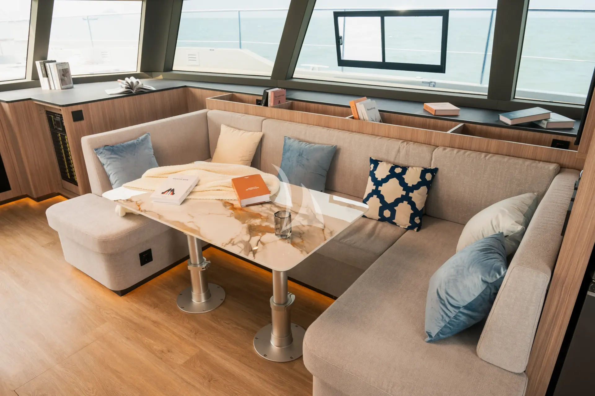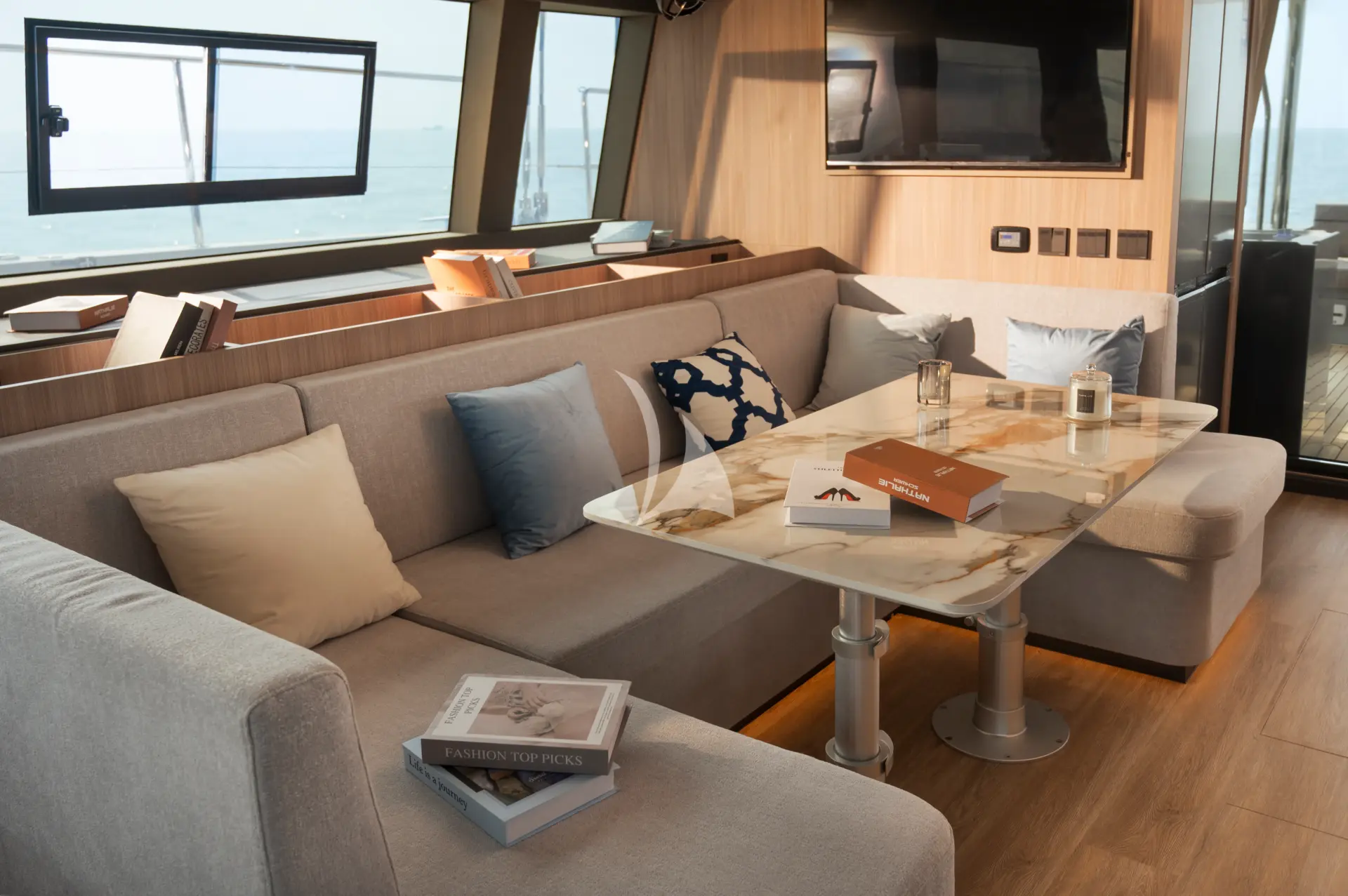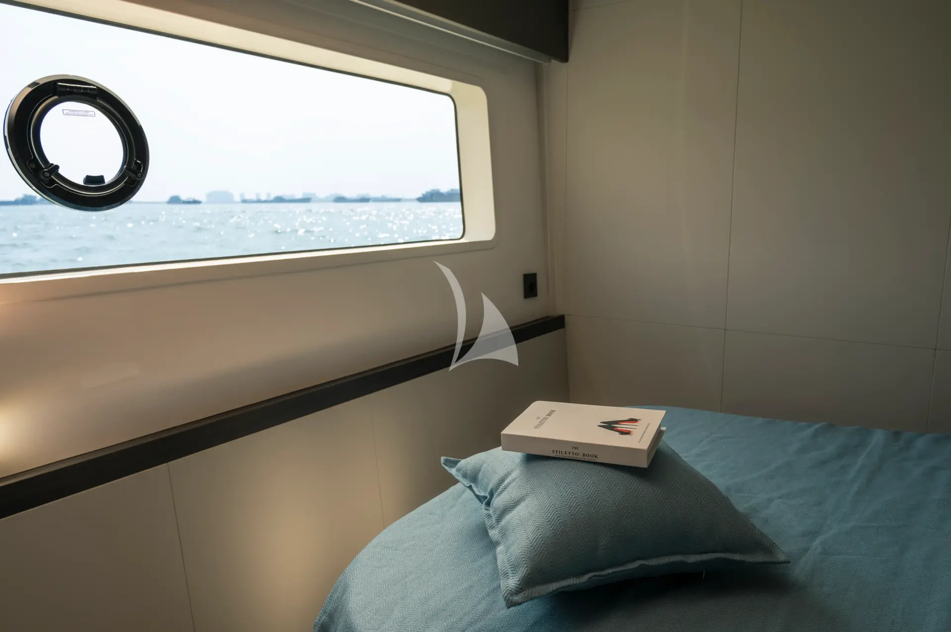 The yacht accommodates up to 10 guests in 5 well-appointed cabins, including 4 double cabins and 1 twin cabin, making her an excellent choice for families or groups of friends seeking both privacy and comfort. The interiors are bright and modern, featuring refined finishes and a welcoming atmosphere throughout.