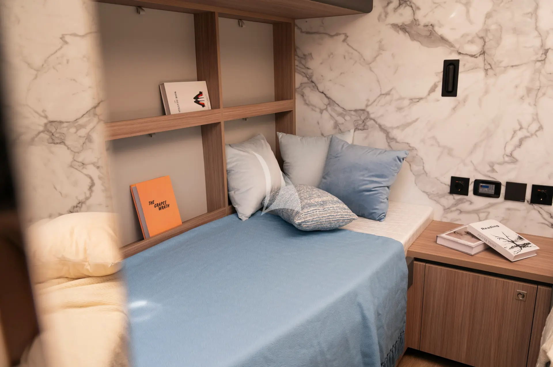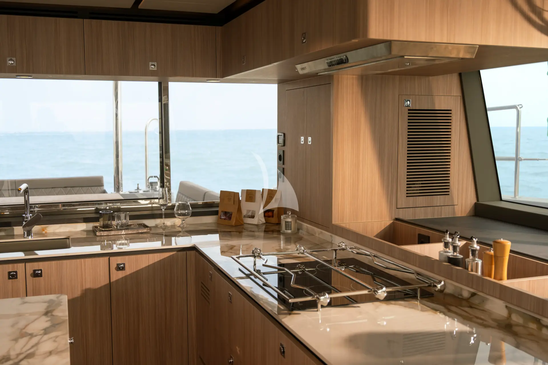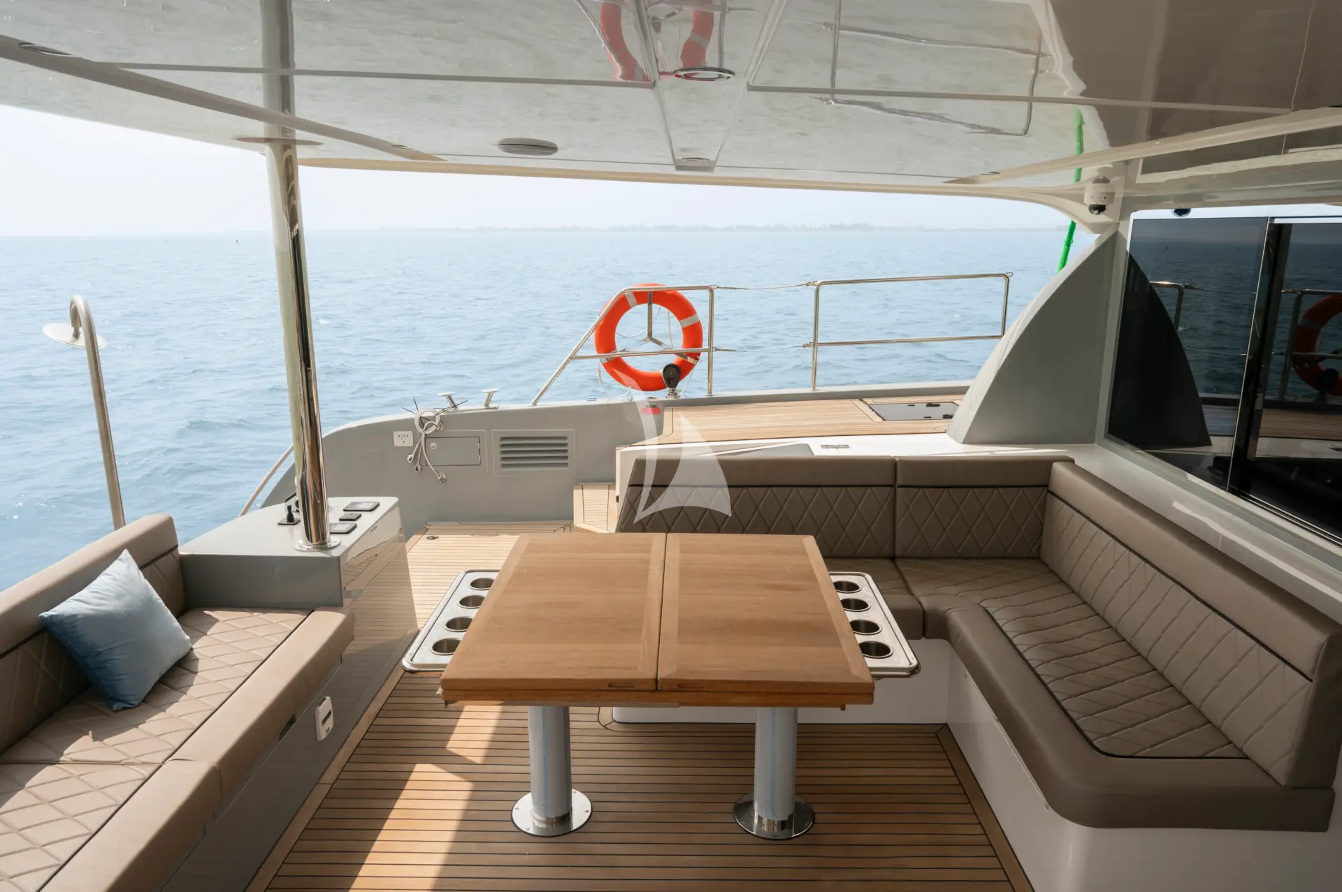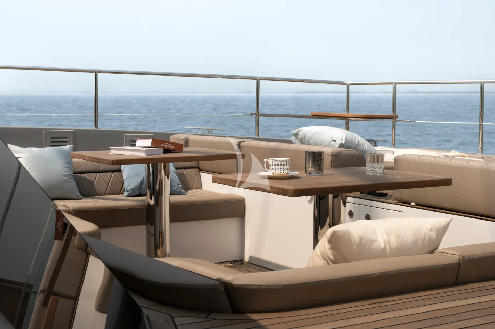 The yacht accommodates up to 10 guests in 5 well-appointed cabins, including 4 double cabins and 1 twin cabin, making her an excellent choice for families or groups of friends seeking both privacy and comfort. The interiors are bright and modern, featuring refined finishes and a welcoming atmosphere throughout.