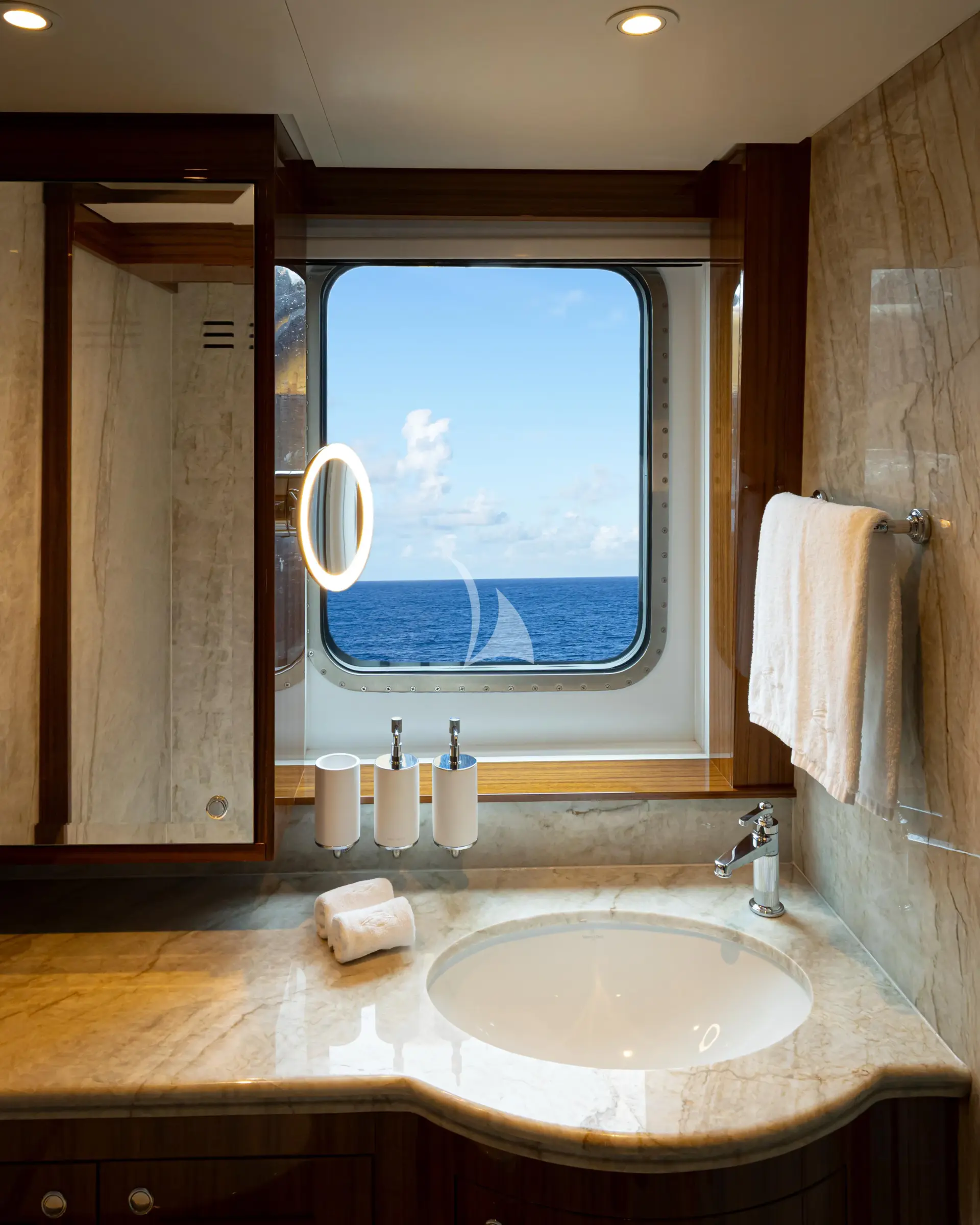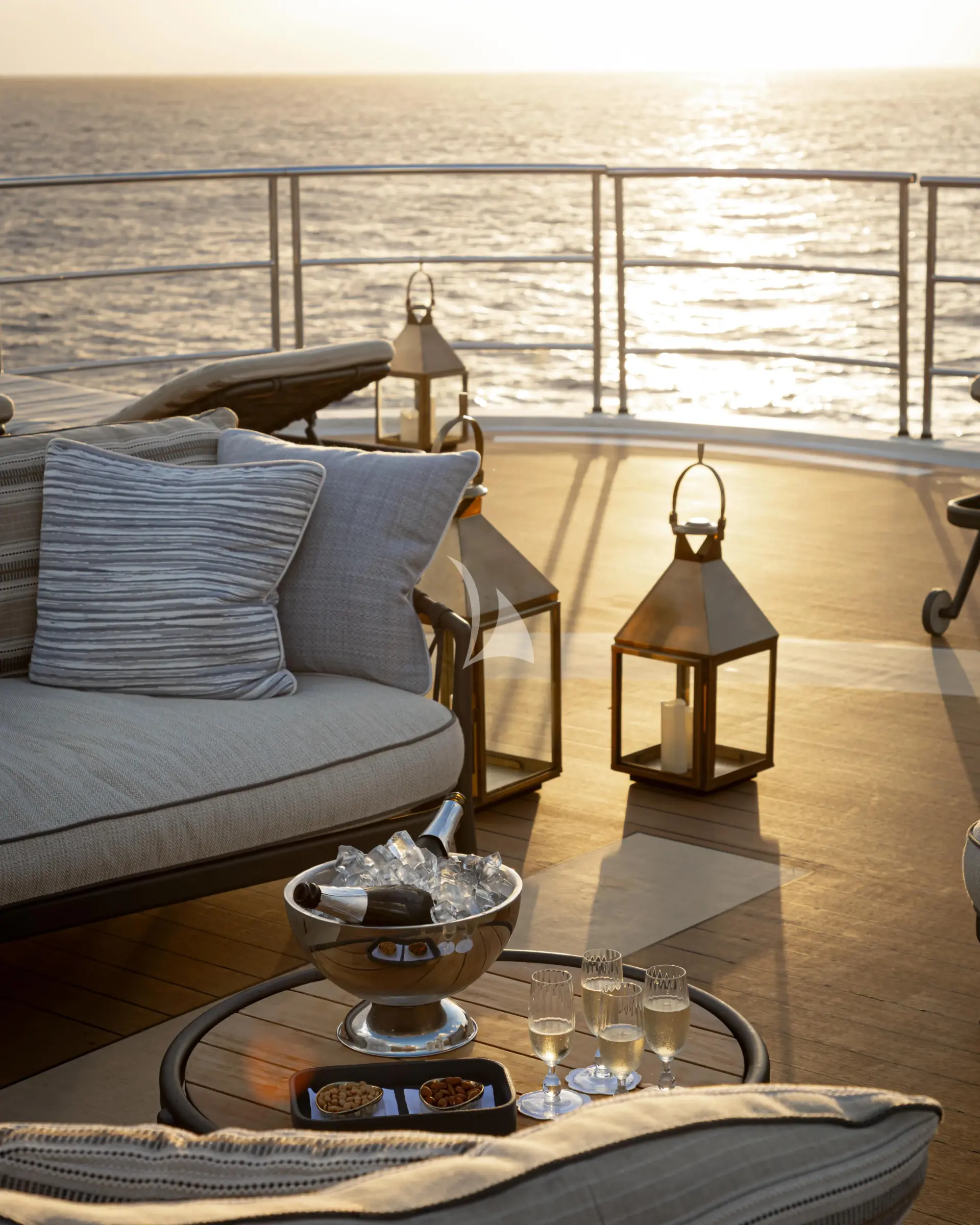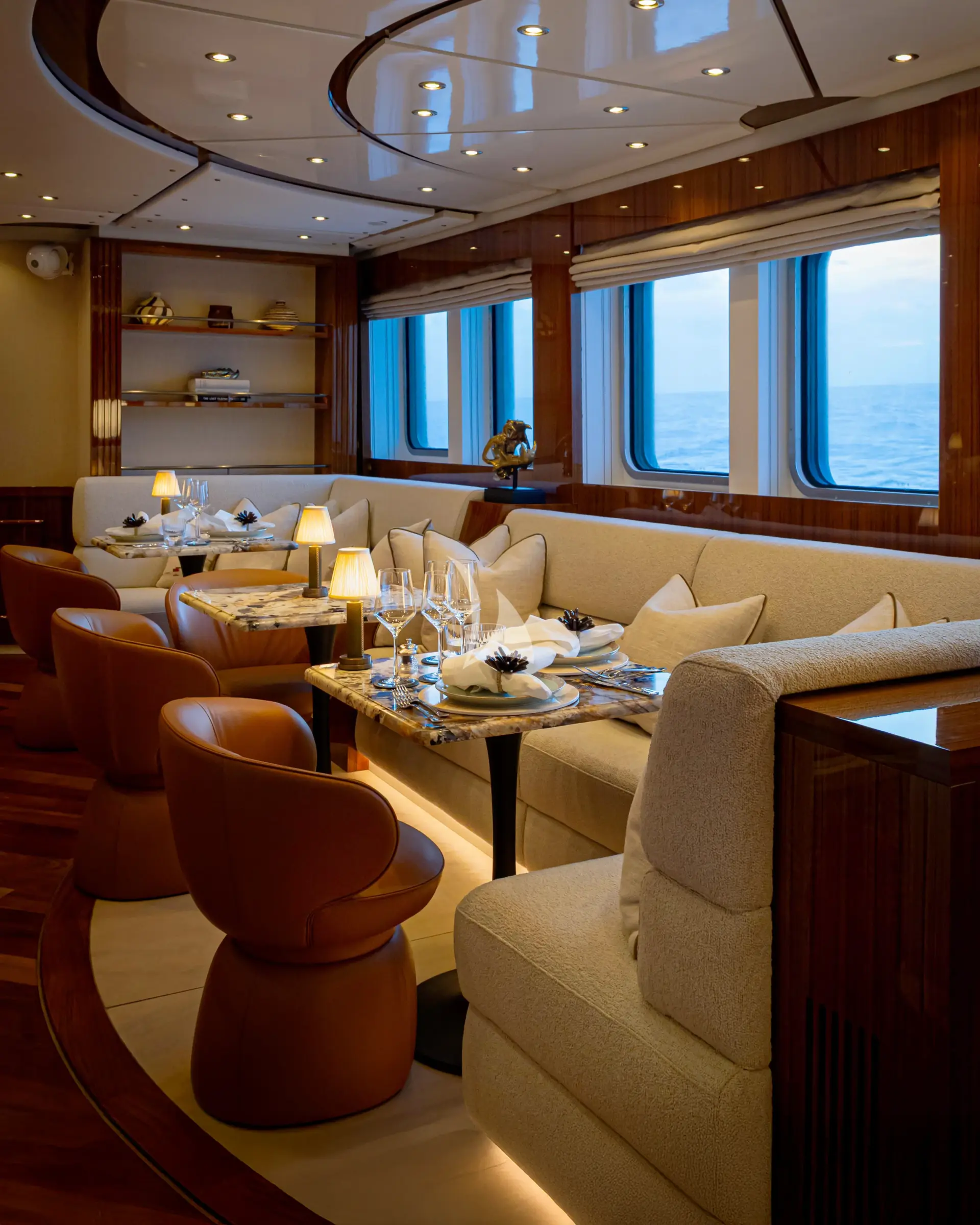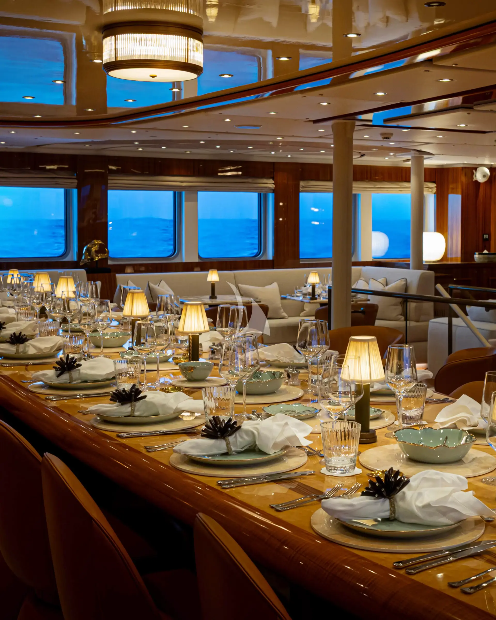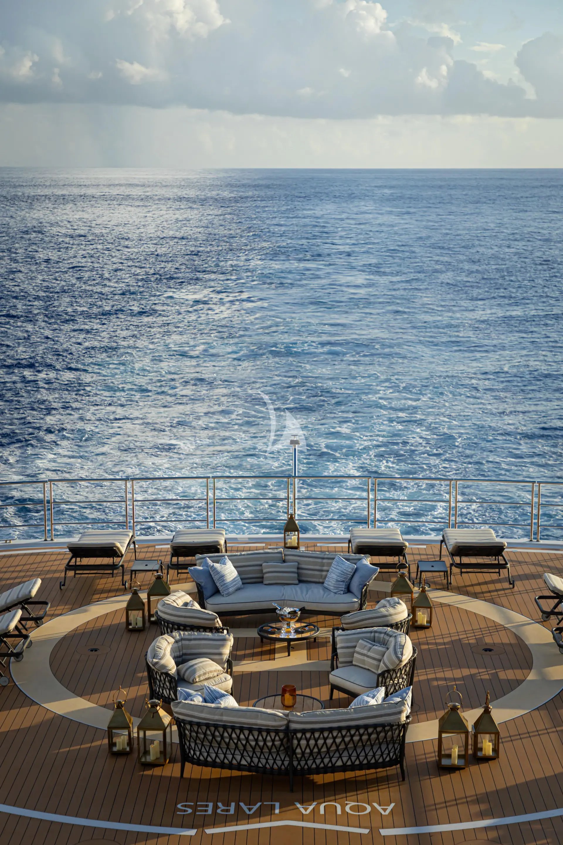 Able to accommodate up to 30 charter guests in 15 beautifully appointed suites, comprising 12 double cabins (including 3 Owner’s suites) and 3 twin cabins, with an accomplished yacht crew of 33 on hand to provide the highest levels of hospitality, Aqua Lares sets a new standard in on-the-water living. And, with onboard amenities including a cinema, exercise space, treatment room and sauna in addition to a multitude of social spaces for entertainment or relaxation, there’s no end to the enjoyment on board.