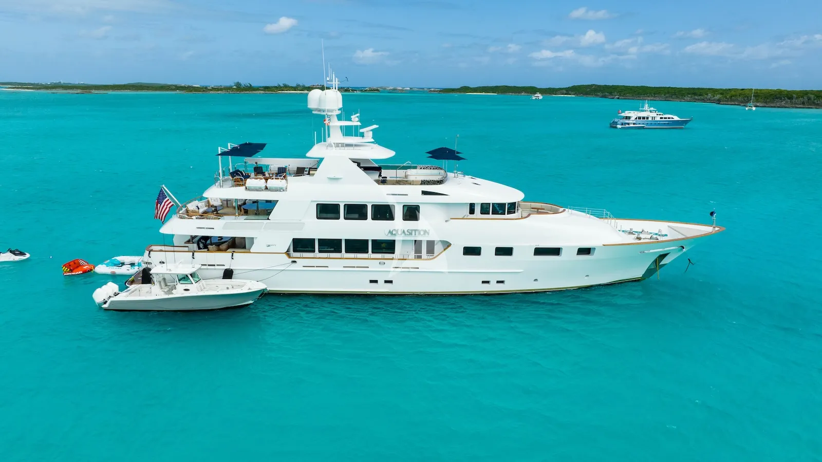 AQUASITION is a striking 43m motor yacht that brings together classic American build quality with contemporary charter focused living. Built by Trinity Yachts and refitted to modern standards, she offers generous volume for her size, balanced exterior lines and a confident presence on the water. Designed with guest comfort firmly in mind, AQUASITION delivers a charter experience that feels relaxed, social and effortlessly luxurious.