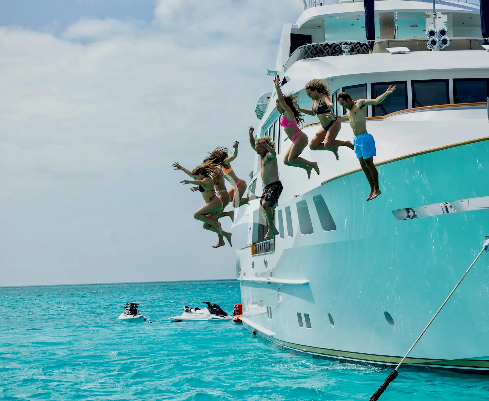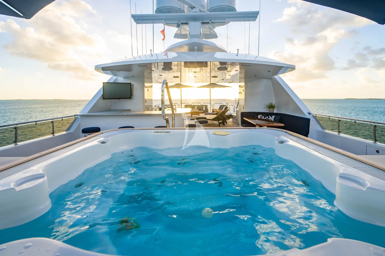 Her exterior decks are well proportioned and ideal for spending long days outdoors. The sundeck is a particular highlight, offering a large Jacuzzi, sun loungers and relaxed seating areas that invite guests to gather together. Whether enjoying a quiet coffee with coastal views or hosting pre-dinner drinks, the deck layout allows for both privacy and sociability. The swim platform provides easy access to the water, making it simple to move between the yacht and her great collection of water toys.