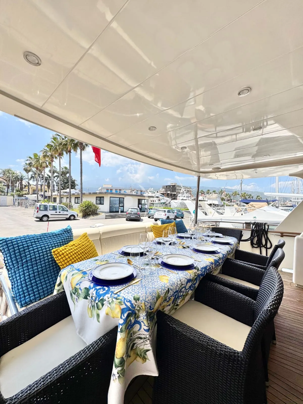 -Spacious flybridge with sunbathing and lounge areas