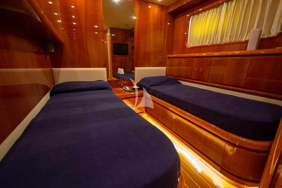 Step aboard the Gianetti 85, a sleek and sophisticated Italian-built yacht launched in 2005, where timeless design meets modern comfort. Crafted by the renowned Gianetti Yacht shipyard, this 85-foot jewel embodies elegance, performance, and refined style — perfect for discerning guests seeking an unforgettable luxury charter experience. With generous accommodations for guests, the Gianetti 85 features well-appointed cabins designed for restful nights after days spent cruising crystal-blue seas. Her layout is perfect for families, couples, or small groups looking to explore breathtaking coastlines in style. Ariston Five offers guest accommodation for up to 8 guests in 4 suites comprising a master suite, one VIP cabin and two twin cabins. Spacious full beam master suite features extensive storage space provided by the dressing room. She is also capable of carrying up to 3 crew onboard to ensure a relaxed luxury yacht charter experience.