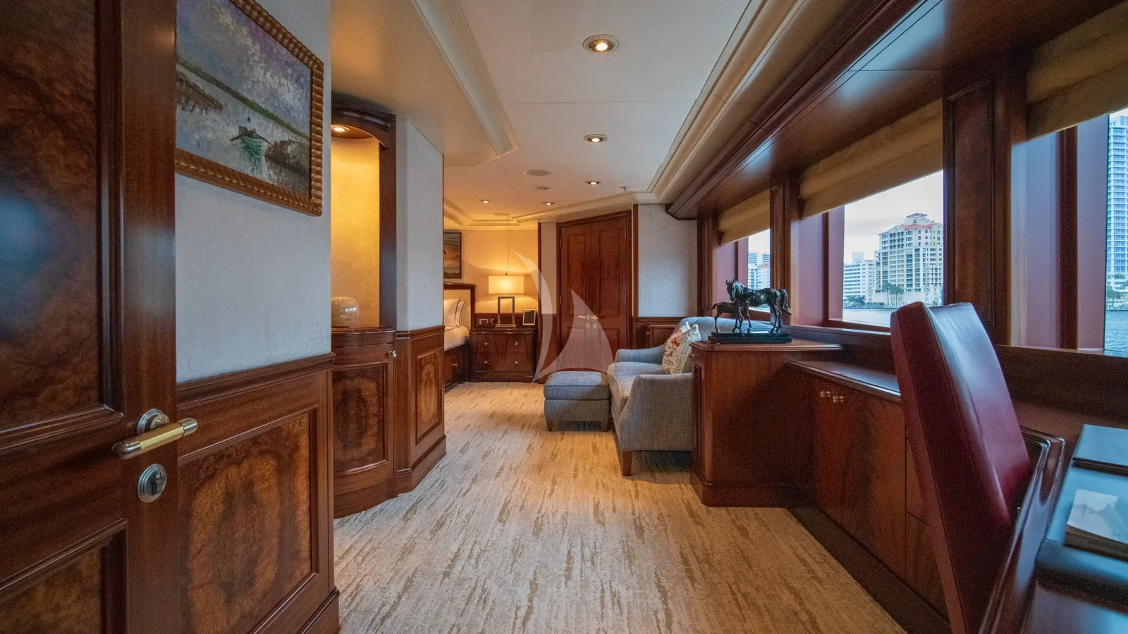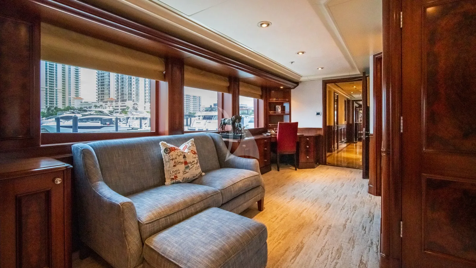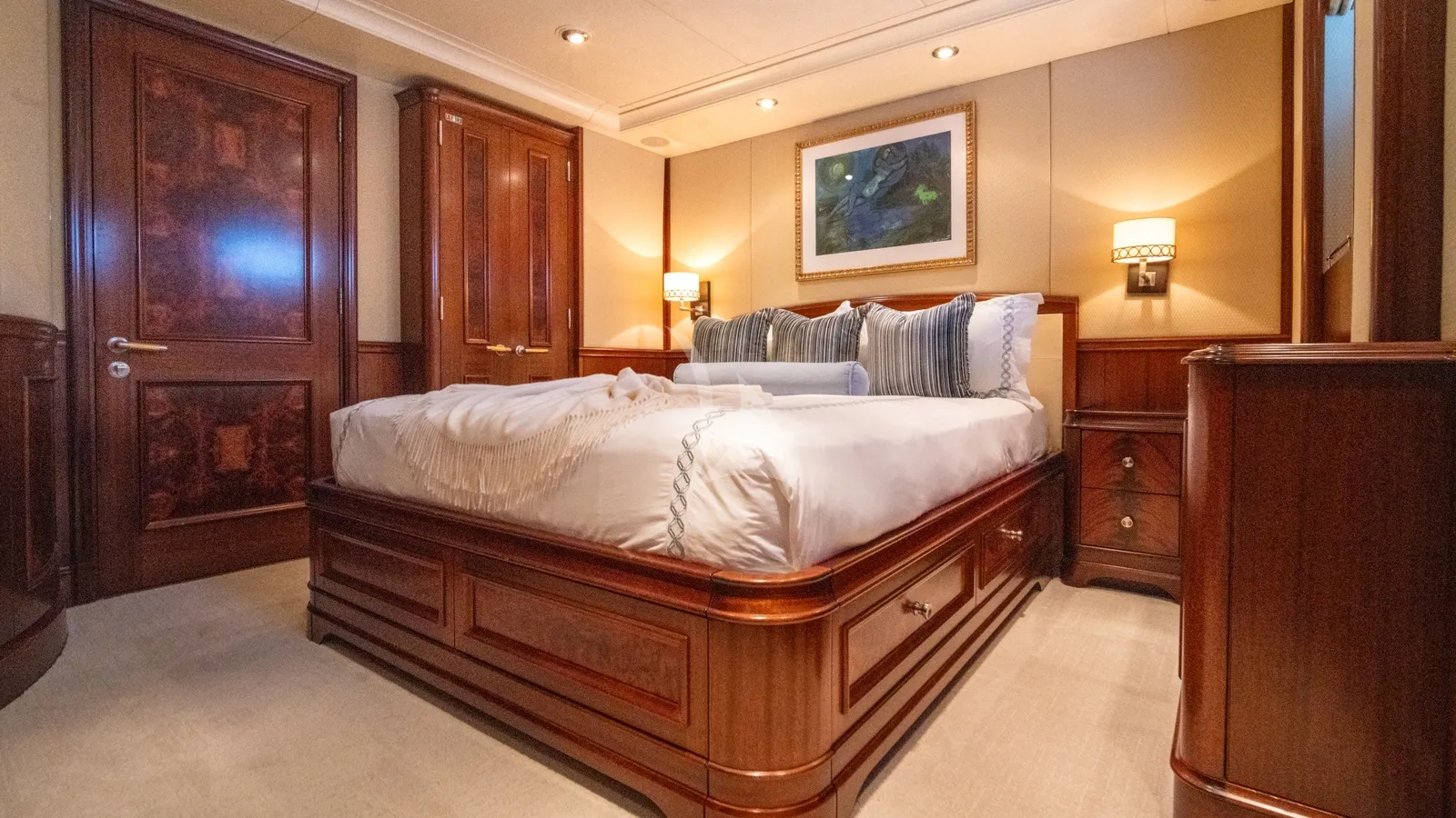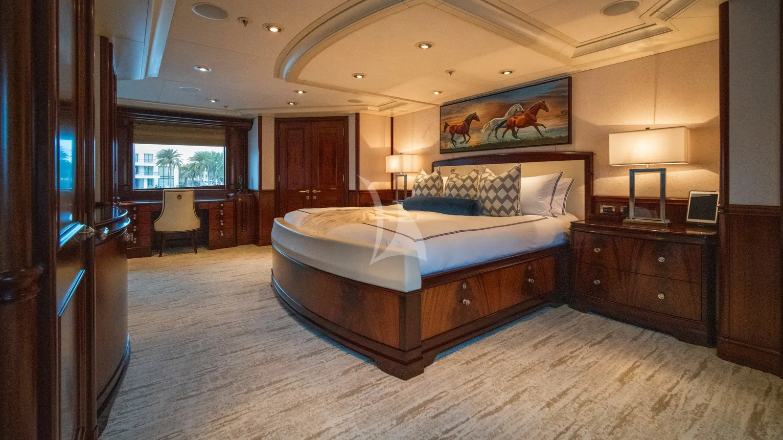 Watermakers, Air conditioning, Stabilisers underway, Stabilisers at anchor, Aft platform, Beach club, Master on main deck, Deck Jacuzzi, Movies library, Music library, Smart TV, TV in all cabins, TV in saloon, WiFi connection, Bluetooth speakers/sound system connection